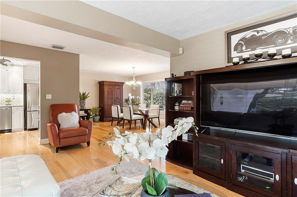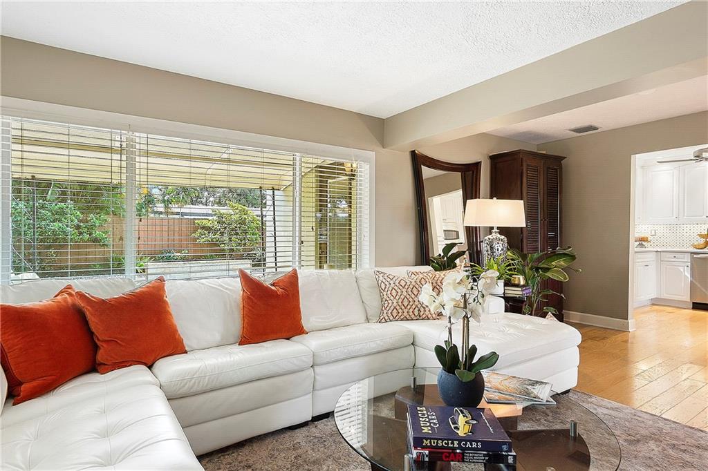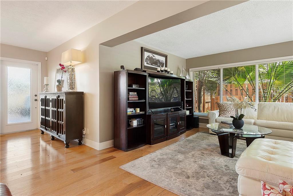 Welcome Home, from the minute you arrive you will fall in love with this tropical paradise, two legacy Olive trees are the focal point for architectural landscaping design, open floorplan, lots of natural light, nature views from every room, hickory wood flooring throughout, remodeled high-end kitchen with Caesarstone/quartz countertops, custom backsplash, ceiling-high cabinets, custom pantry, new s/s appliances, freshly painted throughout, upgraded bathrooms, with master bath featuring jacuzzi jetted tub, designer fixtures, custom blinds, upgraded hurricane doors, the backyard is a tropical oasis with a $60K+-pool package, designer marble pool with custom water features and beach area, storage shed w electric, fenced w/double gate backyard access, camera security system. A MUST SEE!