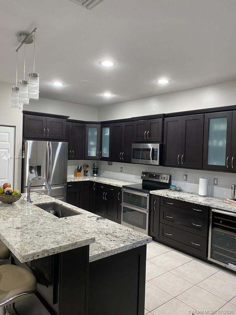 This beautiful single family home located in SILVER SHORES in a gated community.Home has over 50k in renovation.Exterior & interior painted in 2019.New hardwood floor renovated in 2019 throughout staircase & 2nd floor.New kitchen appliances,cabinets are soft close,and Wine Cooler renovated in 2018,two pantries. Custom island.LED lights in whole house.AC unit replaced in 2018.Nest thermostat and 8 cameras outside the house included.1 bedroom and full bathroom downstairs.Upstairs master bedroom with full bath and two walking closets,3 more bedrooms and another full bathroom fully renovated in 2019.Laundy room is on the second floor and it has a Samsung washer and dryer replaced in 2018.Acordion shutters upstairs and aluminium panels downstairs.Pop corn replaced for knockdown texture in 2019.