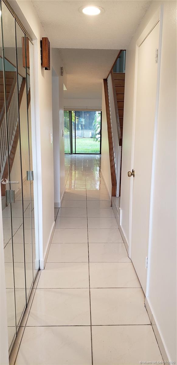 Gated Villas of Amberwood! Nice location, 2 story, 2 bedrooms and 2 1/2 baths. Townhome has over 1,350SF, updated kitchen with bar counter opening up to the Dining and Living room! The unit has been freshly painted, tile. Window Shutters. The washer/dryer are in the upstairs hallway. The living room has sliding glass doors that open to the patio & green belt area. The unit has its own reserved parking space near the front door.