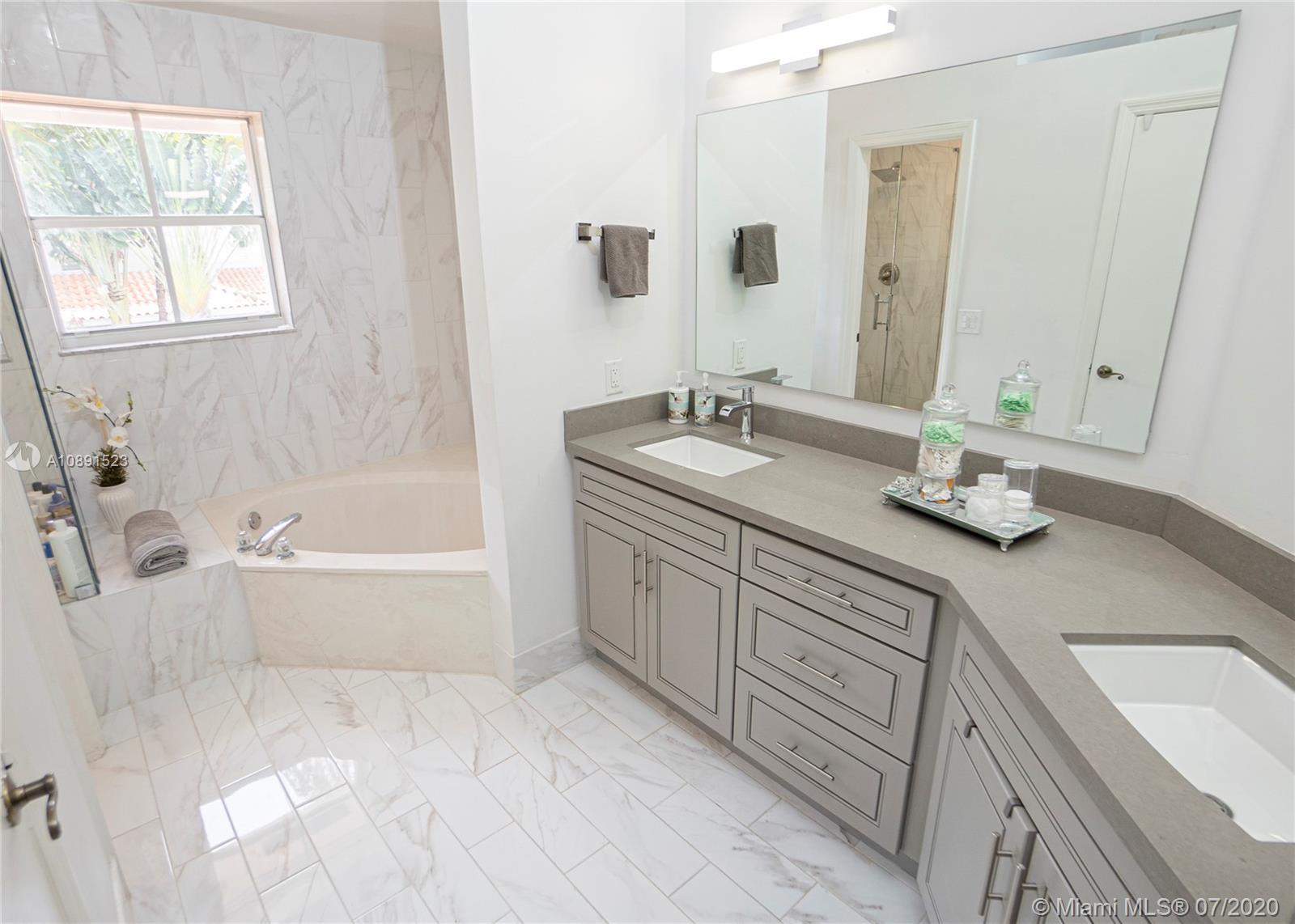 Entertainers delight! Beautiful completely renovated 4 bedroom 2 bathroom home located in desirable Emerald Pointe. Home features new marble floors & ceramic tile throughout, gourmet kitchen, home office, and large modern open floor plan - perfect for entertaining. Gourmet kitchen boasts two large islands complete with quartz waterfall countertops, GE PROFILE Stainless steel microwave/wall oven combo, French door refrigerator, center island cook-top with hood, and dishwasher. Large master bedroom complete with vaulted ceilings, his and hers walk in closets, custom double vanity with quartz countertop and under mount sinks, separate soaking tub and large shower with frame-less glass entry. New LED lighting lighting and Lutron switches throughout. This is a must see property!!!