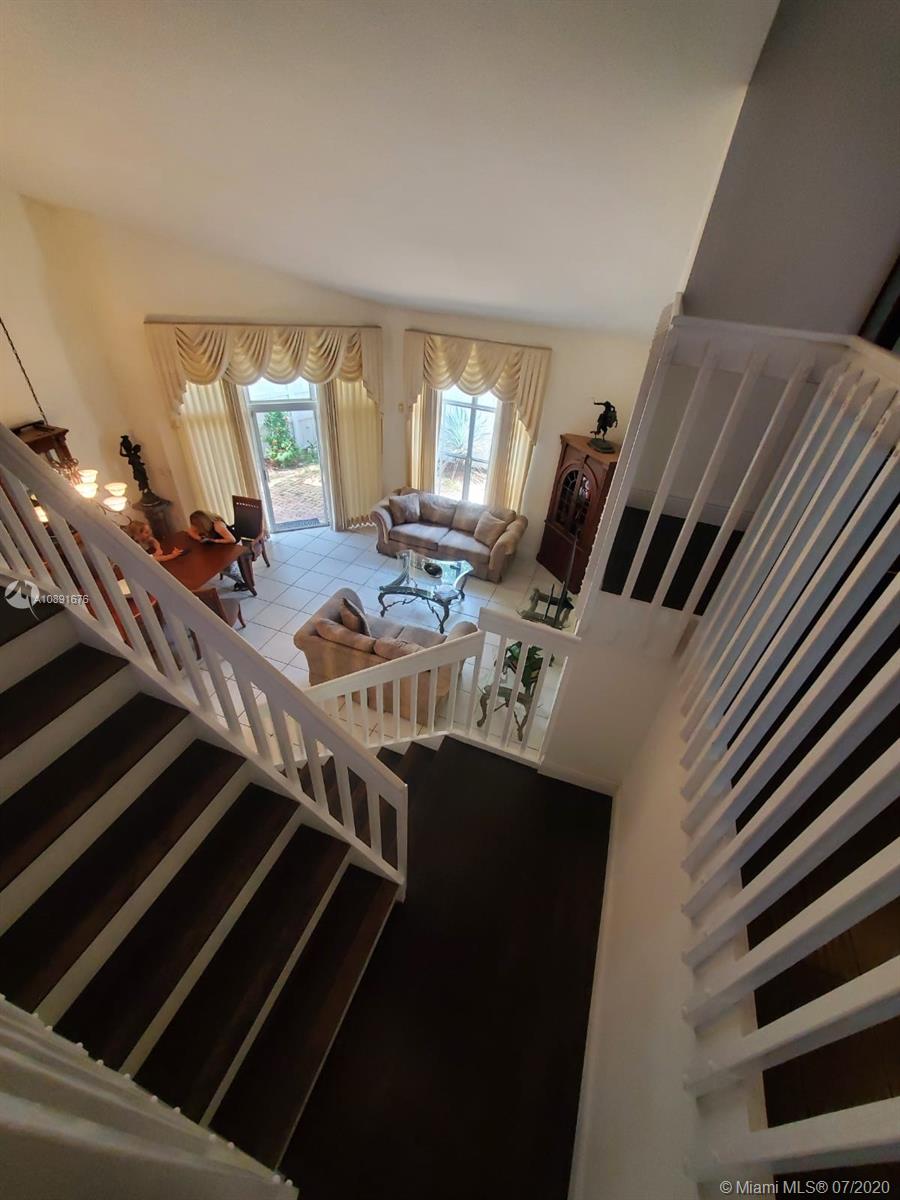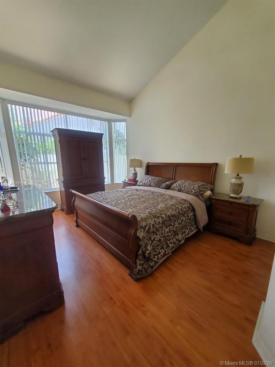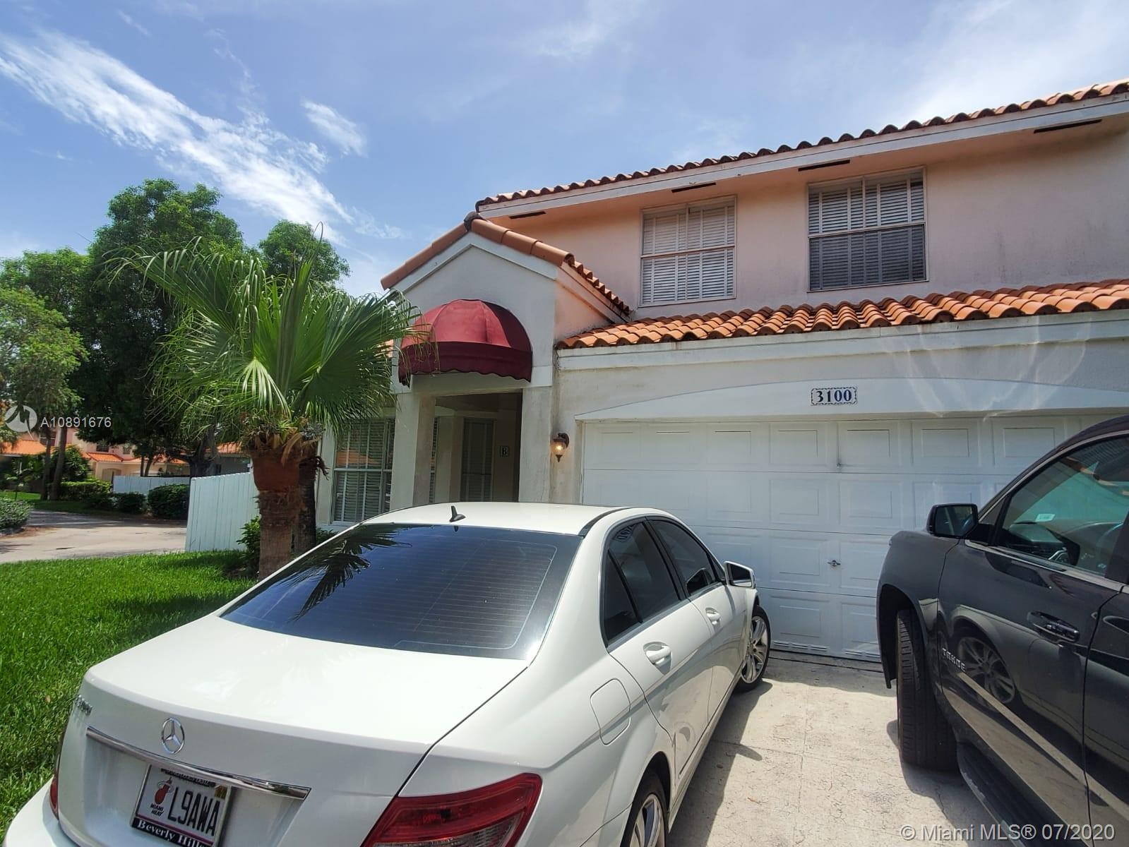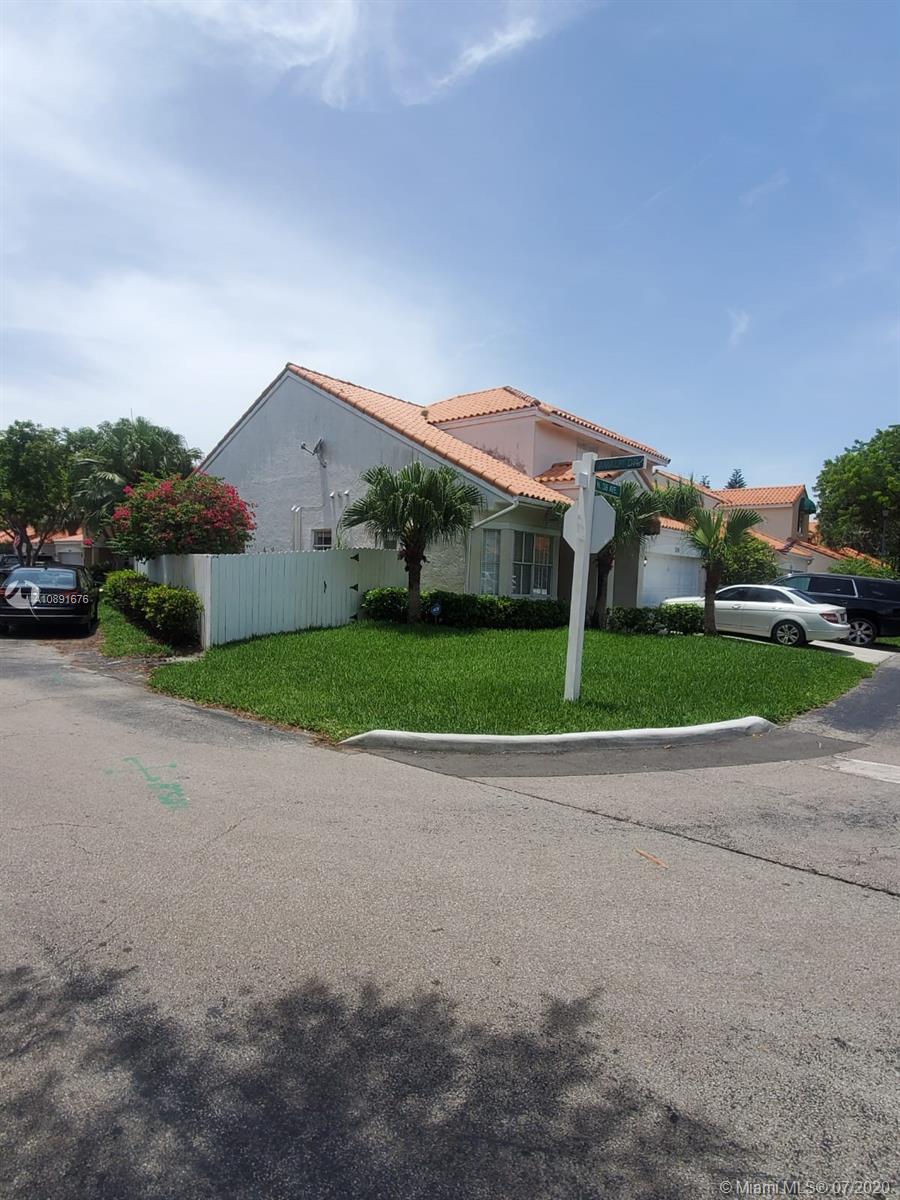CORNER HOME - 2 story - in L'Etoile -Emerald Hills. Large patio with Private wood fenced. High ceilings and large windows throughout the house. 1st Floor has Ceramic Tile. Kitchen w/breakfast area. Entrance foyer and spacious Living Room and Dining Room area w/ tall ceilings, Master Suite on ground floor, 2 closets (1 walk in) has laminate wood floors. Stairs & 2nd -level flooring is all dark Hardwood. 2nd and 3rd Bedroom have totally renovated Full Bath, plus a den/office/ loft area in the 2nd level. A/C approx 4 yrs old. New Washer/Dryer in separate Laundry Room downstairs. Full 2 Car garage . Low Hoa only $192/qrtly includes Cable & maintenance.