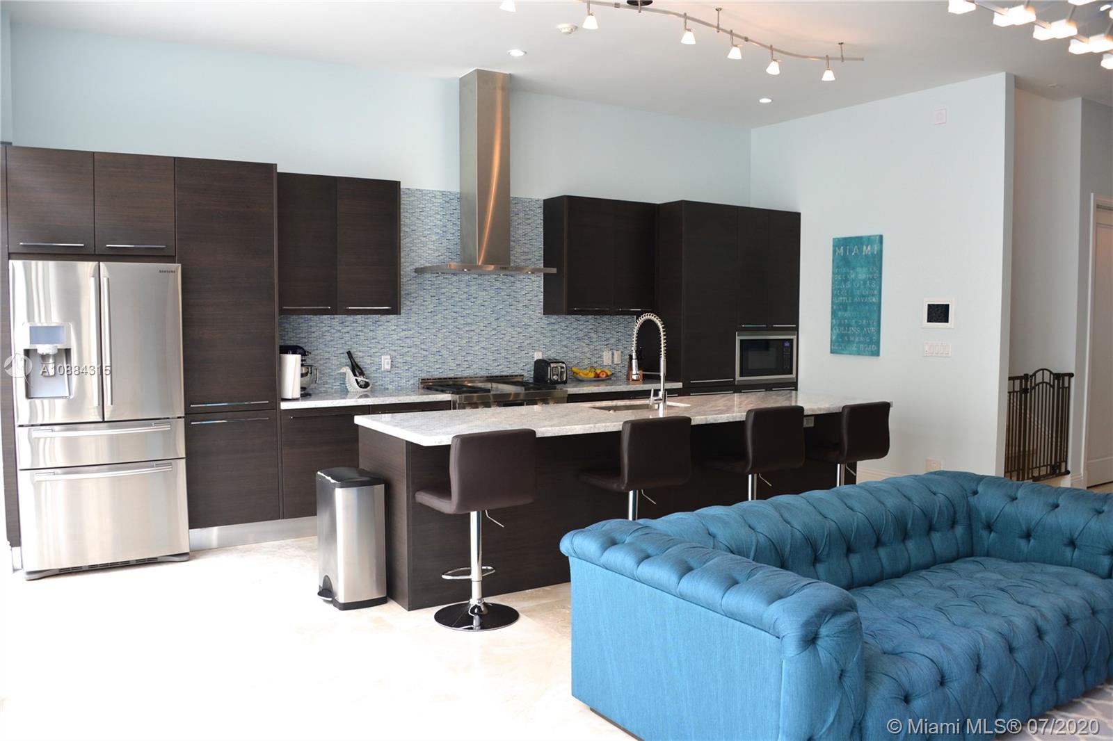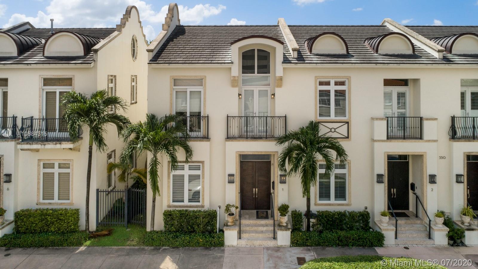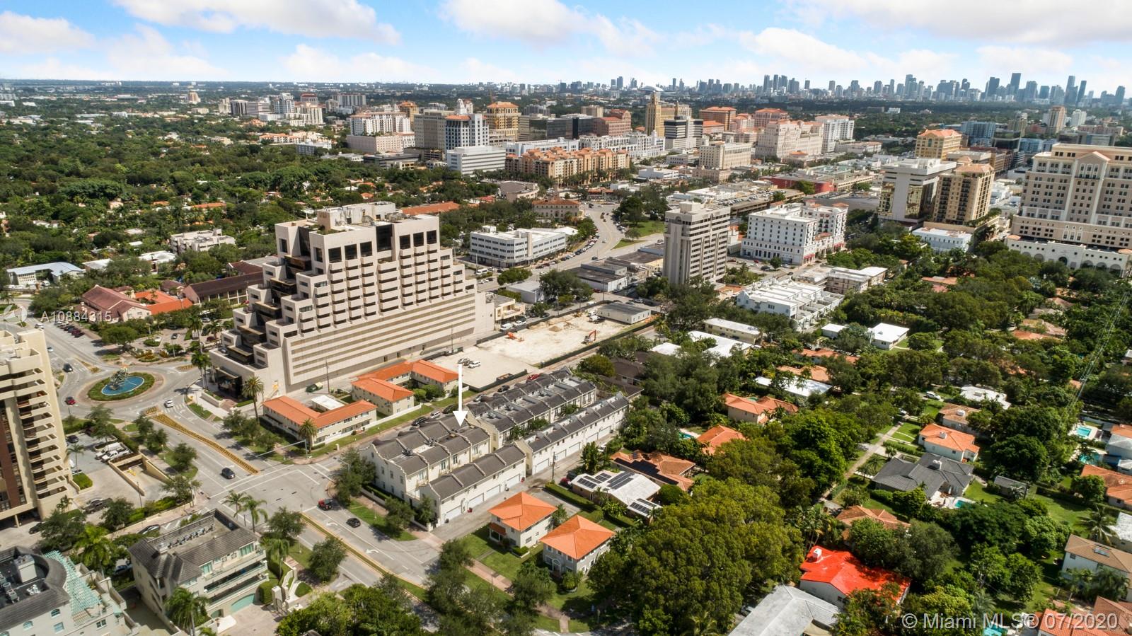 Exclusive Townhouse located blocks away from Downtown Coral Gables. 4 Bedrooms 4.5 Baths with a separate guest house/media room, complete with kitchen area, bathroom, walk in closet and 3 TV's above garage. Intimate courtyard terrace joins the two structures. Gourmet kitchen with marble countertops, High end appliances such as Jenn-Air, Bosch and Samsung. Spectacular features include: Smart house, Private elevator, 11 ft. ceilings, stone floors, refrigerator in the garage and state of the art master shower.