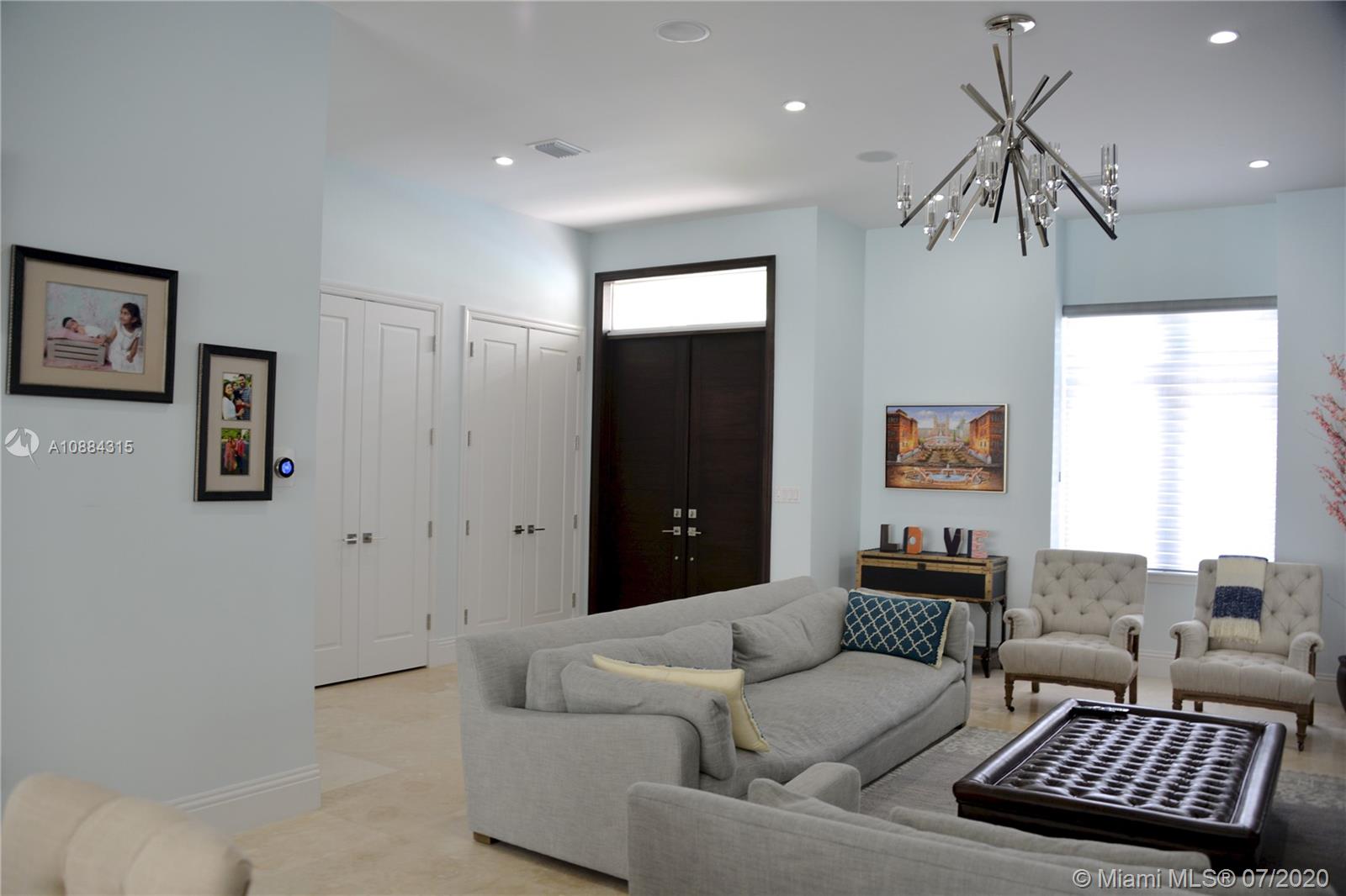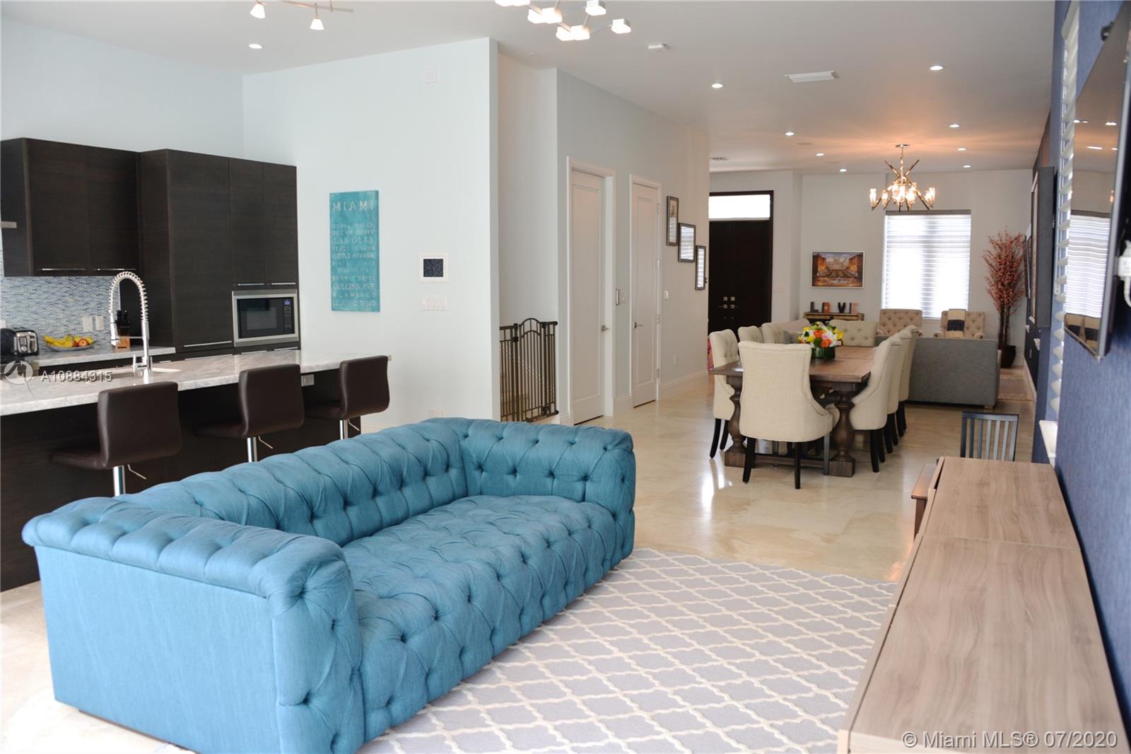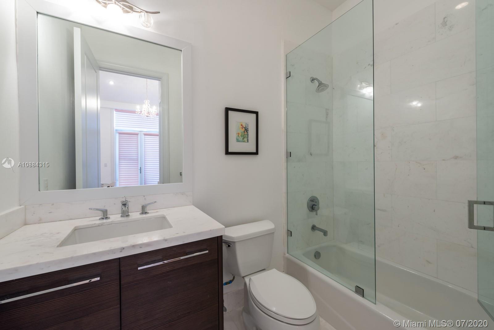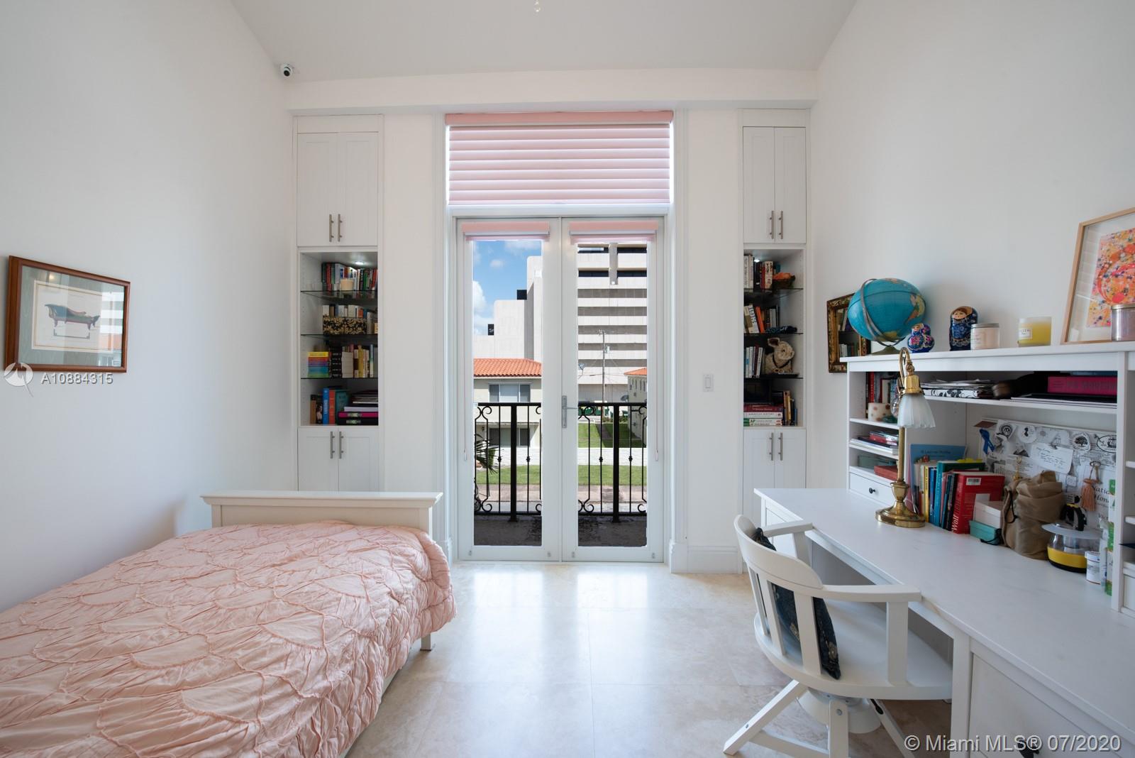 Exclusive Townhouse located blocks away from Downtown Coral Gables. 4 Bedrooms 4.5 Baths with a separate guest house/media room, complete with kitchen area, bathroom, walk in closet and 3 TV's above garage. Intimate courtyard terrace joins the two structures. Gourmet kitchen with marble countertops, High end appliances such as Jenn-Air, Bosch and Samsung. Spectacular features include: Smart house, Private elevator, 11 ft. ceilings, stone floors, refrigerator in the garage and state of the art master shower.