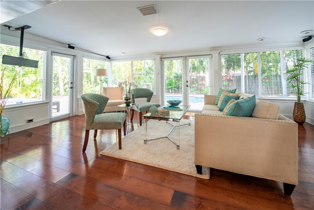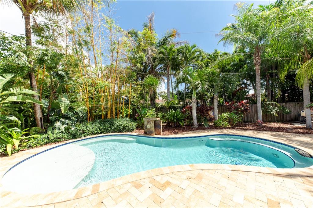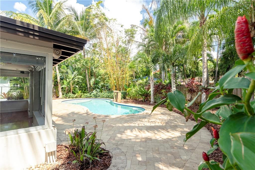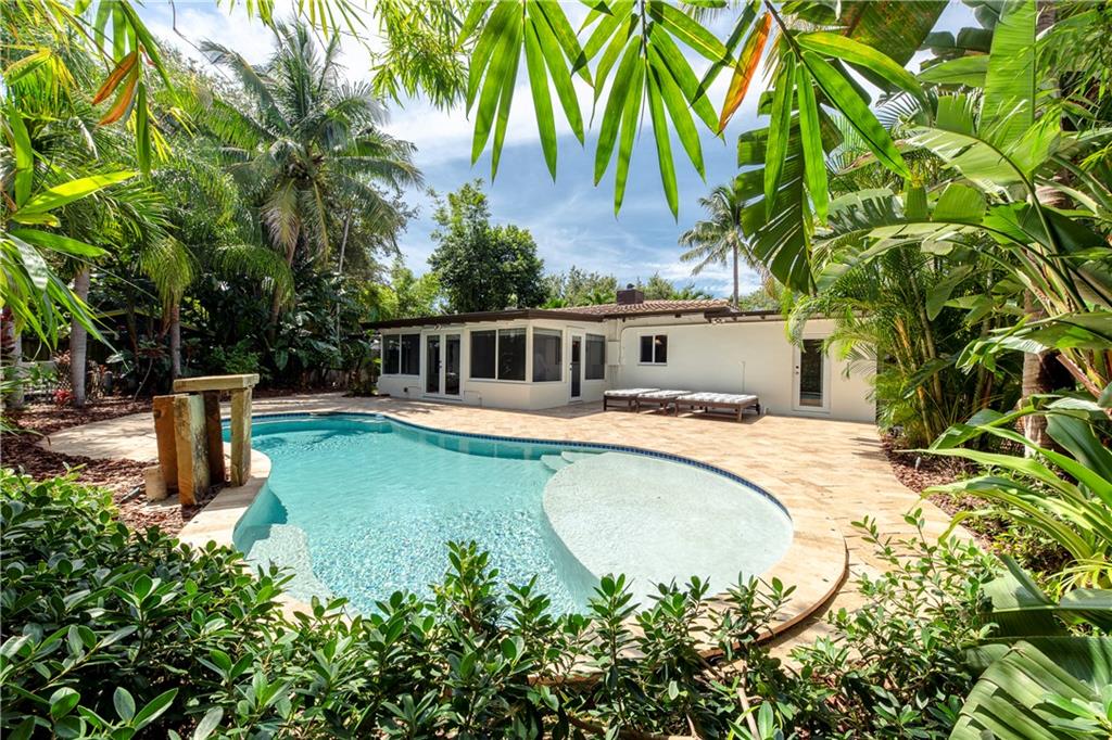 Welcome home to this beautiful 3+2+pool home on one of the nicest streets in Poinsettia Heights. Lush, mature landscaping and sculptures greet you as you pull in to your travertine drive. This home has a truly flexible floor plan that was designed to maximize the indoor/outdoor space with living room, family room and dining room wrapped around a central kitchen. The family room overlooks the heated pool and gardens. A split bedroom plan affords privacy, the master bedroom has an amazing closet for the fashionista! The gardens feature plenty of niches for your enjoyment from the front porch to shady spots in back. All windows and doors are impact and the roof is fairly new. Close to all, Wilton Drive, shopping, dining, downtown and most important, the beach! This home is truly a must see!