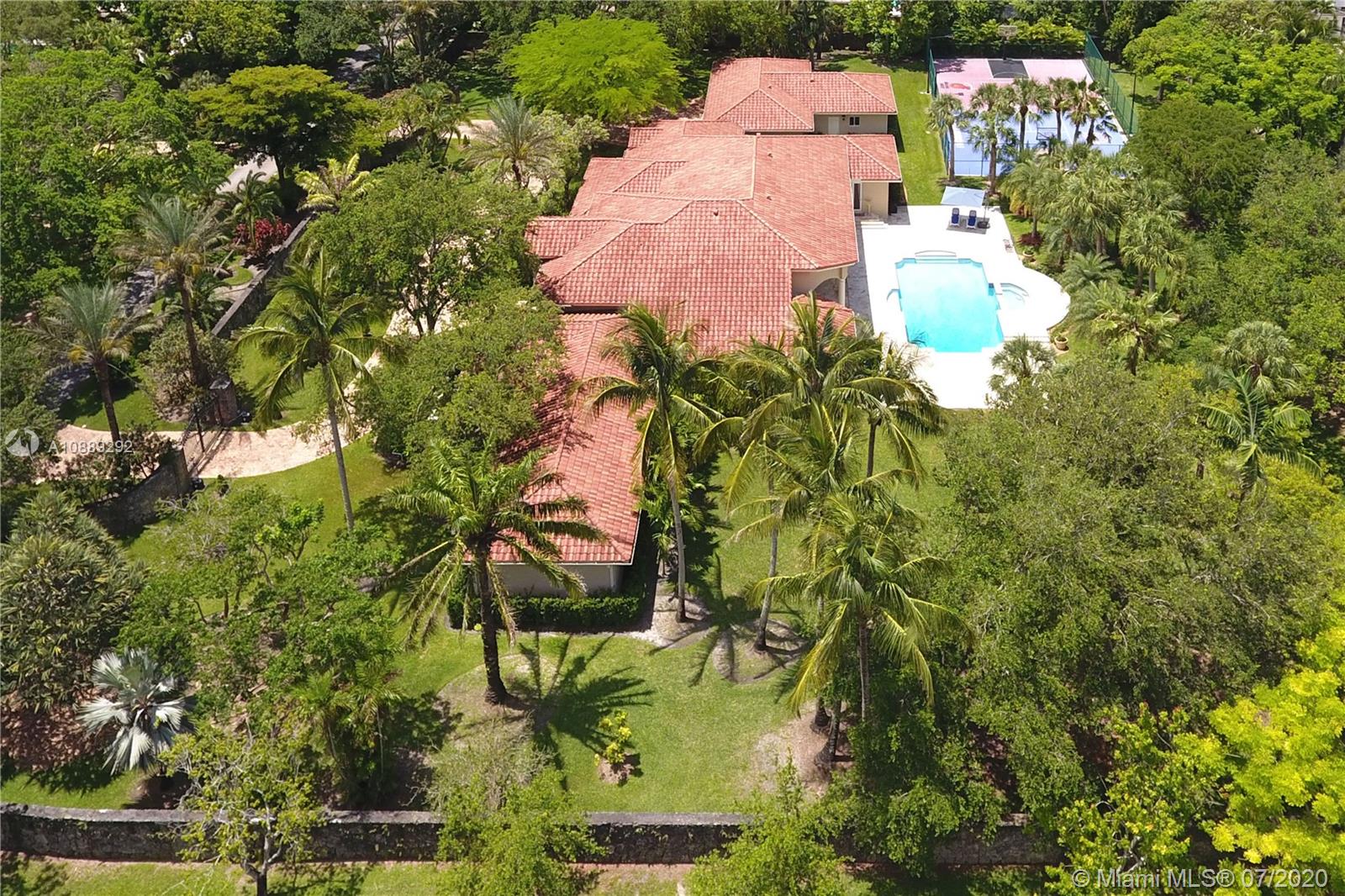 Live an inspired lifestyle in this one-story home nestled on almost 2 acres on a quiet North Pinecrest cul-de-sac. Tall iron gates, old Chicago brick driveway, 6 ft. high magnificent coral rock walls and park-like grounds create privacy and security. 14’ ceilings, tall doors and windows, and a great flexible floorplan gives you countless design choices. In addition to the family room and office, there is a 510 SF newly renovated entertainment room perfect for a playroom, home theater and more. The master suite has a 440 SF closet, shoe closet and 440 SF of flex space for another closet, gym or storage. Full basketball/sport court with LED lighting. Large saline pool. 6-car garage. Impact glass. Lots more! A must see.