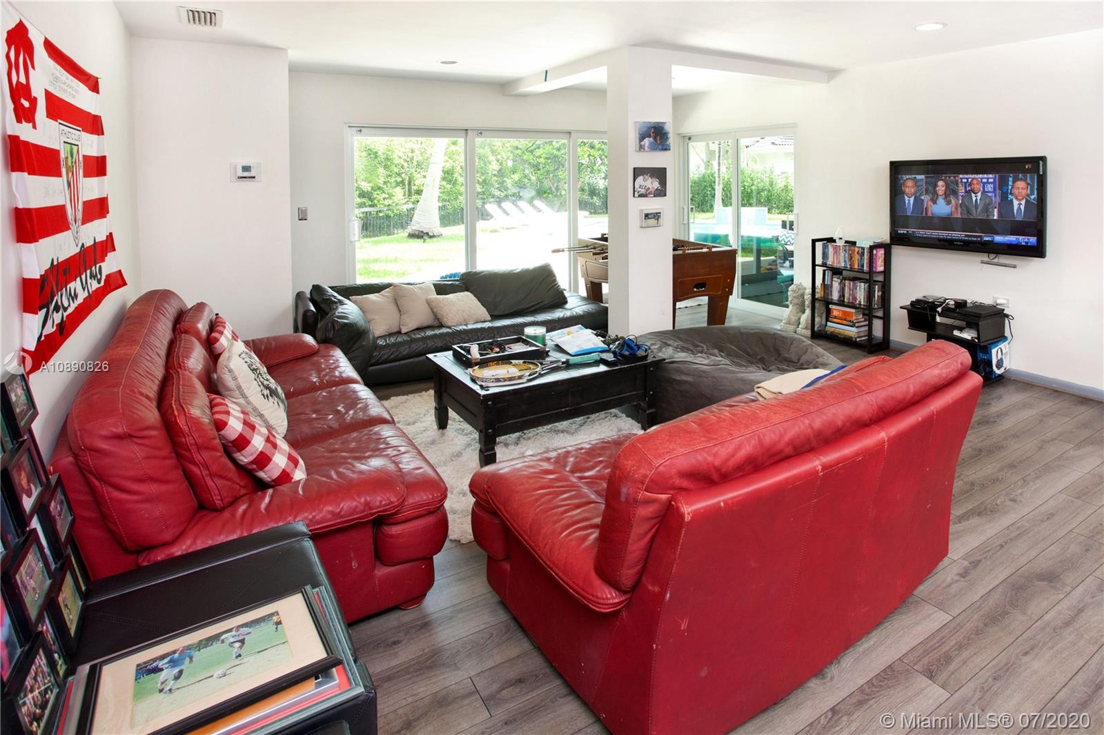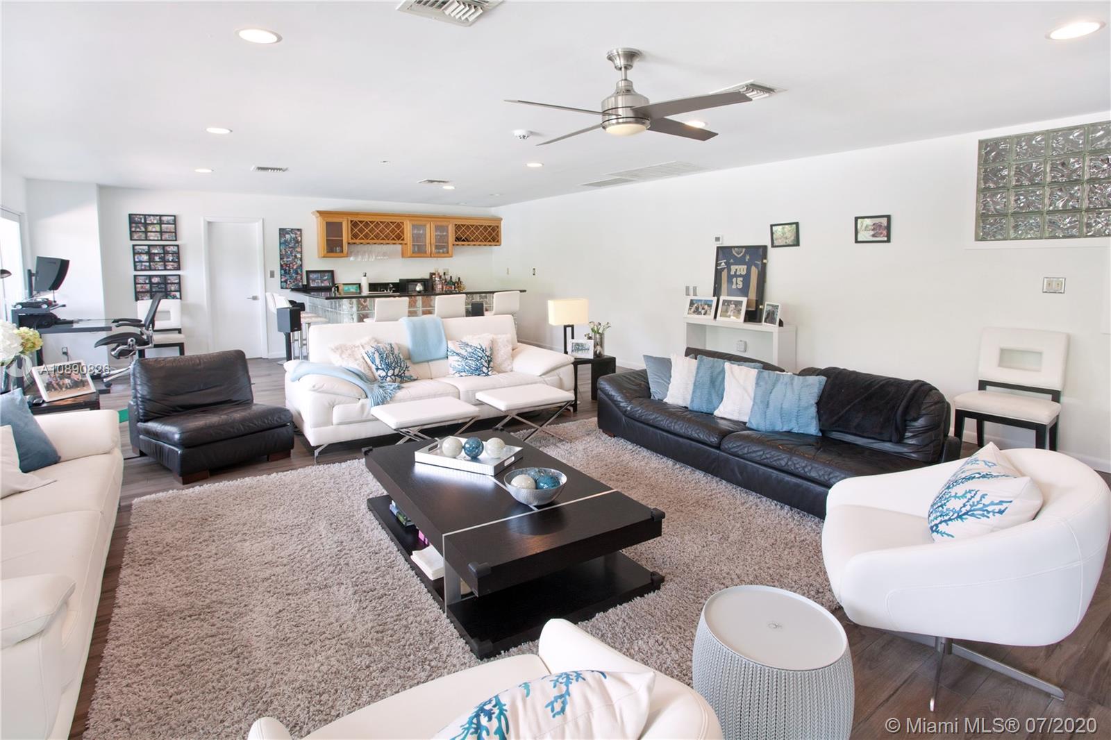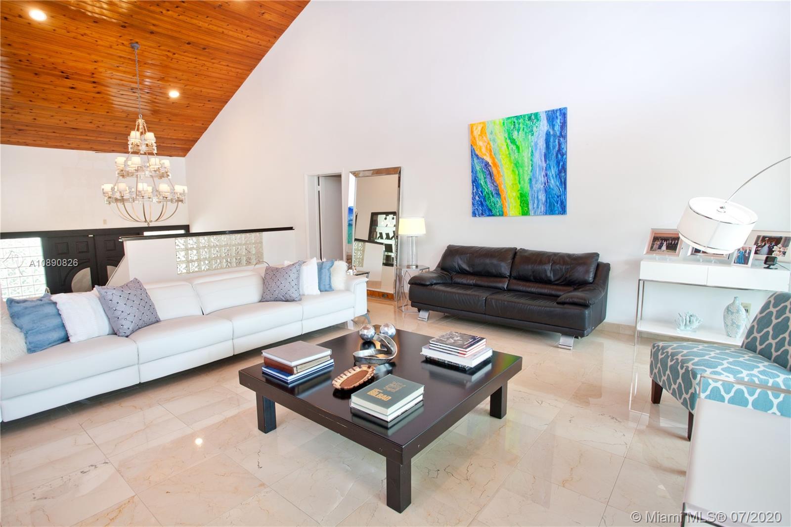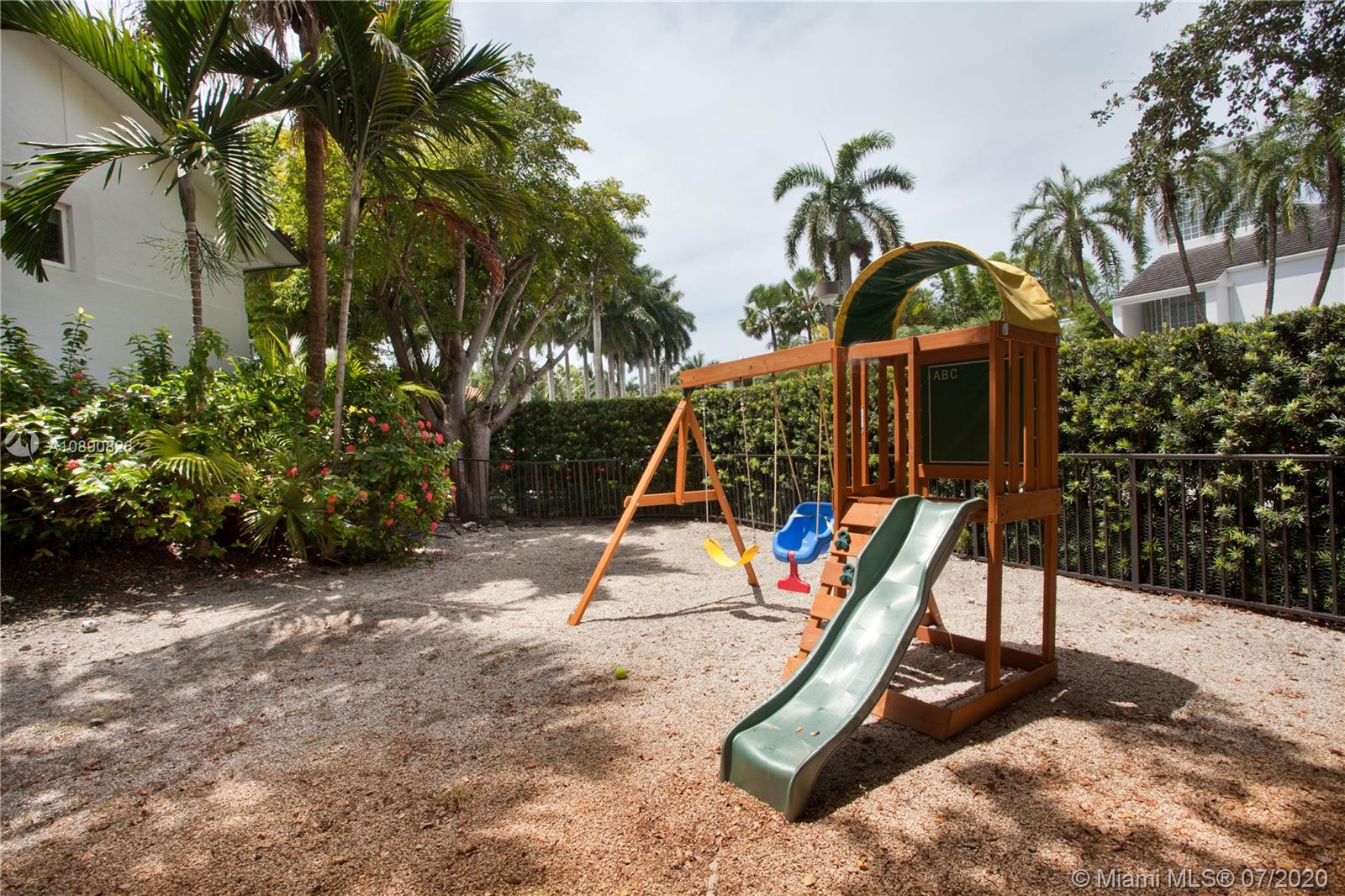 Spacious home in Islands of Cocoplum. From foyer landing, step up to large living rm w/high ceilings & glass doors overlooking pool/patio. Spacious formal dining rm. & guest suite off living rm. Kitchen w/granite counters, cooking island, opens to eating terrace & staircase leading to the pool & patio. Bedrm wing has a large main bedrm w/2 walk-in closets, large bathrm w/separate shower/tub & double sinks. There are also 2 very spacious suites. Large bonus area w/2 entertainment spaces w/wet bar, cabana bath, & additional spaces that can be used for playroom, recreation, gym, storage, etc. 2-car garage, covered terrace, pool w/cascade, fence & privacy hedge. The property also offers a small playground area. 2017 impact windows/doors, 2016 roof and 2018 A/C units