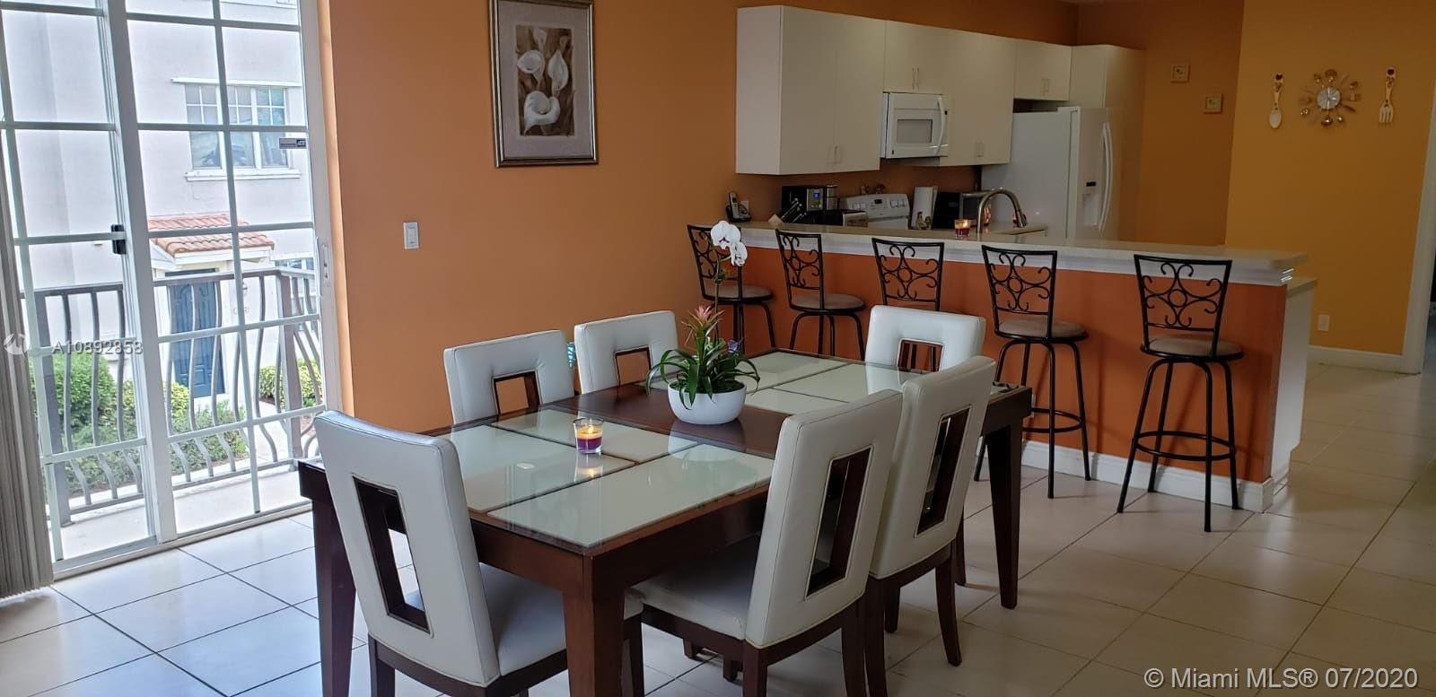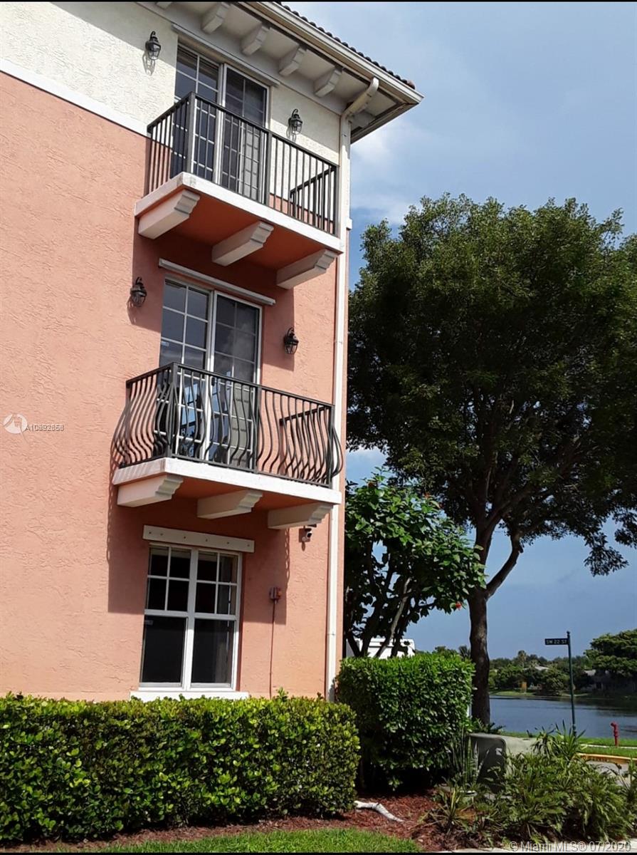 Beautiful corner unit town home, 3 bedrooms each with their own bathrooms plus a guest half bath in the first floor. Wonderful Mirabella at Miramar neighborhood. 3-story corner unit, lake front, 2 car garage, 2 balconies. Brand new washer, dryer, and refrigerator. Front lake view! Very well kept. Plenty of guest parking and community pool. Home owners association includes: basic cable, internet, lawn and landscaping maintenance, amenities, pest control outside, pest control inside if needed, security patrol, alarm monitoring and outside pressure cleaning.