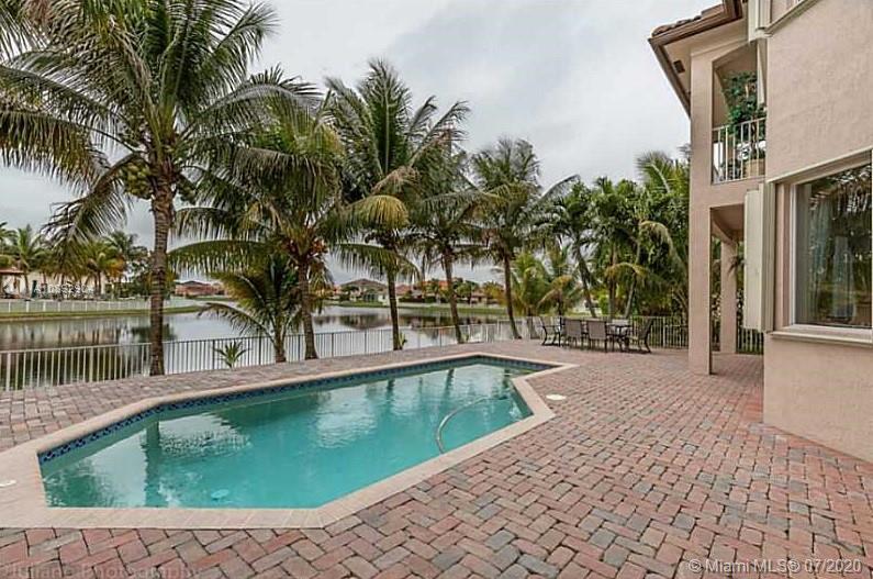 Beautiful, new remodeled and bright Single-Family House. Spectacular home with grand entrance, high ceilings and a view that will leave you breathless. One of the only few houses in the community with private pool and lake view. A flawless home consisting of two master bedrooms, one located downstairs with a full bathroom and a master suite on the second floor with a private balcony and amazing bathroom with roman tub and separate his and hers shower heads. Upgraded kitchen cabinets and granite counter tops with new stainless-steel appliances including a dual wall oven. Window treatments and shutters throughout. Great community with all amenities. Rented till October 2020. Text the agent for showings.Showings only Wednesday 5pm-6:30pm