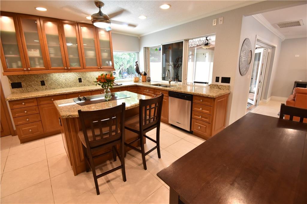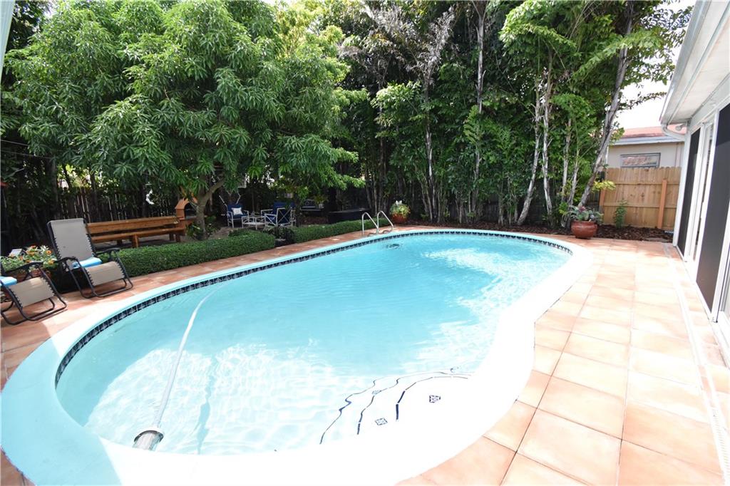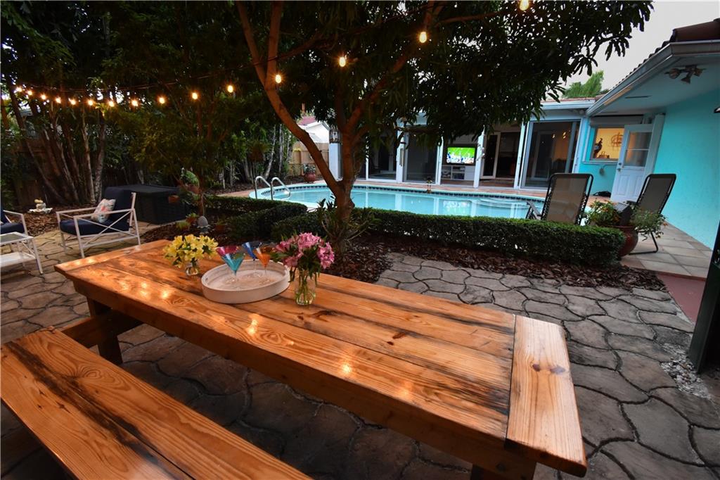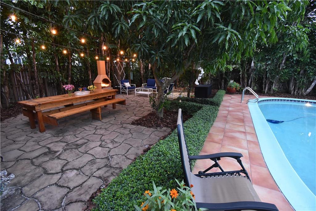 ENTERTAINMENT AND ZEN MASTERPIECE!. See this remarkable home only a few miles from the beach! This home has it all, including a picture-perfect backyard ready for some yoga sessions during the day and some entertaining or peaceful nights in the pool under the stars. Enjoy the outdoor oven and picnic table for family or friends and make some great memories. Mr. and Mrs. Clean live here with an open layout and modern touches with plenty of bright light through the upgraded shutters on all windows. Enjoy upgraded bathrooms and kitchen with granite countertops and cooking island. Relax in your covered and secure patio with impact doors and separate a/c with electric shades and snack bar to the kitchen—great curb appeal with circular driveway in front and one car garage in the back.