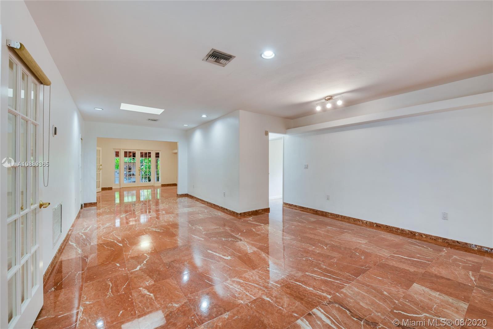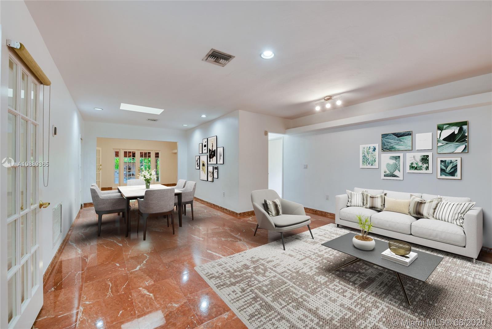 Introducing a sweet and spacious residence with many recent upgrades and strategically located just blocks from UM and near David Fairchild Elementary as well. This 1-story abode offers marble floors, skylights, formal living, dining and family room, walk-in closets and an inviting covered terrace out back that is ideal for casual dining. Its 4th bedroom probably best used as an office and affords beautiful natural light filtering from the French doors. Some significant goodies include an 8-year old tile roof, new A/C system, new septic/drain field in 2018, termite tenting in June 2020 and easy-close accordion shutters for storm protection. This is a fantastic offering for location and price!