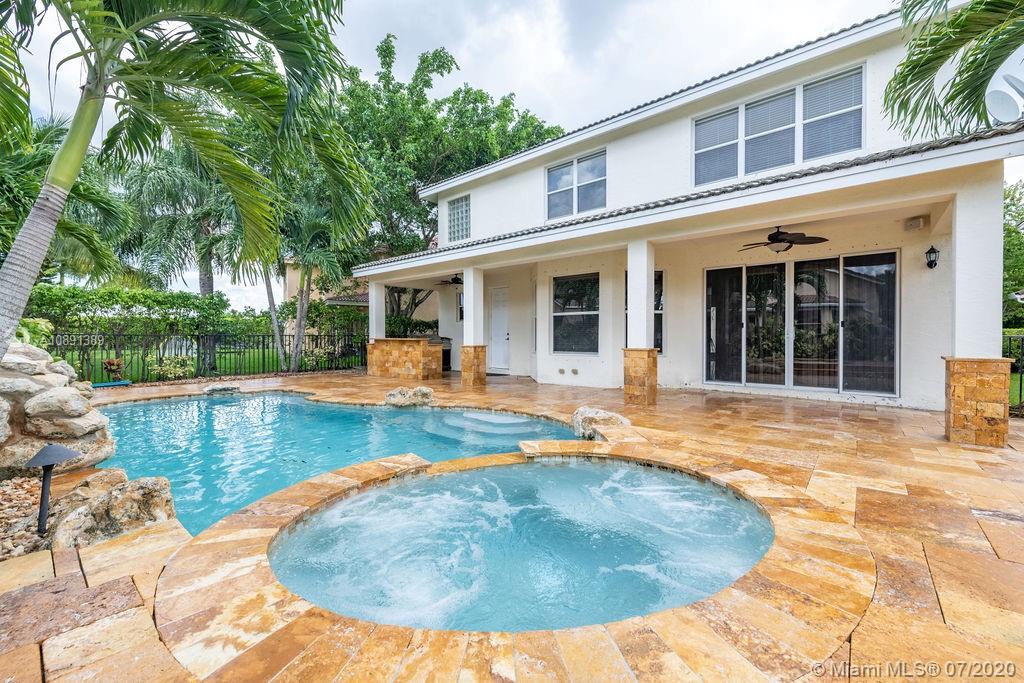Gorgeous 2007 completely updated 5 bedrooms, 3 bathrooms, + office, bonus room/Gym with closet, Pool and Spa home, located in the desirable guard-gated community of Sunset Falls. Features a Large New Kitchen, with granite countertops, stainless appliances, double oven and wine cooler. Spacious master bedroom with large sitting room, 2 walk-in closets. His and Hers (2) master bathrooms with jacuzzi tub and shower. New Washer and Dryer. Two a/c (inside) units installed in 2018 and 2019 with Nest thermostats. Extended driveway parks 5 cars. Beautiful pool with waterfall, spa, and travertine patio with outdoor kitchen. Community offers guard gate, tennis, basketball, community pool, clubhouse, and playground. Home faces East.