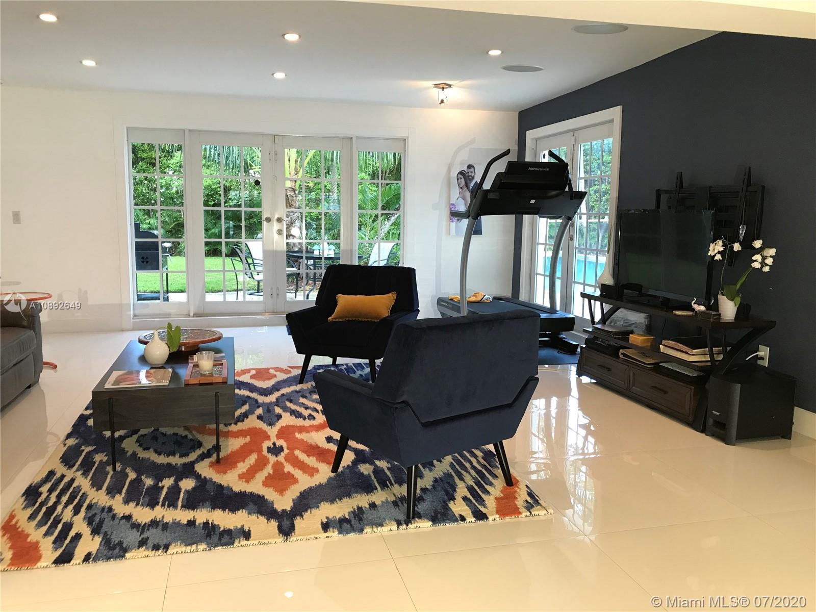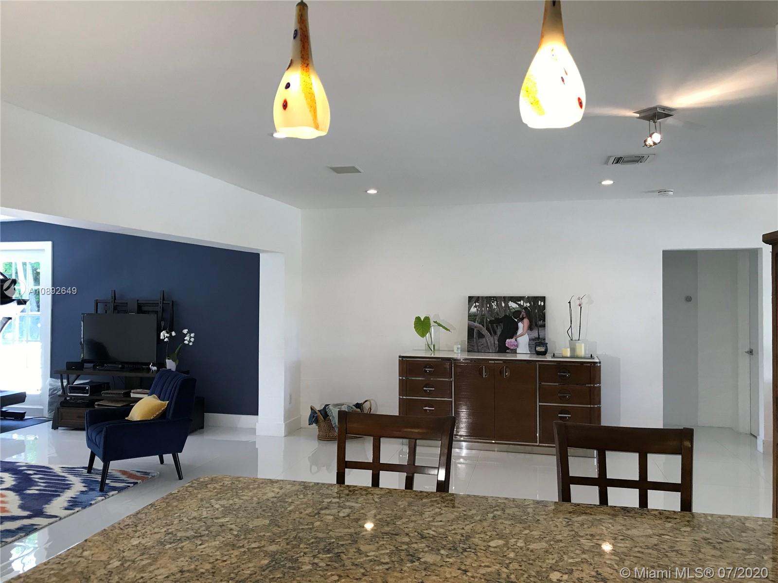 Luminous spacious home w/all impact windows&doors, white porcelain flooring throughout w/a split 3/2 floorplan.Large kitchen granite countertop, equipped w/all new Samsung stainless steel appliances.Built-in surround sound system, Nest,&ADT system w/security camera.Dining room &family room overlook the garden&large salt water pool with jacuzzi that is surrounded by a new security baby gate.The master bedroom suite faces northeast allowing plenty sunlight has a built-in walk-in closet& bathroom.The 2 other spacious bedrooms have large built-in closets. Fenced private yard w/a 1 car garage on an oversized corner lot. Architectural plans ready to elevate & convert garage to another bedroom for flood mitigation due to rainstorms and king tides flooding garage & around the home on the property.