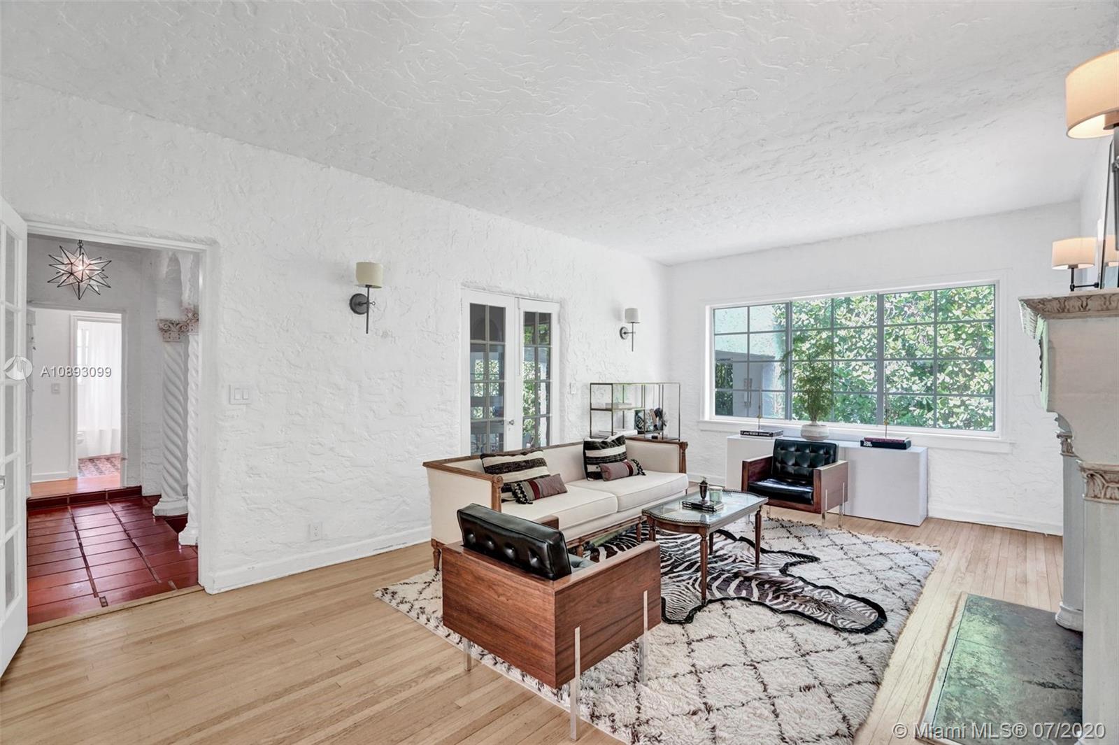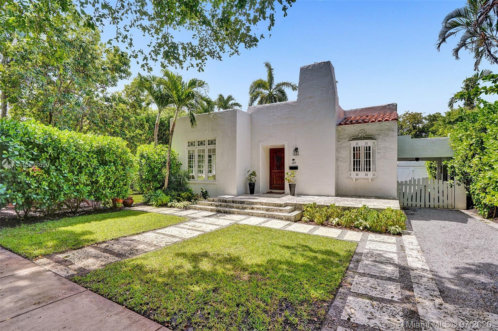 Raise una copa to this truly unique Old Spanish casita just outside of Downtown Coral Gables. Restored decorative elements highlight a modern, sun-drenched flow and layout that beautifully ties the lush garden views into every living space. Notable updates include PVC plumbing throughout, contemporary landscape, entrance steps with pavers and driveway, bleached and refinished original wood floors, new bathrooms with decorator tiles, and irrigation system. Home also features impact windows, wood kitchen cabinets, back and side yards with patio areas and detached garage. All in the heart of the City Beautiful. Make this little piece of the Gables’ rich history yours.