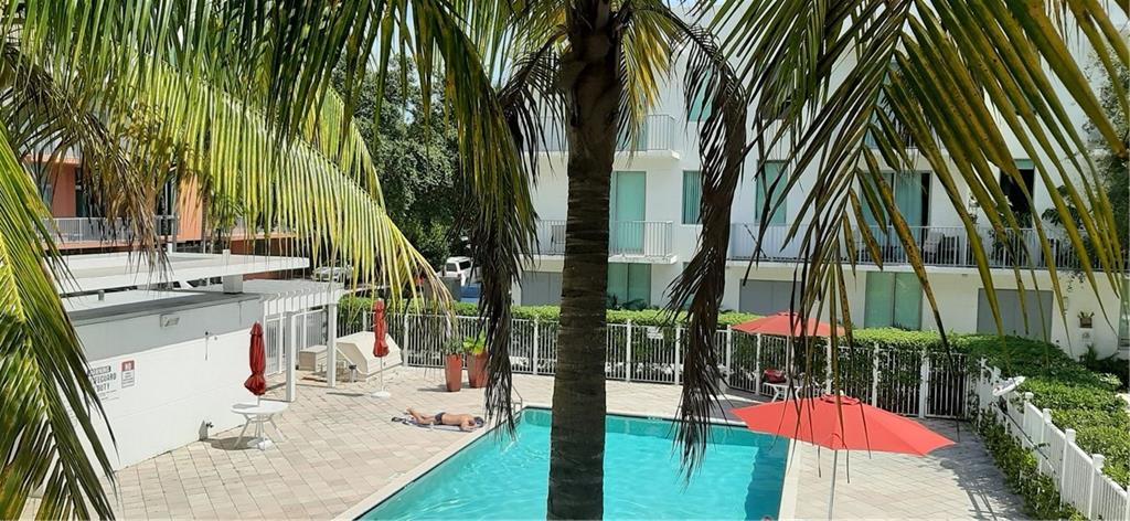 Sophisticated 3 BR, 3 1/2 BA + den w/attached private 2 car garage. Light & bright 3-story town home with 10 foot ceilings provides ample space for entertaining family and guests. Two balconies with garden and pool view flanked by palm trees. Sleek open kitchen w/stainless appliances, granite counters, and tons of cabinet storage. Ceramic floors; Berber carpeted stairs & bedrooms, two breakfast bars, washer, dryer, high impact glass windows & sliding doors. Has 1 year transferable appliance warranty until July 2021. Best Location in the community. Pool and Courtyard View. Walk to downtown Hollywood restaurants and bars, or bike to the beach. Short drive to Hollywood Beach, Hard Rock Hotel & Casino and Ft Lauderdale Airport. Pets allowed. May be leased immediately for up to $3,000 monthly