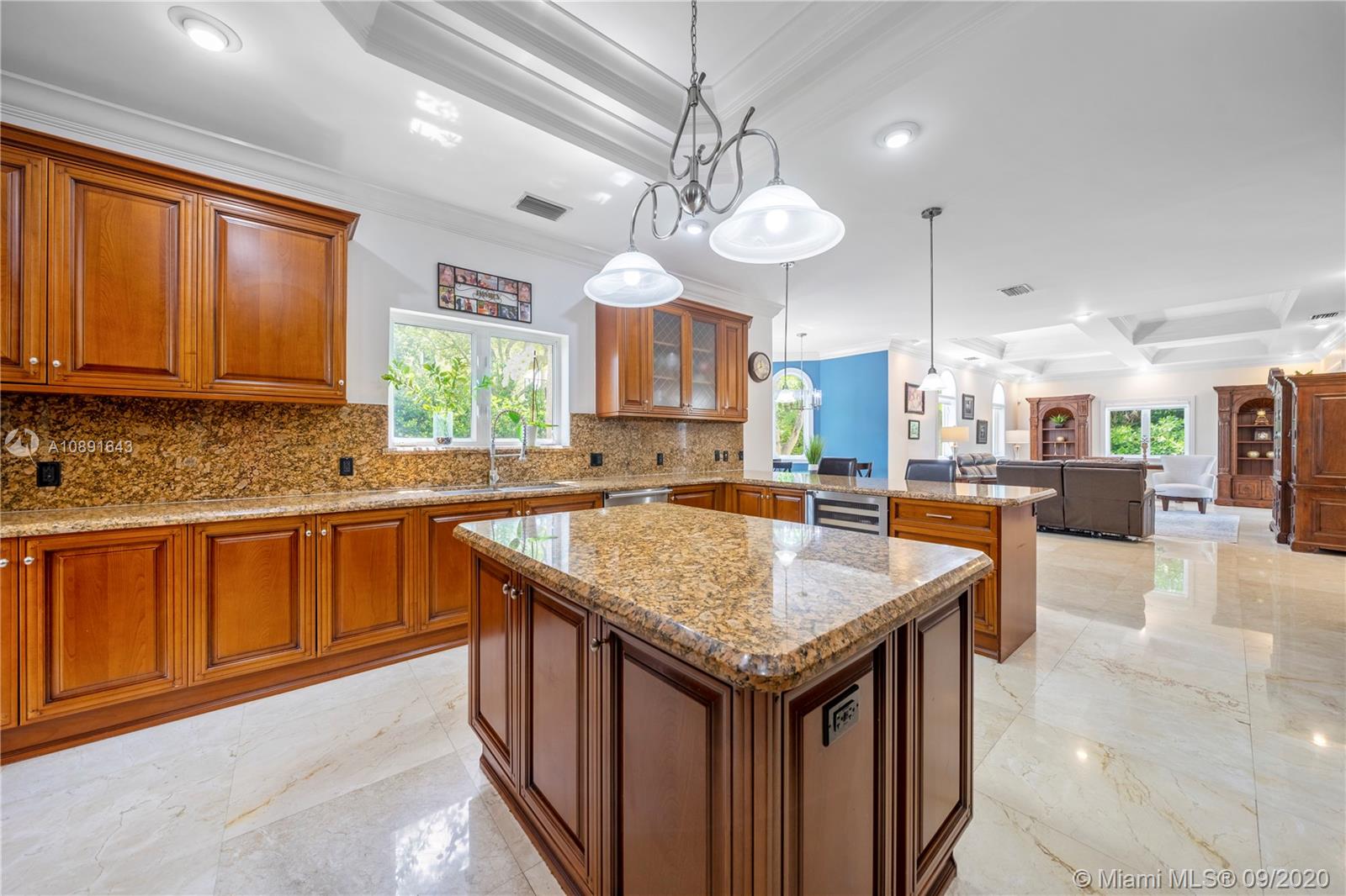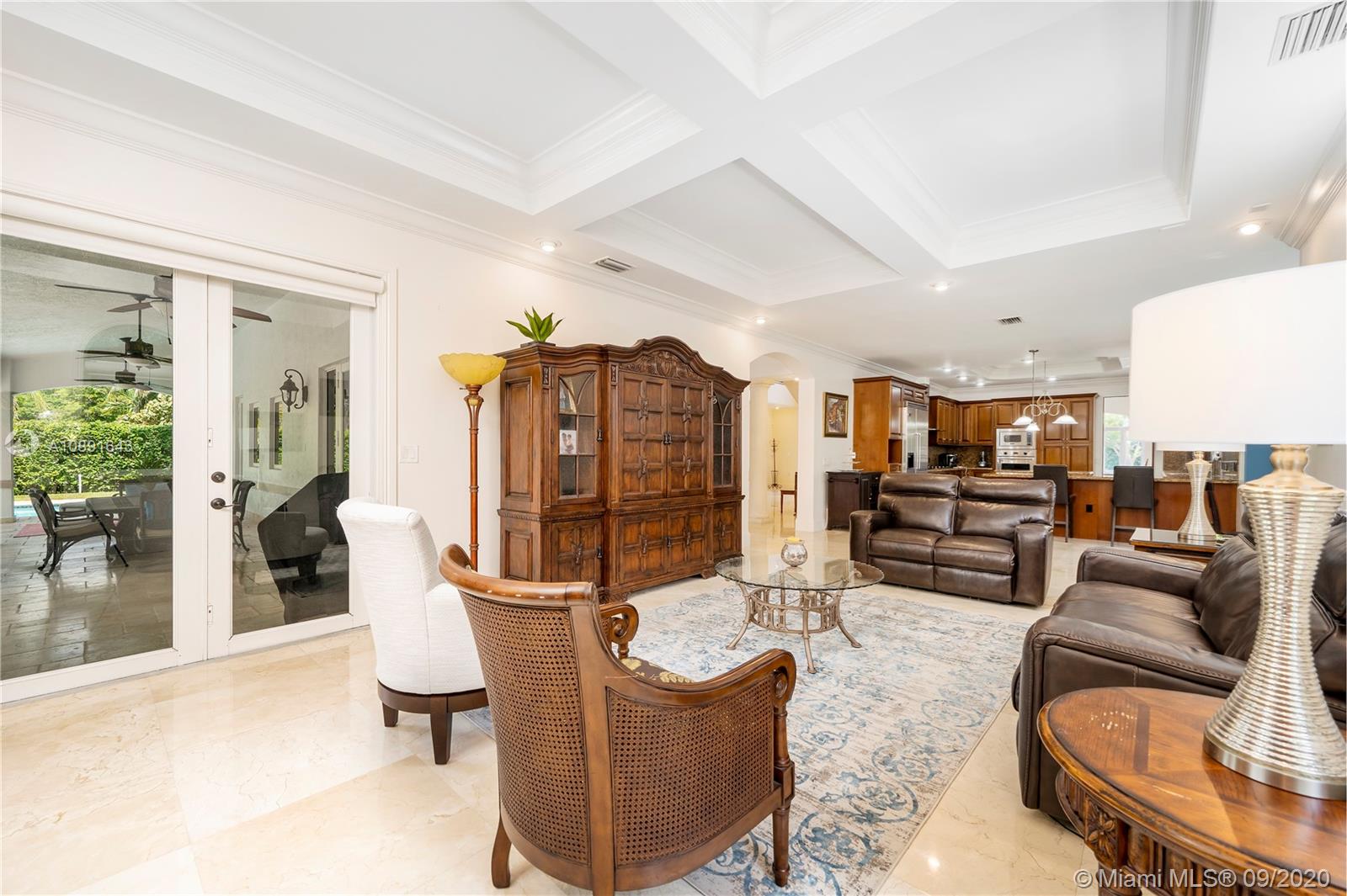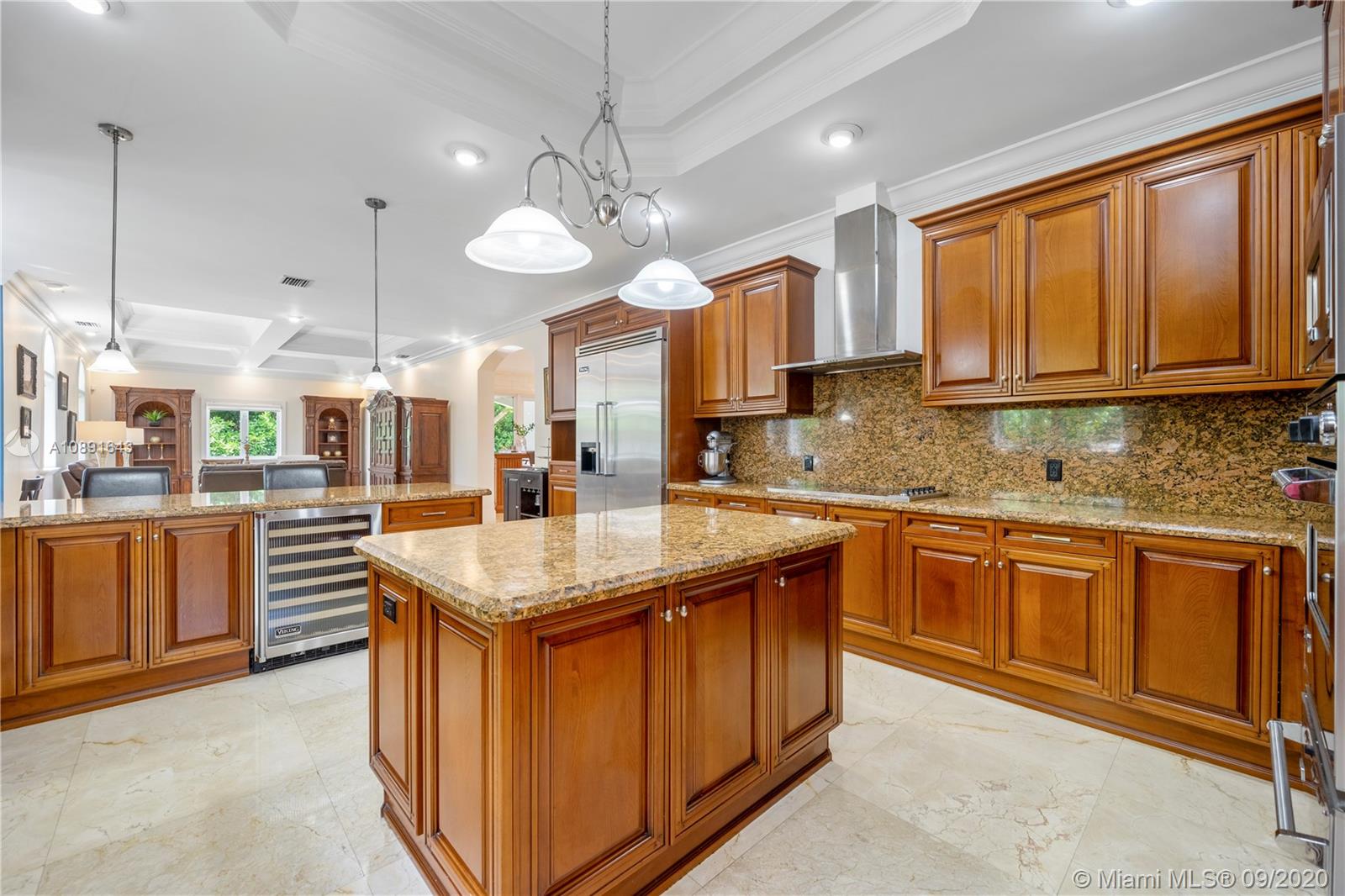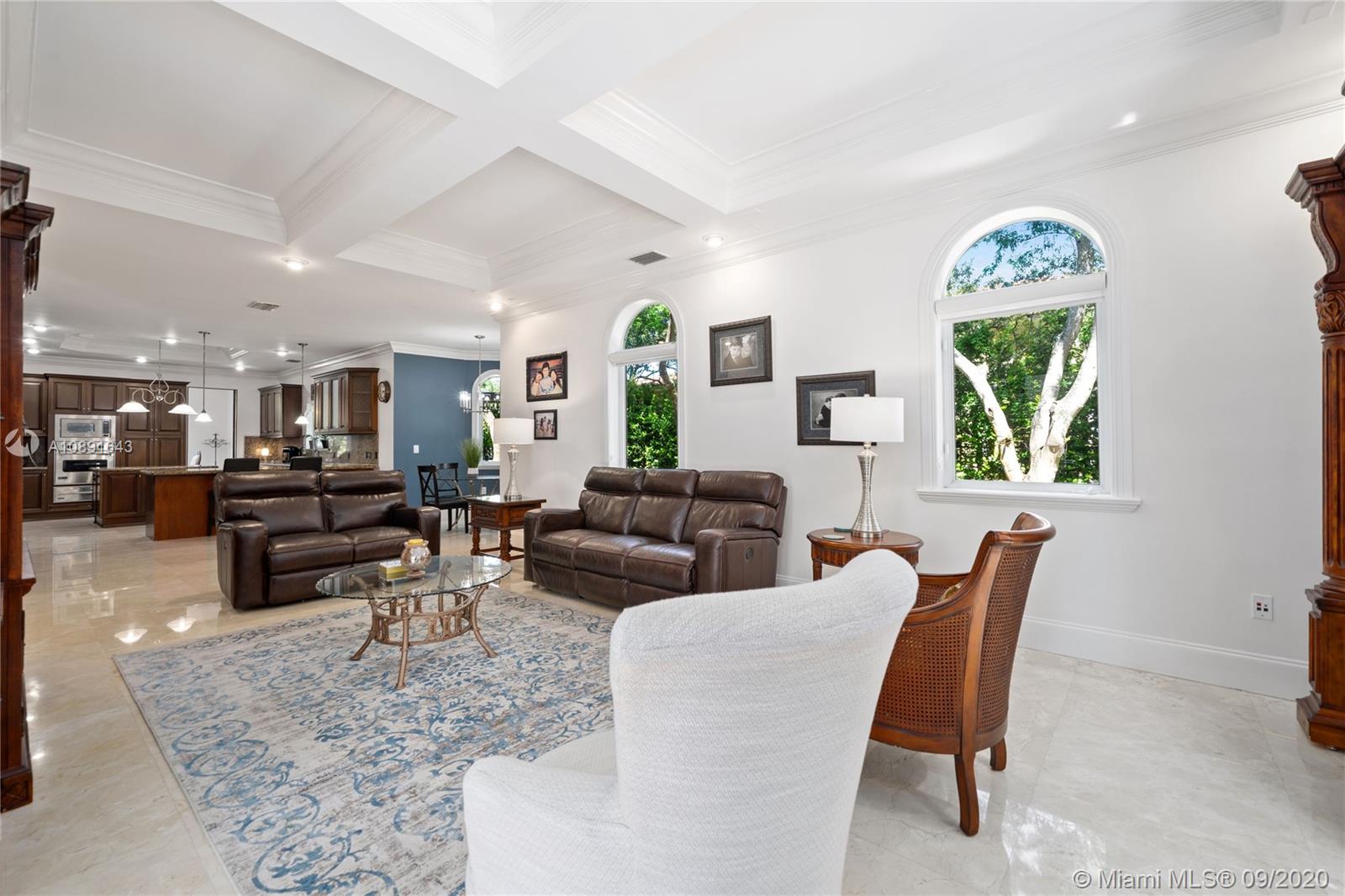 Enjoy pure elegance. 6 bdrm/ 6.5 bath gated estate in the Village of Pinecrest. Fantastic floor plan, flooded in natural light. Grand formal entry, volume ceilings, sweeping staircase & expansive formal living rm. Formal dining rm. A chef’s kitchen, outfitted w/ Viking appliances, large prep island, eat in/ snack bar & breakfast nook all open to family rm. White marble floors. 2 bdrms, en-suite, downstairs perfect for guests. 4 en-suite bdrms upstairs, w/ wood floors, including spacious master complete w/ office/sitting rm, balcony, large bath & walk in closets. Wonderful fenced backyard, paver patio, partially covered, pool w/ spa perfectly placed to maximize entertaining space. Paver drive. 2 car side entry garage. Convenient access to local parks, shopping & restaurants in minutes.