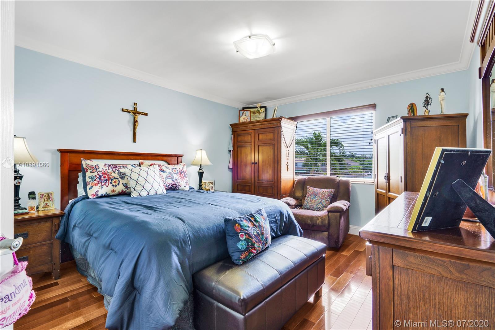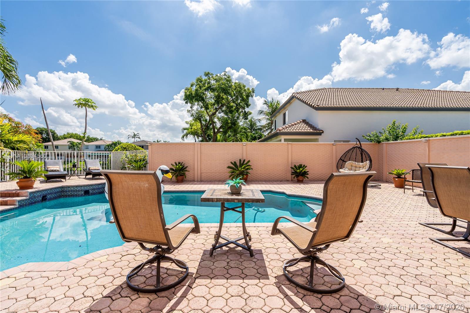 Impeccable two story home in the family friendly gated community of Doral Gardens. This unique home design features 5 bedrooms 3 baths. Spacious floor plan with many updates throughout, including kitchen with granite counter tops and new SS appliances, remodeled bathrooms, 2 car garage with Plenty of Cabinet storage space. Over sized master bedroom, dual sinks, beautiful roman tub with whirl pool jets and separate shower, California walk-in closets. Lake View, and Beautiful pool. Great location near A rated schools, major malls, parks and highways. HOA includes Basic cable, Fast internet/wifi , security system, cameras, Gated Community, common areas. Easy to show!