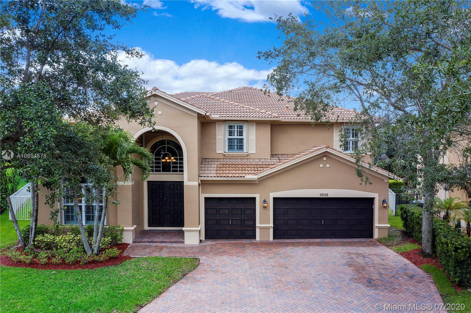 Highly coveted and rare Violet model on oversized end lot and lake. Open and bright floor plan features 5 bedroom, 5 full bathrooms with oversized loft. Kitchen features 42" cabinets, S/S appliances, wood cabinets with marble counter tops. One downstairs bedroom suite perfect for in laws or guests. Master suite features large sitting area and two walk-in closets . MUST SEE!!!