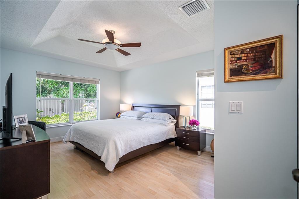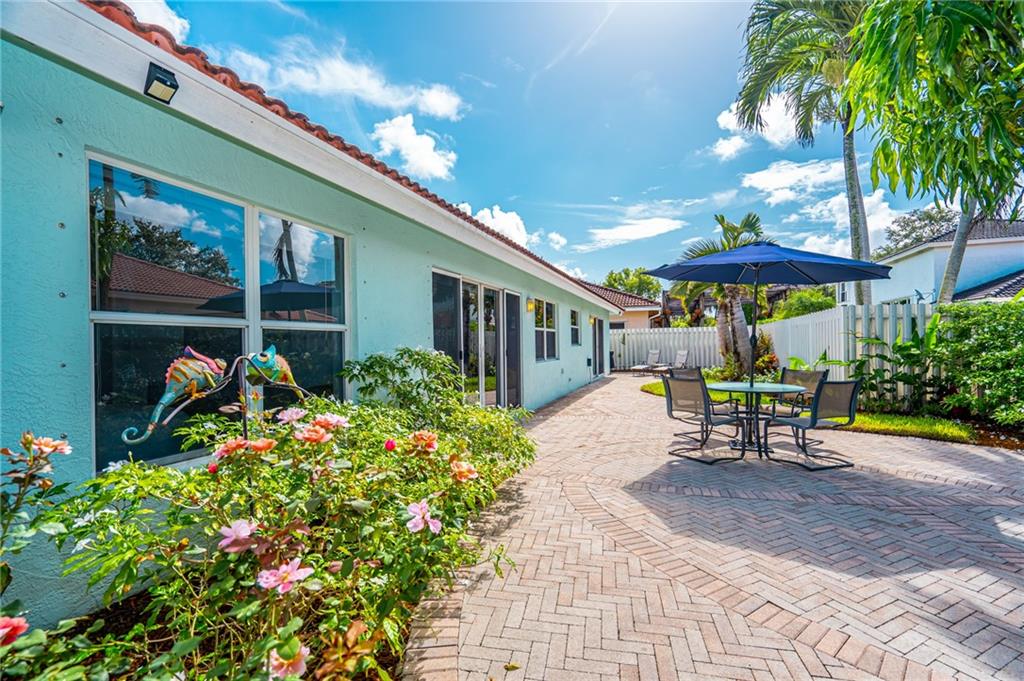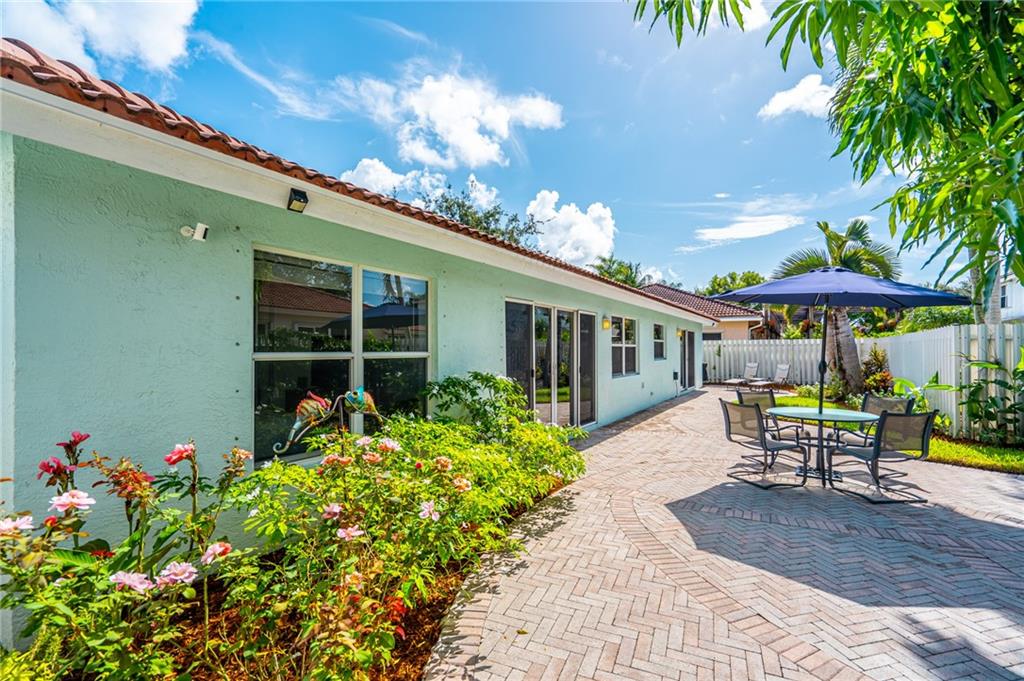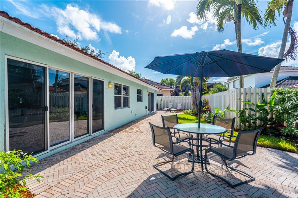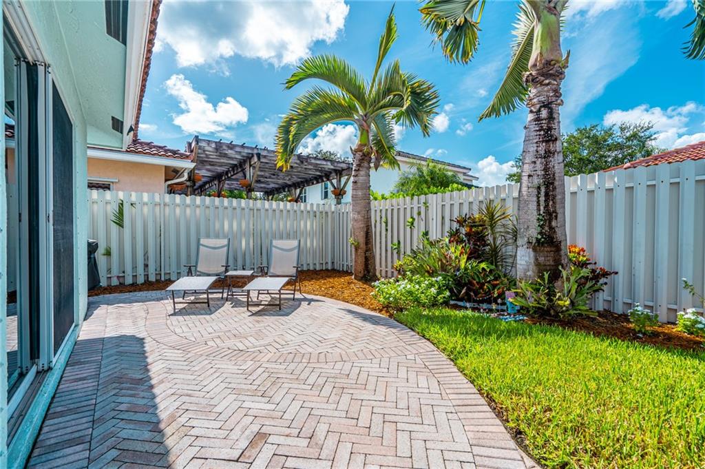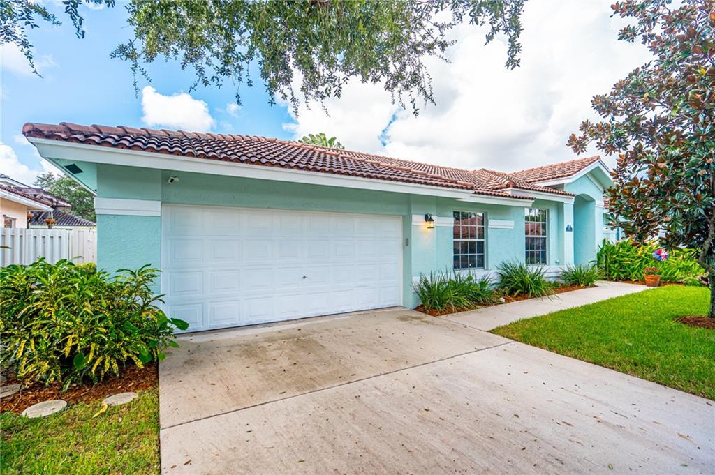 WELCOME HOME! Check out our Virtual Tour! This IMMACULATE home is located on a larger lot in a beautiful gated community. Upgraded kitchen, upgraded master bathroom, split bedroom floor plan, stainless steel appliances, granite counter tops, wine cooler, AC is 2014 with a UV light, front and back ring cameras, hurricane shutters, fully fenced larger backyard and more. It's located near all major highways with about a 10 minute ride to the beach. Thinking of buying a Single Family home and having to worry about the Lawn, the Lawn is taken care of by the HOA, both front and back! Also, there's a guard gate that is monitored 24/7, basic cable included, there's a gym, clubhouse, pool, tennis courts and a golf course right there. Bring your pickiest buyers! Hurry, this one won't last long!