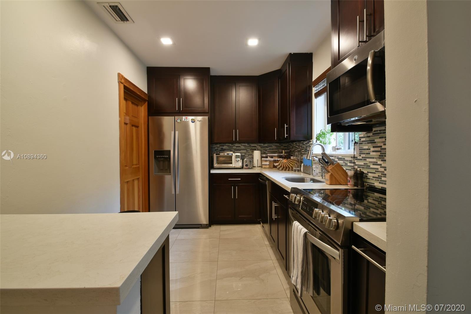 Beautiful 2 bed-1 bath single-family home in North Gables with enclosed yet luminous sunroom overlooking its spacious fenced back yard, perfect for entertaining. Upgraded bathroom, kitchen & floors, impact windows, french doors, plantation shutters, and 2017 new roof. Air-conditioned 1 car garage with Laundry closet, tiled floors & side entrance which could be used as a 3rd bedroom. Enjoy living in this peaceful and private dead-end street. Walking distance to Granada Golf Course and Miracle mile.
