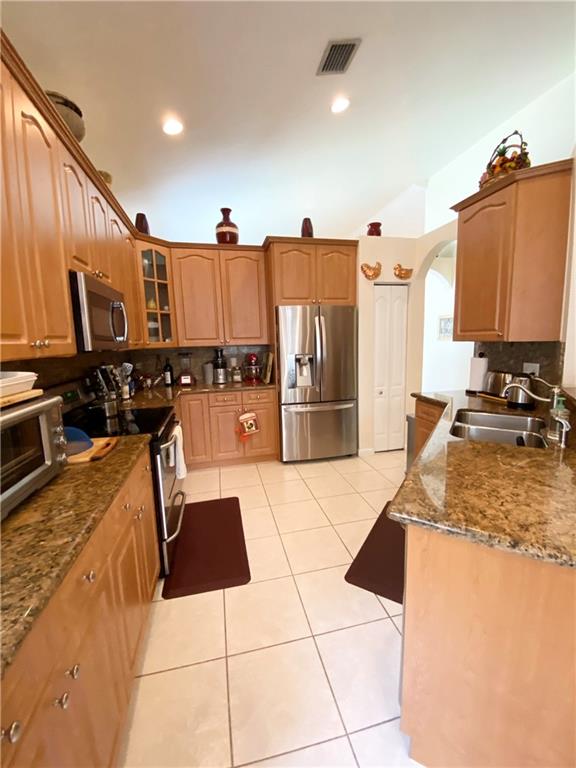 This elegant one story 5 bedroom, 3 bathroom home Monarch Lakes (Portofino South subdivision) features a vaulted ceilings, neutral ceramic tile throughout, formal living and dining rooms, combined family and kitchen area. Original owner maintained the homes and it natural elegance. Subdivision features community pool, playground and subdivision keypad entry gates.