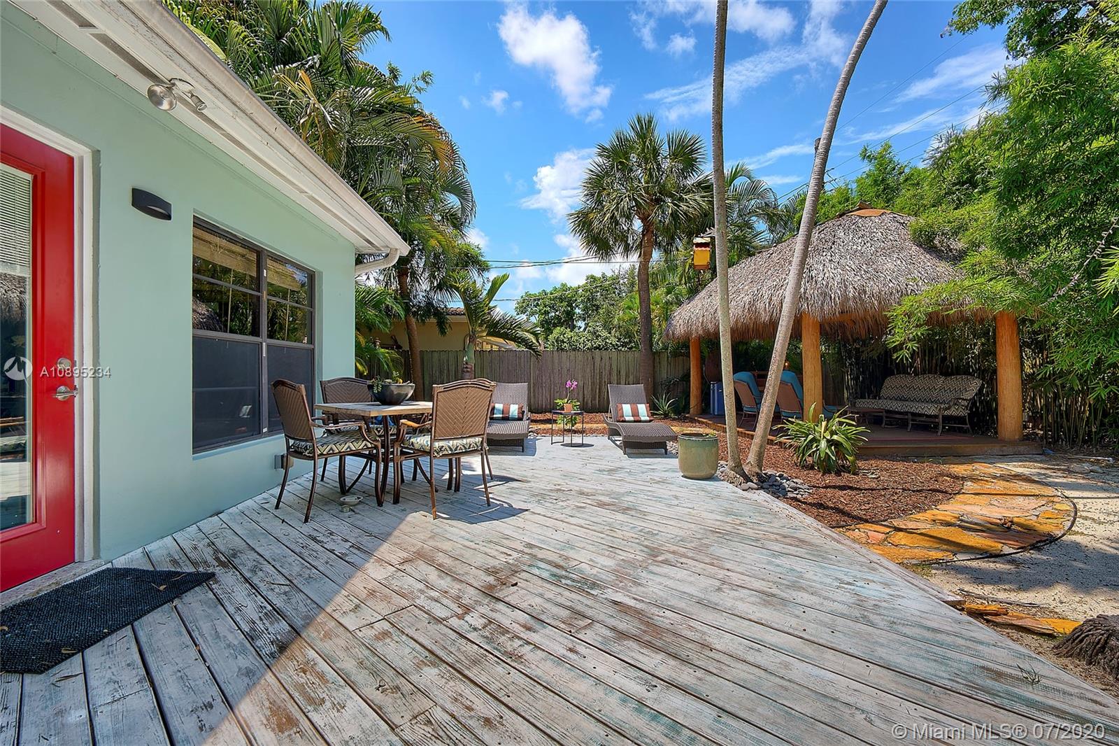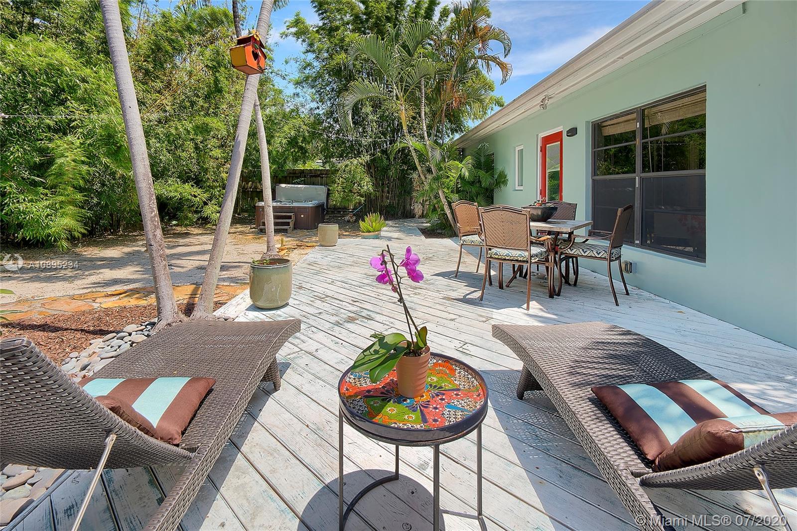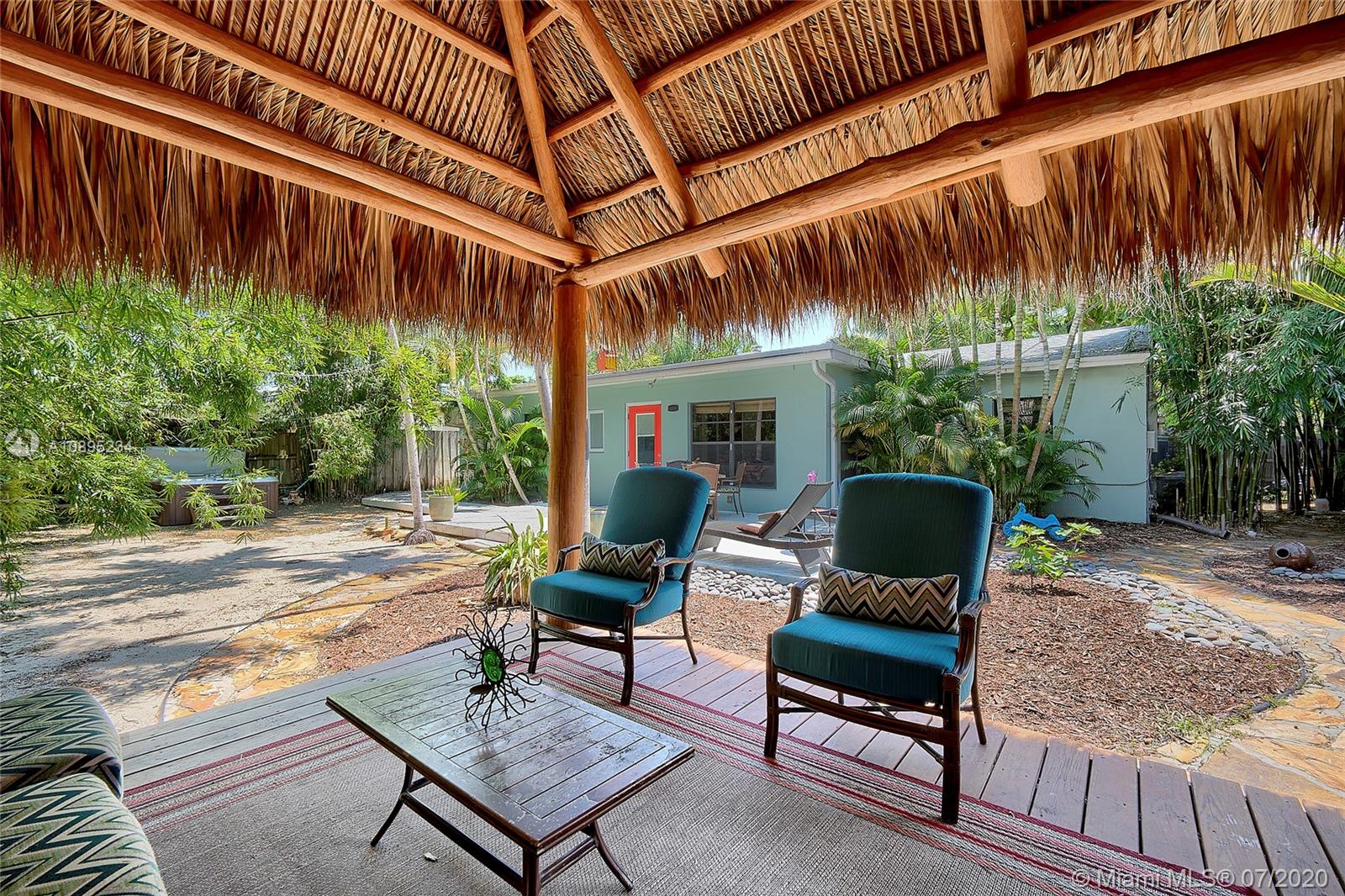 During these times of "staying in", imagine having a home that's YOUR OWN PRIVATE OASIS! When everything is back to normal, you'll be hosting family gatherings, holidays or sporting events. OWNER PRIDE, this home has 3 bedrooms, 2 full bathrooms and a large gated carport. Enjoy your morning coffee in your tiki-hut listening to the birds while surrounded by tropical landscaping. Privacy fence surrounds the entire property. Hurry up because this one really WILL NOT LAST! Charming Victoria Park area. Located on a very quiet street, easy access to downtown Fort Lauderdale/Wilton Manors, 1 mile to the beach, shopping, movies, restaurants & entertainment. New roof 10/2018 (architectural shingle). AC replaced 2013. Bathrooms remodeled 2017. Wood burning fireplace.