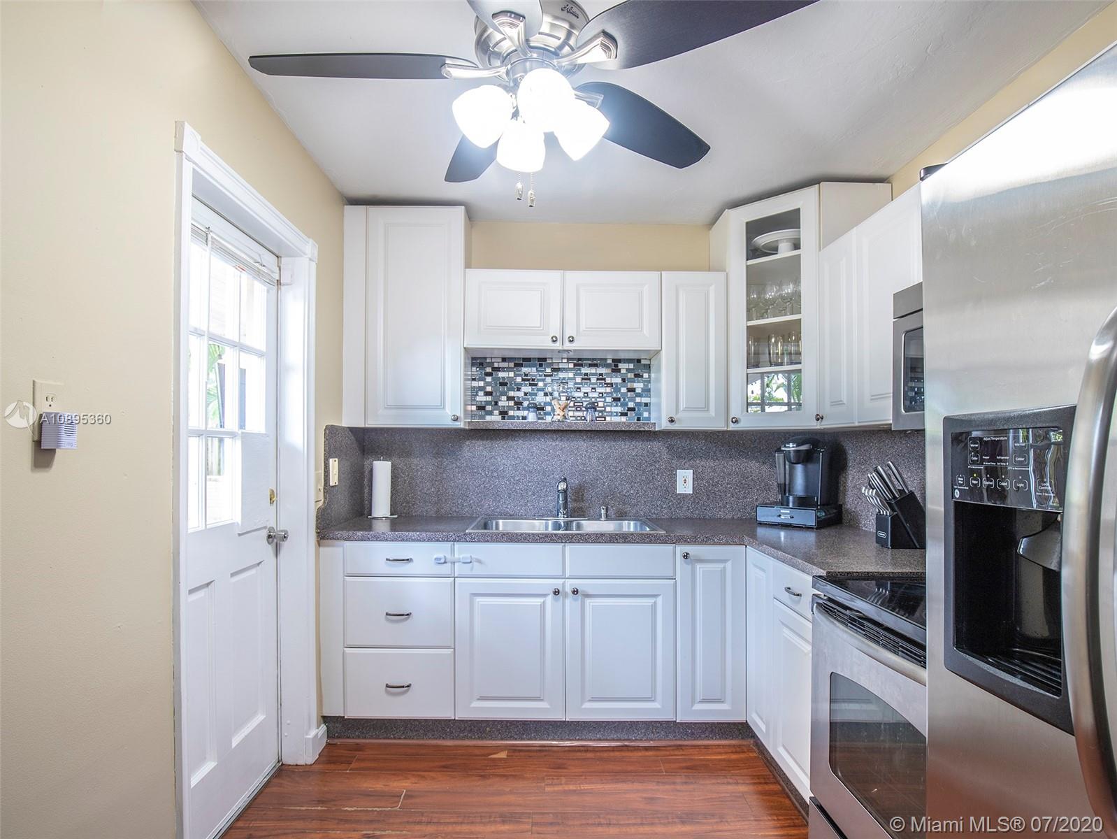 Wonderful house in the heart of Hollywood! Impeccably maintained. Beautiful kitchen with white cabinetry & stainless-steel appliances. Updated bathroom. Home features laminate flooring. Indoor laundry room with newer washer/dryer, Square D Electrical Panel. Gas water heater & dryer. Panel shutters. Great curb appeal. The backyard is stunning with lush landscaping, mature Oak Trees & coal/wood BBQ grill.