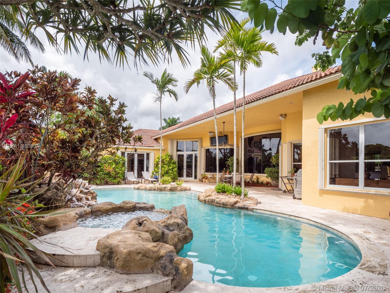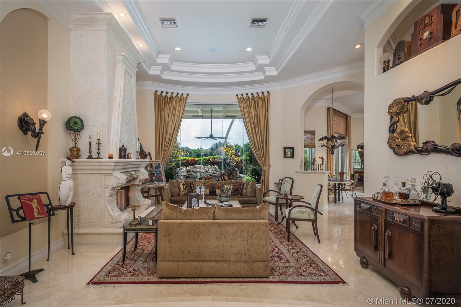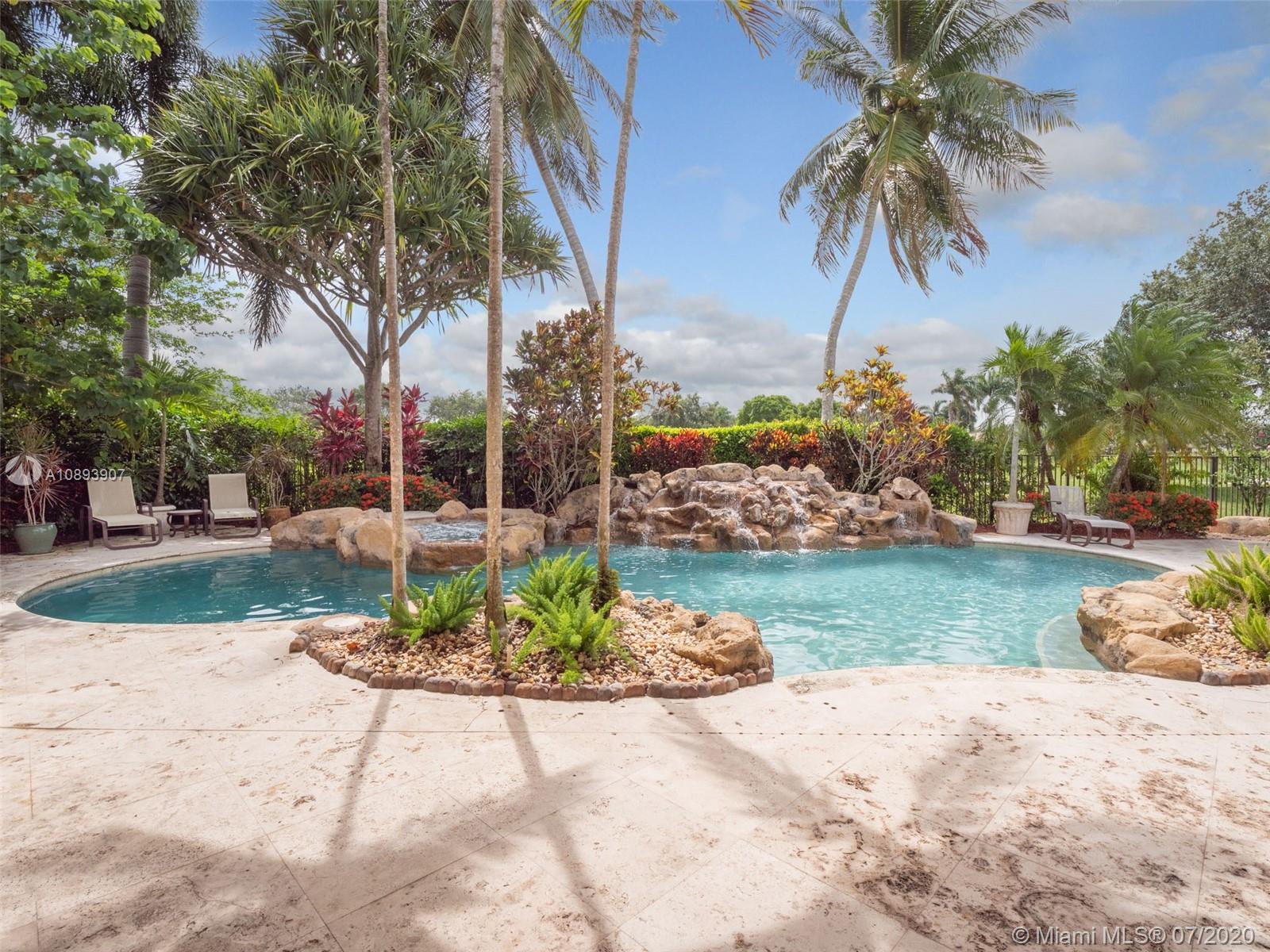 This elegant custom home sits majestically in the gated community of Provence at Weston Hills Country club. Spacious, distinctive Issa designed home. Backyard oasis with waterfall pool and travertine patio, fully fenced and privacy landscaped. Marble and wood flooring flow throughout. Decorative Fireplace wood burning in a formal living room. Gourmet kitchen with Miele Stainless steel appliances, double oven, center island, granite countertops with large walk-in pantry. Owners suite with wood flooring, tray ceilings, and private den for relaxation or second office. 4.5 renovated baths. Enjoy four additional bedrooms plus a playroom/billiard room with a wet bar and an office.