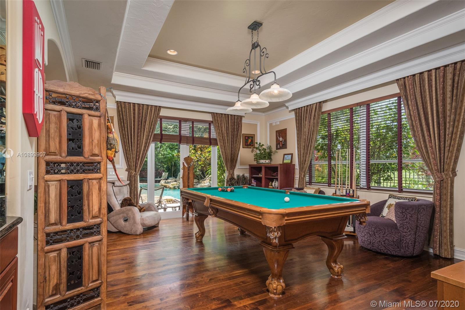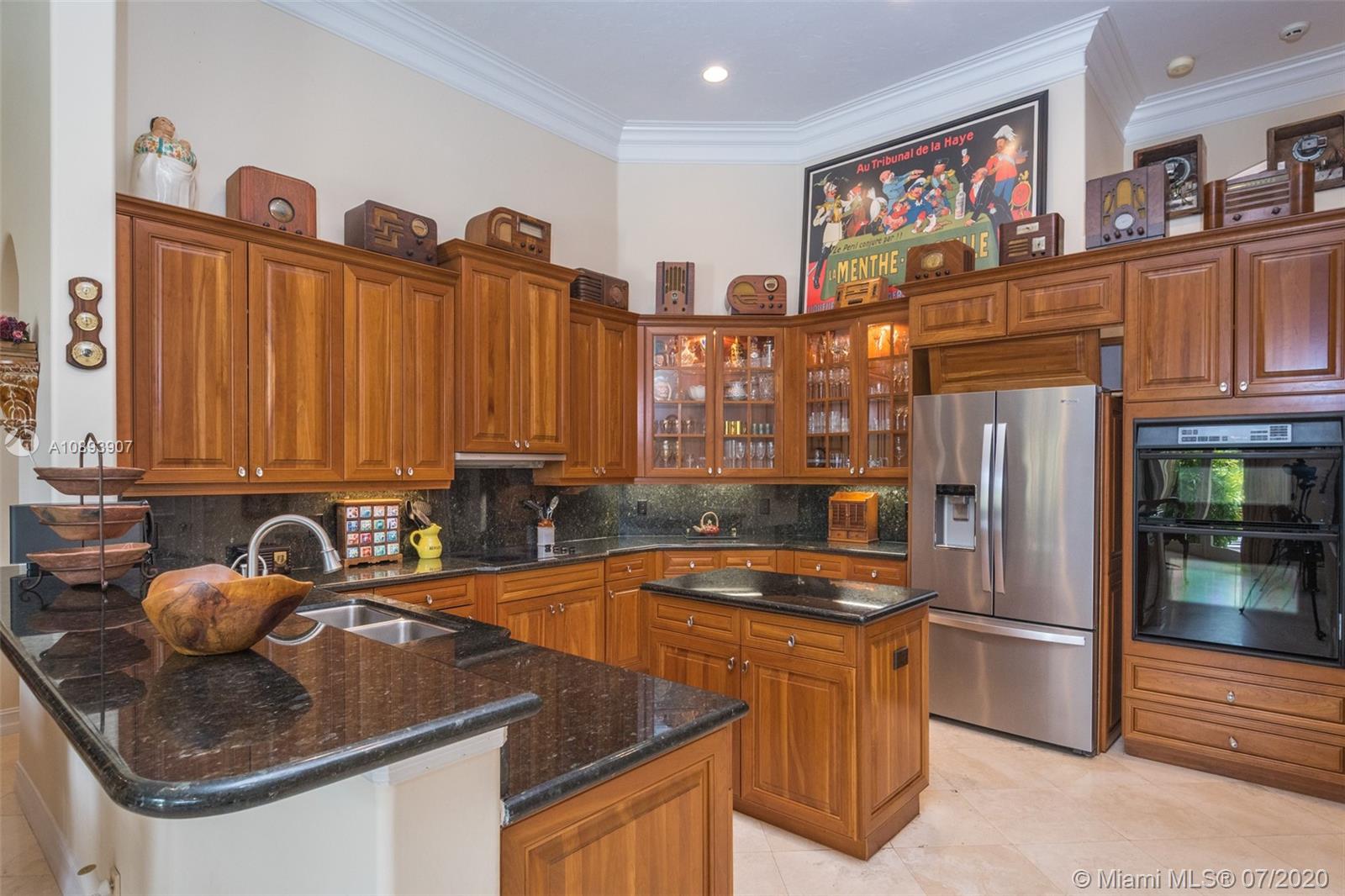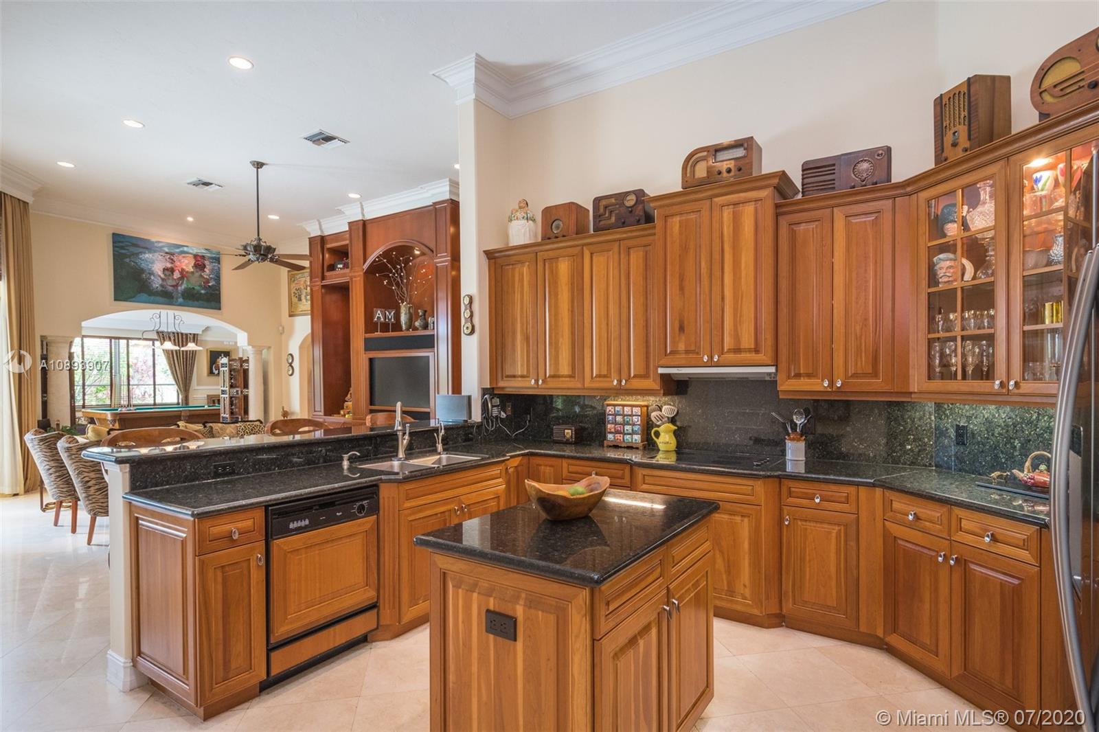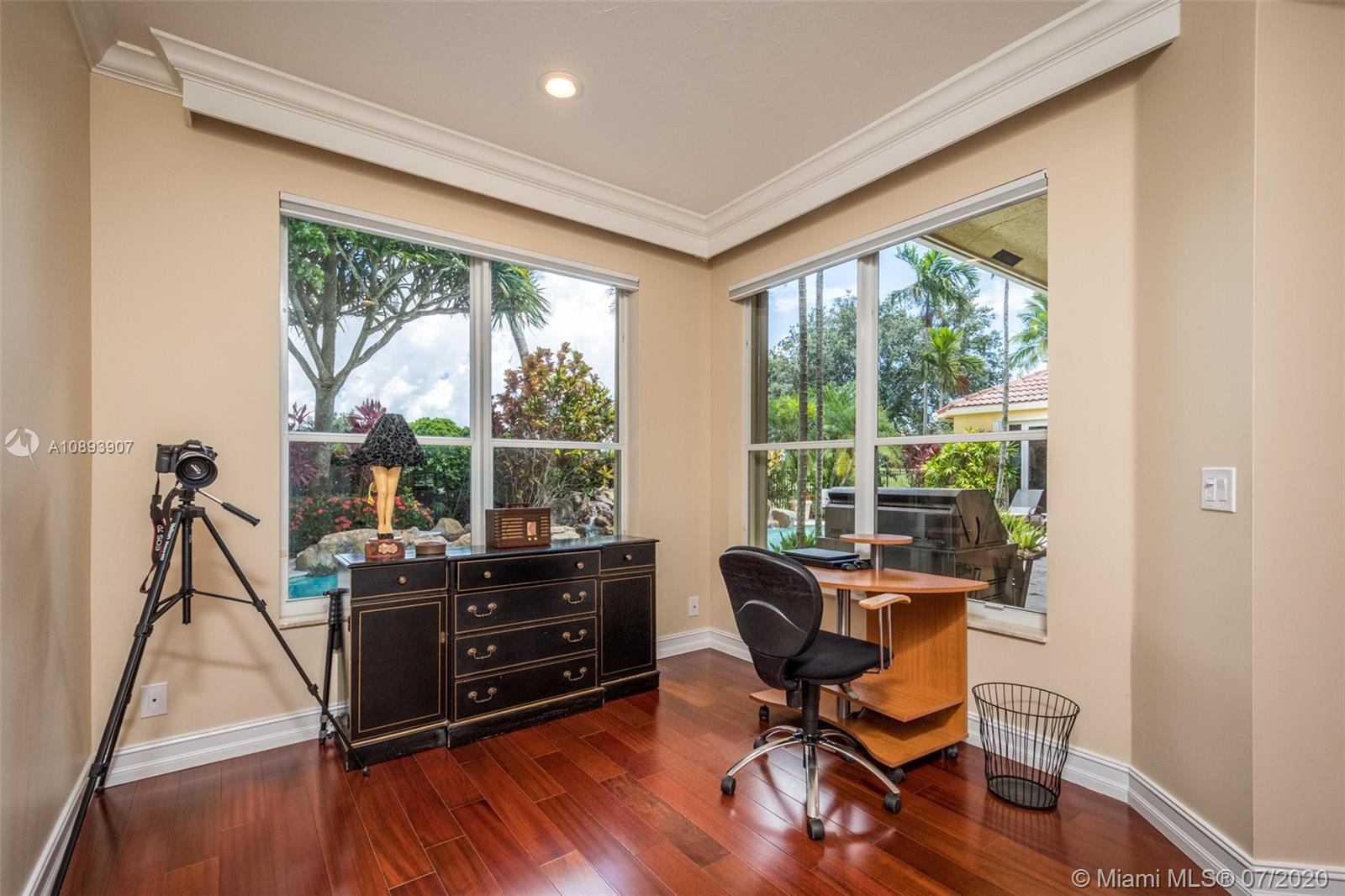 This elegant custom home sits majestically in the gated community of Provence at Weston Hills Country club. Spacious, distinctive Issa designed home. Backyard oasis with waterfall pool and travertine patio, fully fenced and privacy landscaped. Marble and wood flooring flow throughout. Decorative Fireplace wood burning in a formal living room. Gourmet kitchen with Miele Stainless steel appliances, double oven, center island, granite countertops with large walk-in pantry. Owners suite with wood flooring, tray ceilings, and private den for relaxation or second office. 4.5 renovated baths. Enjoy four additional bedrooms plus a playroom/billiard room with a wet bar and an office.