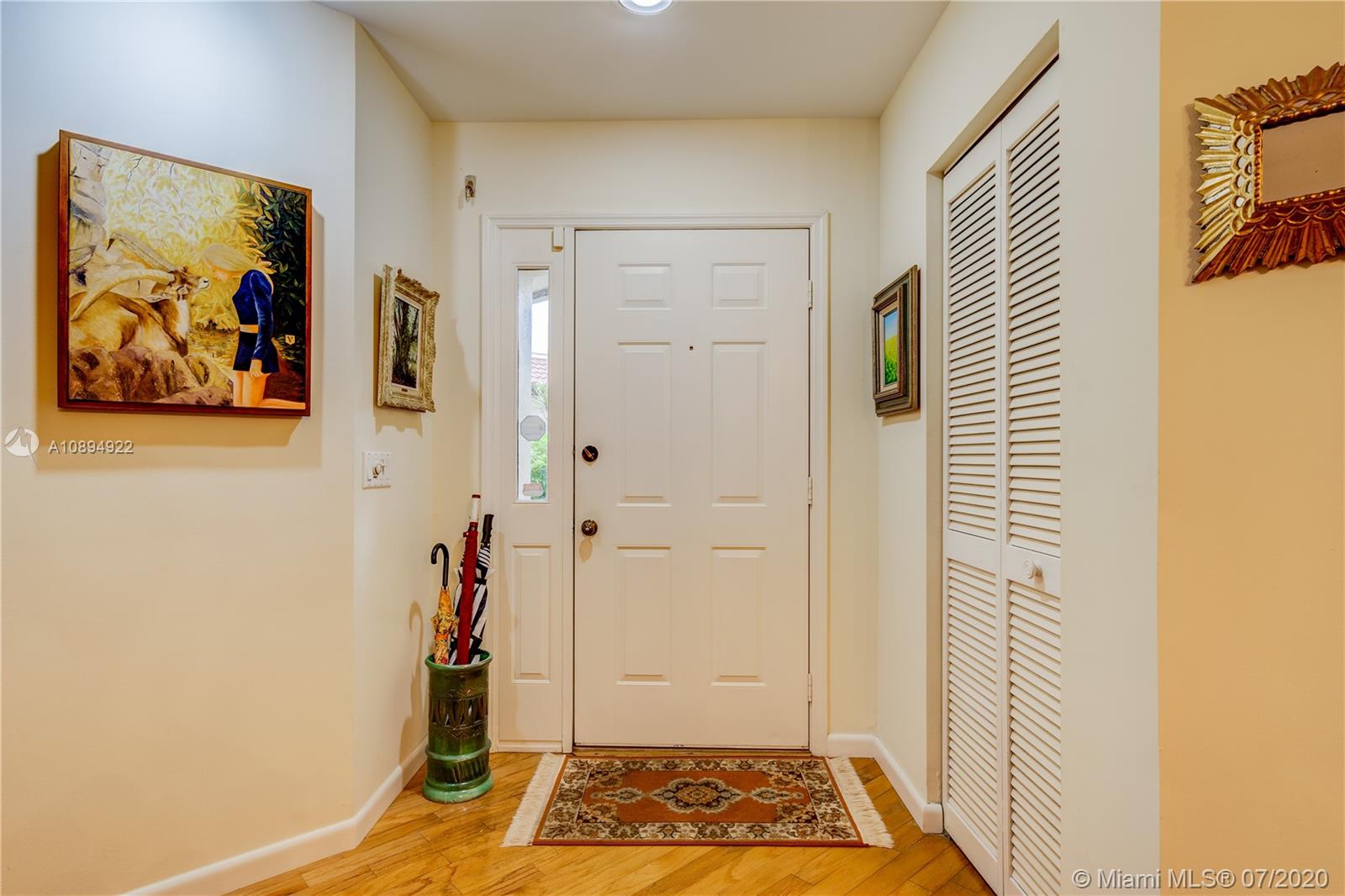 Doral Colony is located within prestigious Doral Estates. This gorgeous townhome features 4 bedrooms, 3 bathrooms. Master suite downstairs ,master bath with double sink and separate tub & shower, open floor plan with high ceilings looking at a very private screened patio.A Bonus in this property is an elevator to the second floor for your comfort. Beautiful wood flooring, built in closets, remodeled kitchen with granite tops,stainless steel appls. breakfast area , hurricane shutters and much more. This beautifly maintained community offers 24 hrs private security patrol, a swimming pool and tennis courts for it’s residents. Next to the PGA golf course . This is a golfer’s paradise