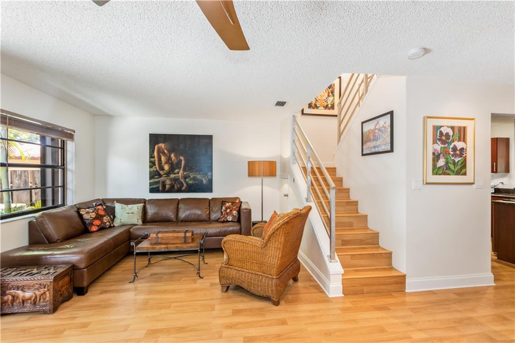 Beautiful Townhouse with 2 bedroom, 2.5 bath plus bonus room/office/dining area centrally located between Wilton Manors and Downtown. Double primary suites. Washer/Dryer in unit. Private fenced outdoor tiled patio space. Second floor of unit overlooks the pool area. Tropical landscaping and park like setting surrounding a lovely pond. Pet friendly community - with no pet restrictions. Two parking spaces. On-site pool, clubhouse, and gym. Minutes to Wilton Drive, Las Olas Blvd and the Beaches. Healthy reserves - eligible for FHA & VA loans. Assn responsible for roof. Hurricane shutters for all windows. Water Heater prior to 2011. LG Washer/Dryer 2017. AC 2019.