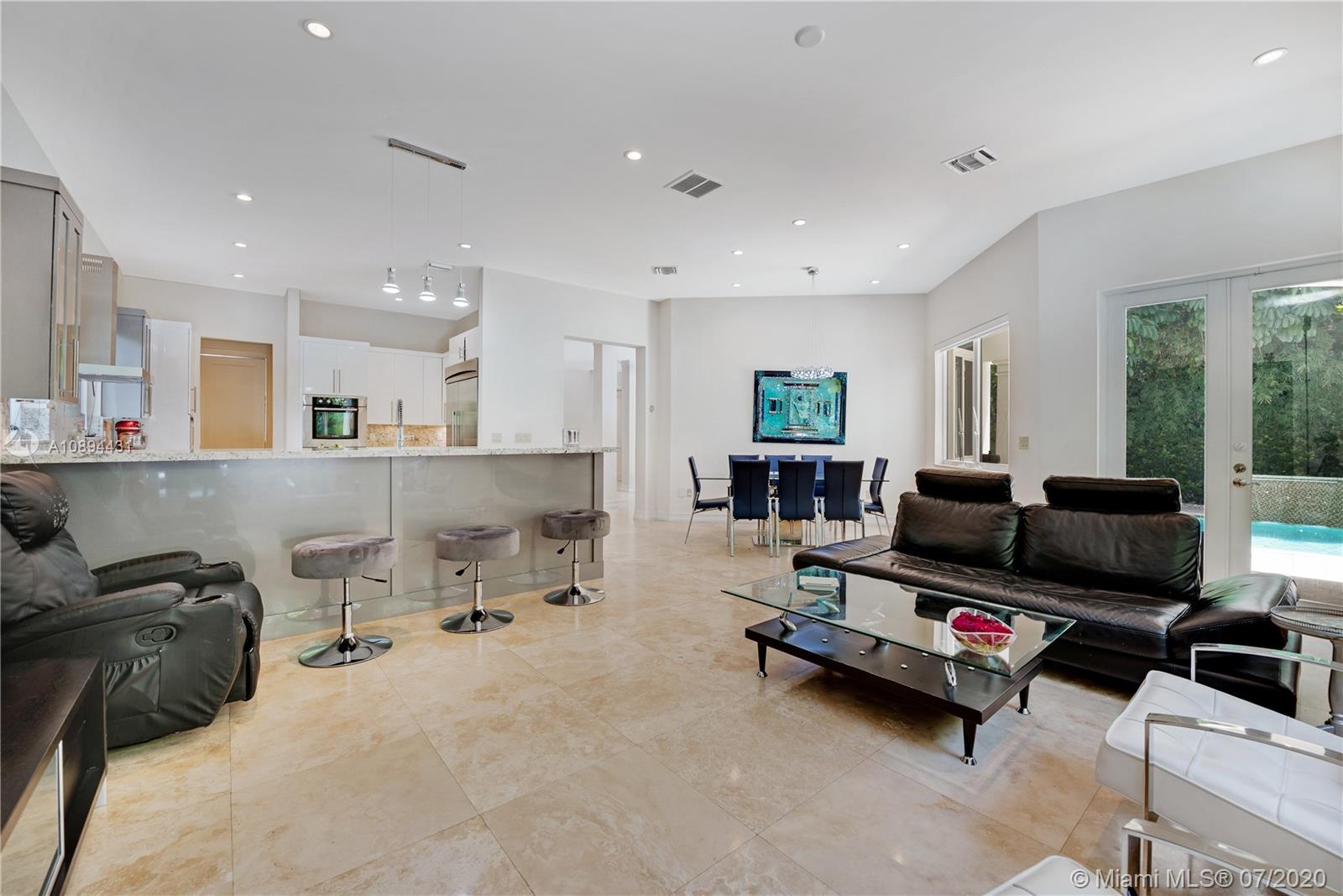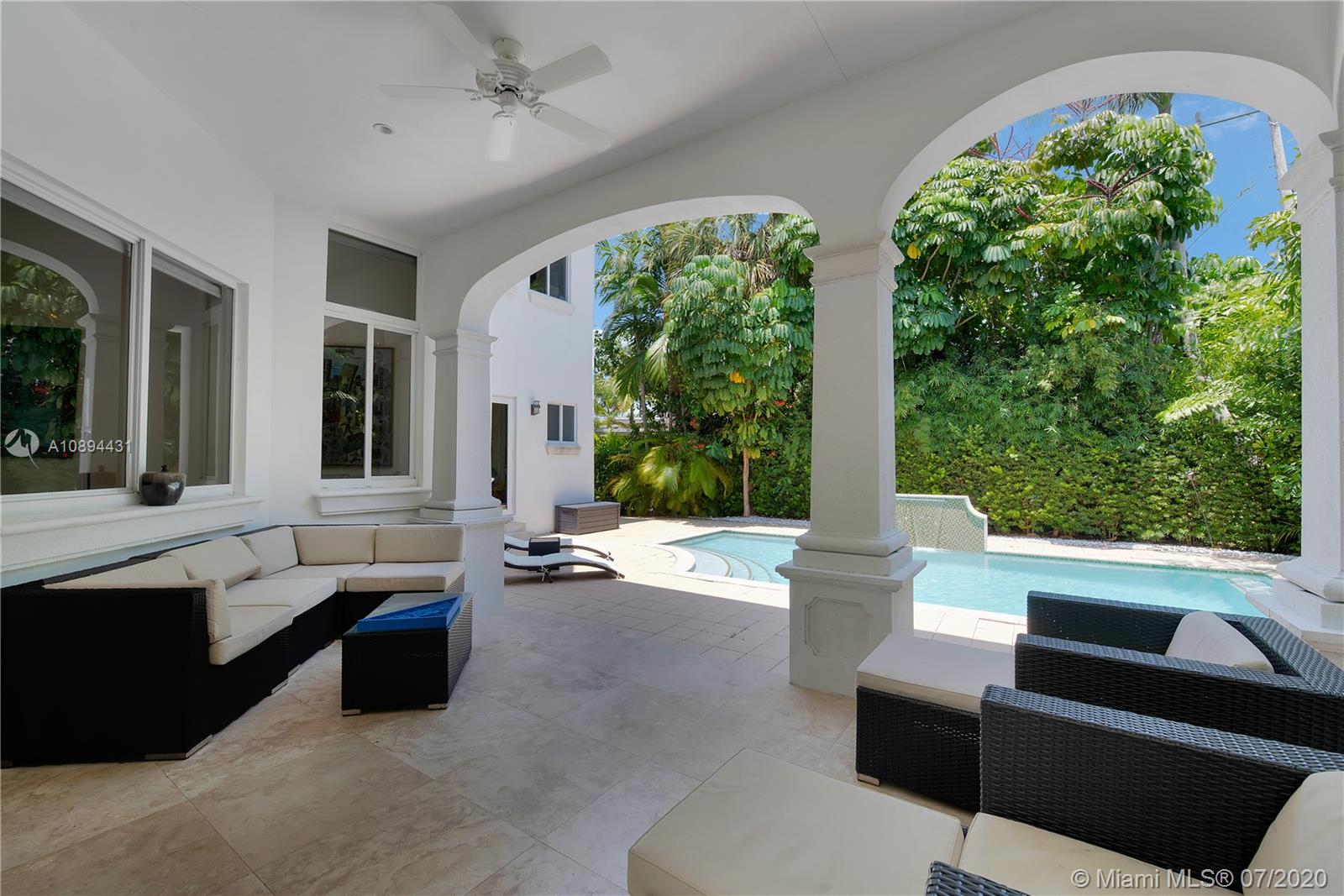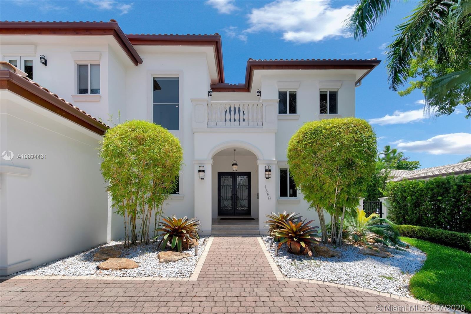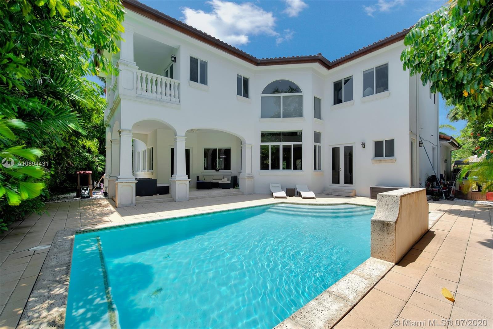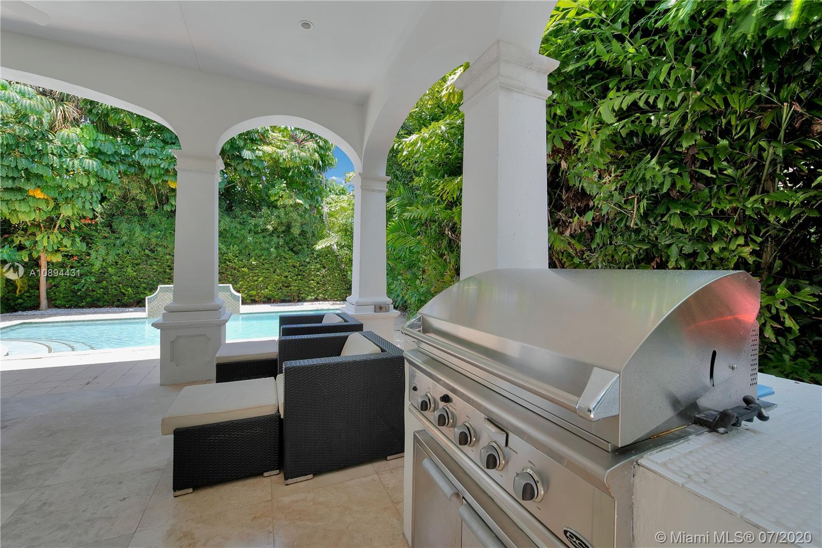 Stunning Modern Mediterranean residence perfectly located on prestigious Bay Harbor Islands. Please click on 3D tour to see for yourself. A Magnificent footprint w 4bd up/2 down,each w ensuite bath. Abundance of natural light thruout all living & entertaining spaces. New eat-in kitchen w adjacent family rm (Bosch range & ovens/Thermador refrigr/freezer) large pantry. Master suite w terrace, 2 enormous walk-in closets/luxurious bath.Expansive covered patio w summer kitchen & wood burning pizza oven made by world renowned Artist,heated pool w waterfall & private patio w mature trees.Elegant formal dining,dramatic living rm w double volume ceilings, 2car gar+storage, all impact window/doors, sep laundry rm. A+rated school, houses of worship, beaches, Bal Harbour Shops right down the street!