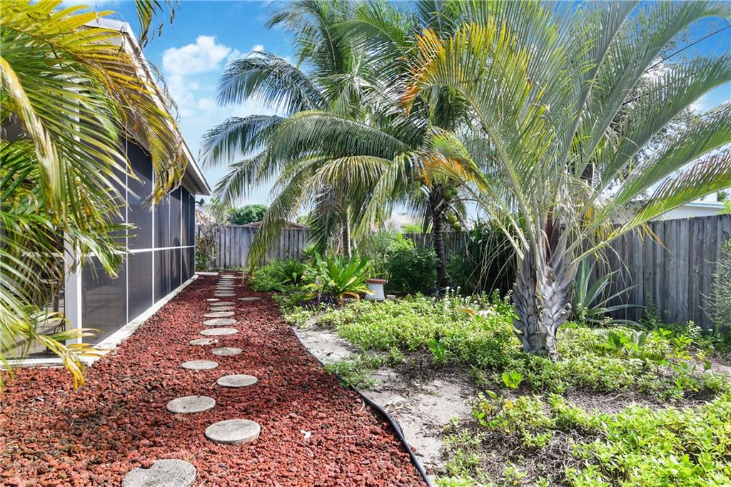 Lovingly maintained single family home on a cul-de-sac. Eat-in updated kitchen with new appliances and large pantry, spacious living room, bedrooms with walk-in closets, updated baths. Converted garage can be third bedroom or office. New hot water heater to be installed, Rheem A/C, updated electric, new pavers in driveway. Very large screened porch with travertine overlooking lush gardens, fenced property. Fully shuttered, owner receiving mitigation insurance discount. Great location conveniently located near wonderful shopping, dining and near major highways and transportation.