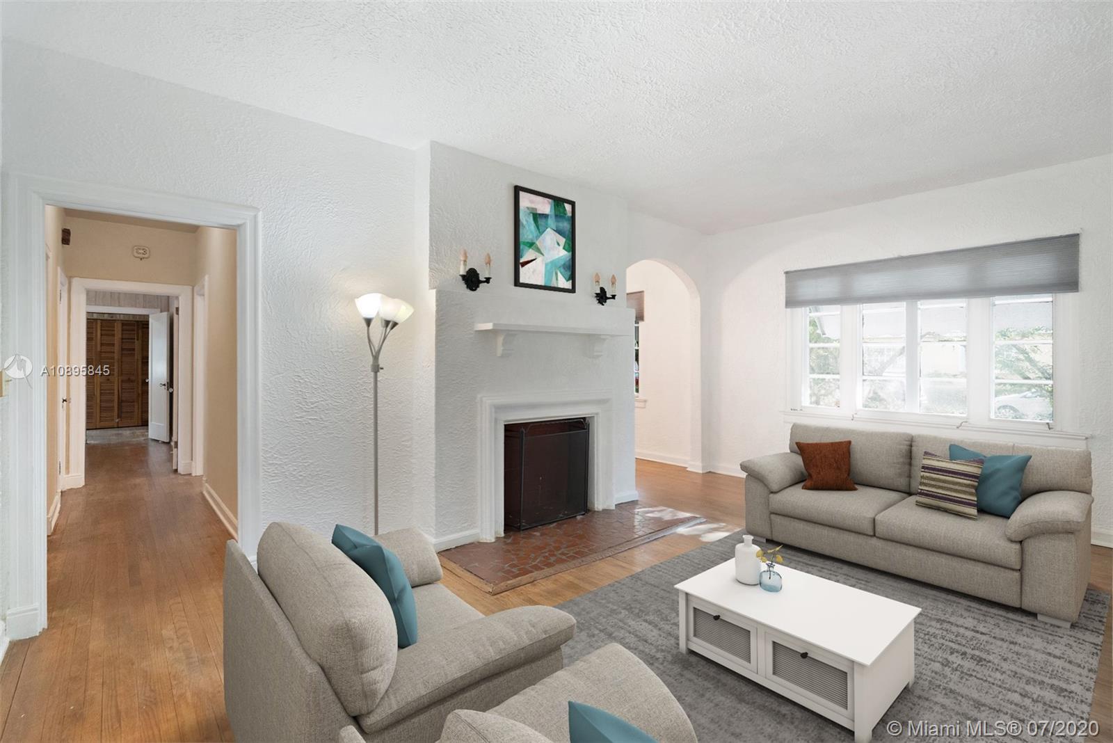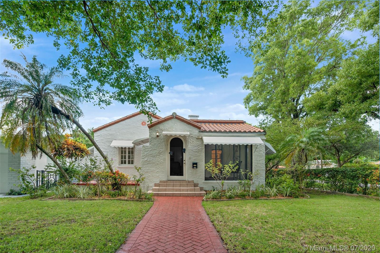 On a quiet tree-lined street in the heart of Coral Gables, you’ll find this charming 1925 Old Spanish. This architectural gem is located in an ideal central location, walking distance to shops & cafes at Merrick Park & Miracle Mile. The classic design features a formal living room, anchored by an elegant fireplace, that leads to the formal dining room. Timeless features include original hardwood floors, rounded archways & a lovely screened-in front porch with original tilework & ironwork. Enjoy a spacious & light-filled kitchen. Plenty of storage w/ large laundry room + one car garage. Newer roof (2010). Imagine sitting on the relaxing front porch enjoying the breeze... Come live a quiet, yet urban lifestyle in the heart of “The City Beautiful”.