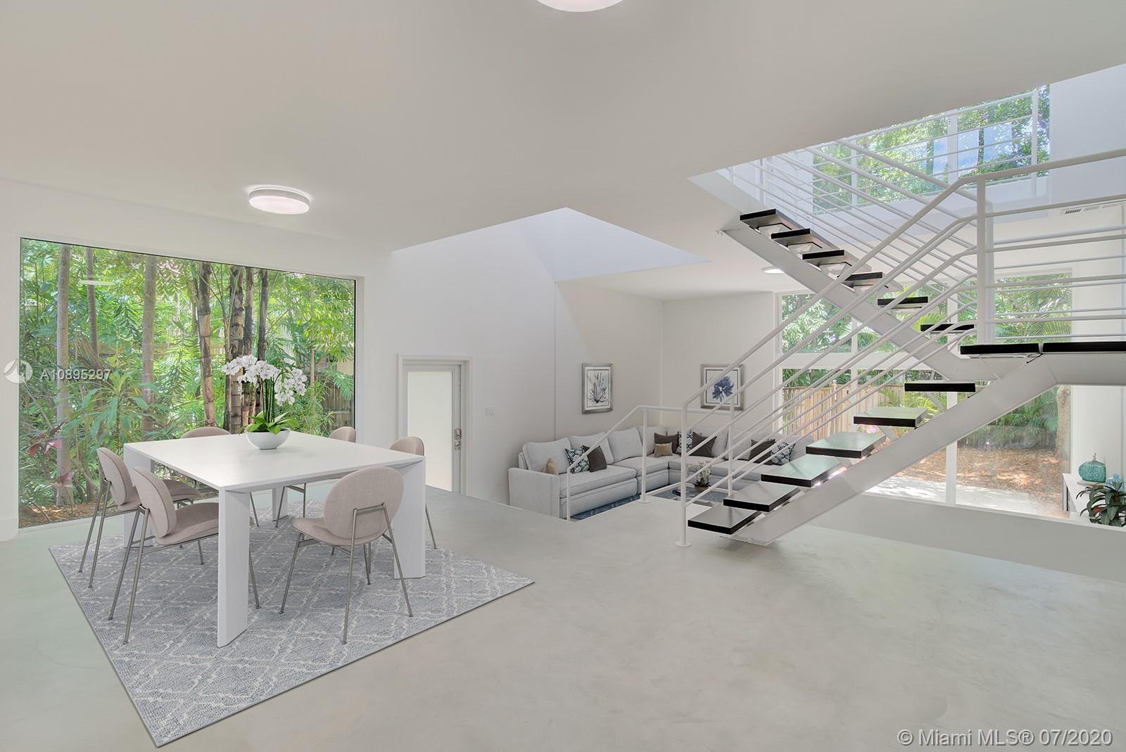 Stunning, open-concept contemporary townhouse with an unbeatable location in center Coconut Grove! Ideally situated only a few blocks away from the village shops & restaurants, bayside parks, and marinas! Light-filled living spaces w/ soaring 24’ ceilings, walls of glass, gorgeous new bathrooms & new polished concrete floors. Exceptional outdoor areas w/ private backyard and 400 sq. ft. roof deck. 2-car garage. Rare opportunity to live at Apogee, a 10-unit townhouse community set beneath a lush tree canopy.