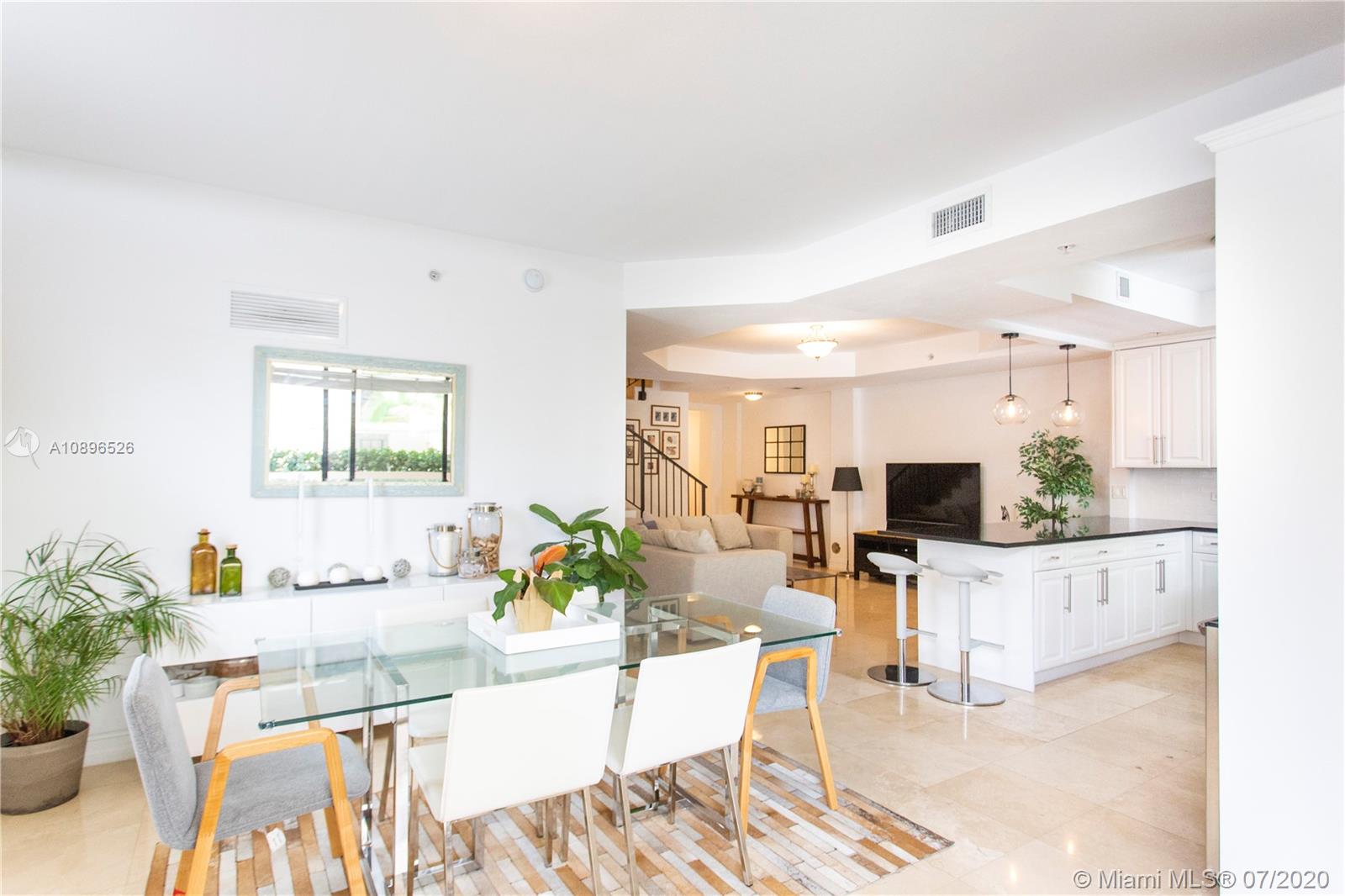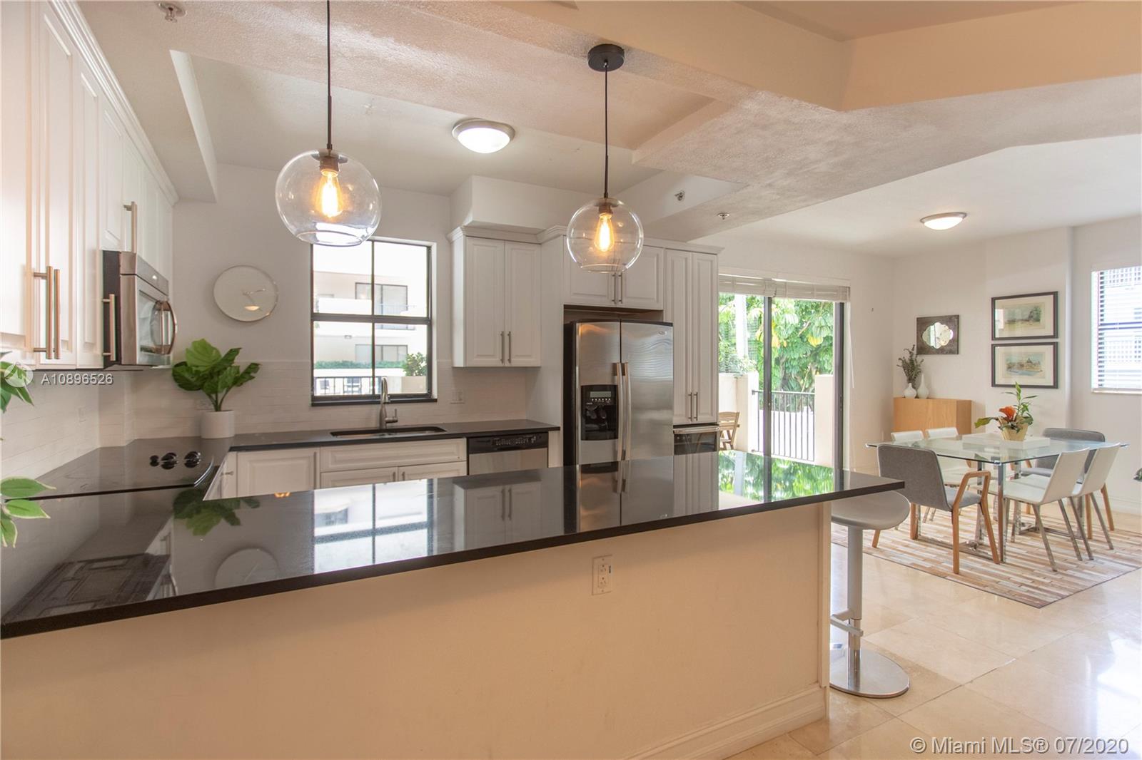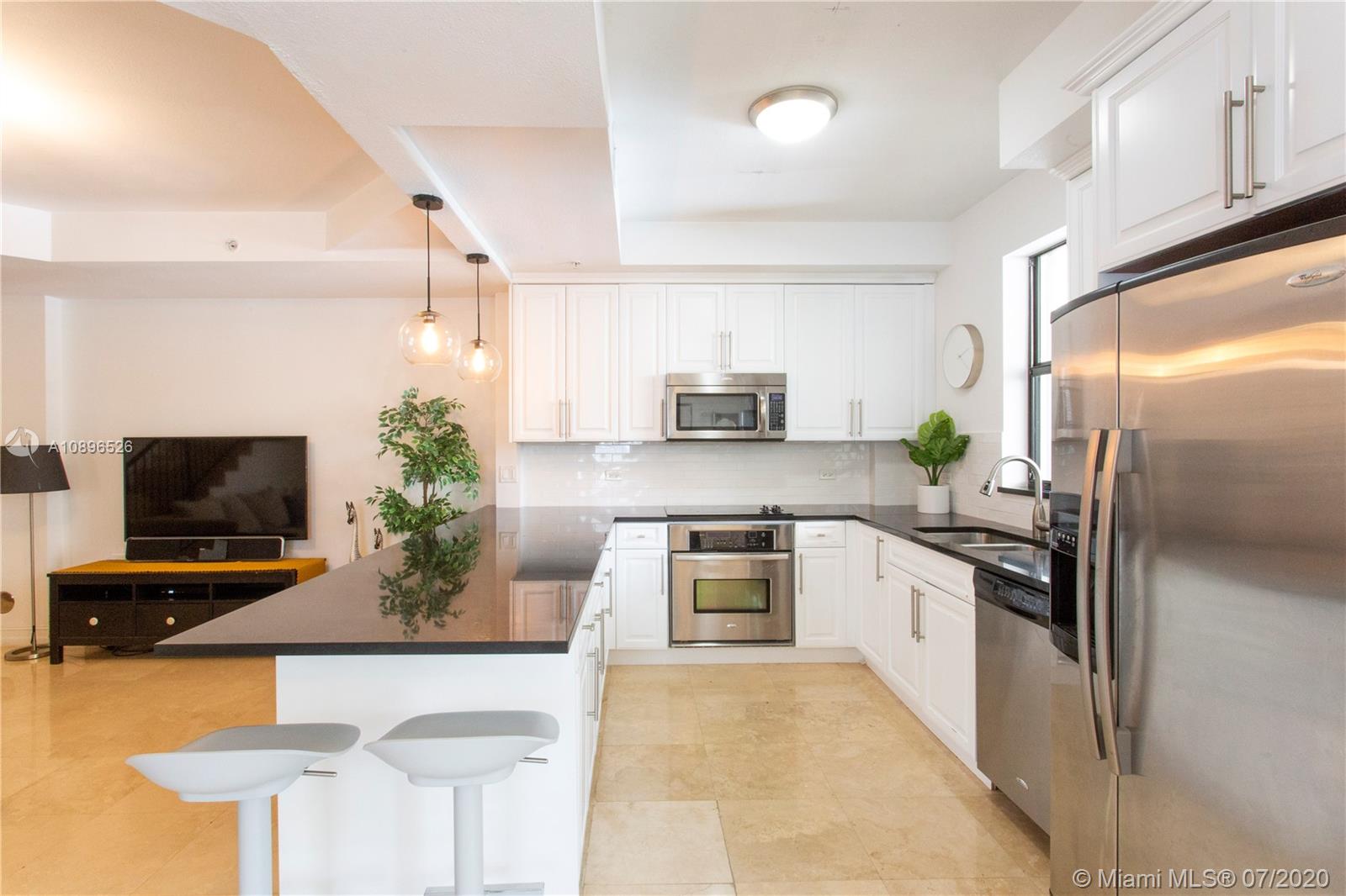 Stunning townhouse in the heart of Coral Gables. This beautiful two-story property features 3 beds and 3 full baths with beautiful marble floors and two oversized terraces, one on each floor. The kitchen has been fully upgraded with beautiful white cabinets, granite countertops, and white tile backsplash. The Master bedroom has its own private oversized terrace and a master bathroom with double sinks, jacuzzi, and a separate shower. Impact doors and windows. Security access through the lobby. Two safe and secure underground tandem parking spaces. Bulosng amenities include pool, Fitness Center, and Private Office with free internet for use of owners. Close to shops, parks, schools, and restaurants. Don't miss out on this outstanding opportunity!