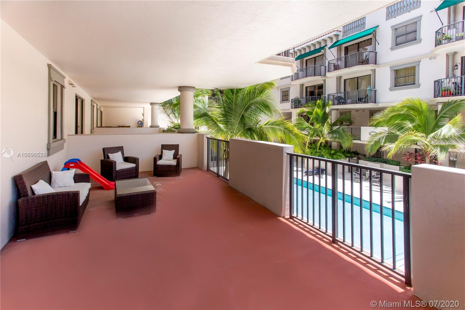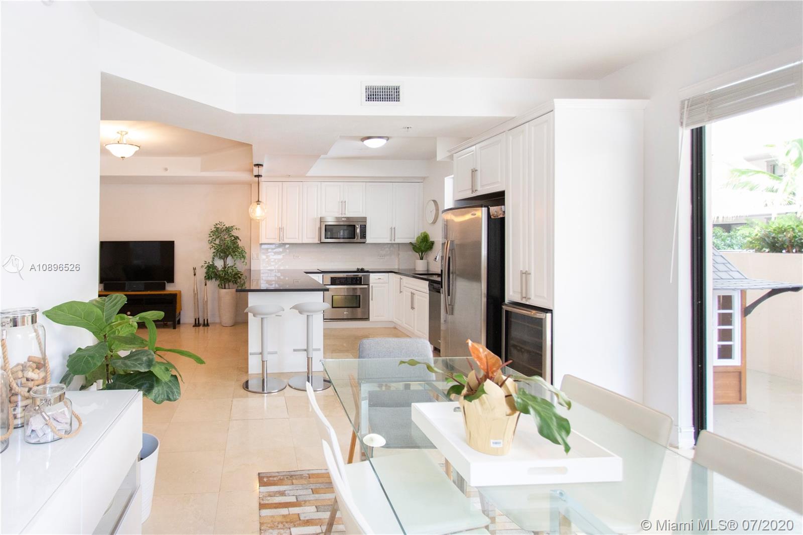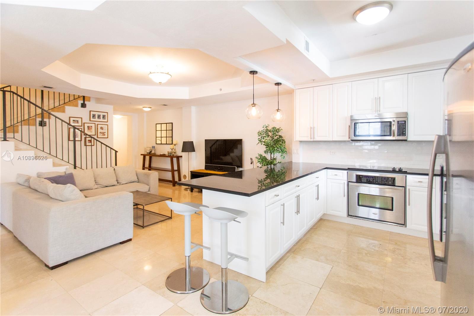 Stunning townhouse in the heart of Coral Gables. This beautiful two-story property features 3 beds and 3 full baths with beautiful marble floors and two oversized terraces, one on each floor. The kitchen has been fully upgraded with beautiful white cabinets, granite countertops, and white tile backsplash. The Master bedroom has its own private oversized terrace and a master bathroom with double sinks, jacuzzi, and a separate shower. Impact doors and windows. Security access through the lobby. Two safe and secure underground tandem parking spaces. Bulosng amenities include pool, Fitness Center, and Private Office with free internet for use of owners. Close to shops, parks, schools, and restaurants. Don't miss out on this outstanding opportunity!