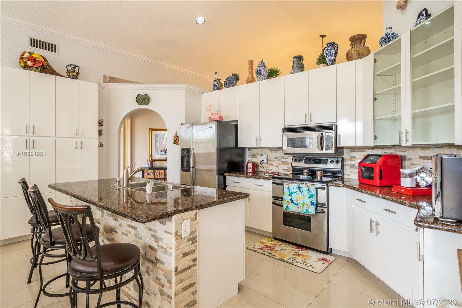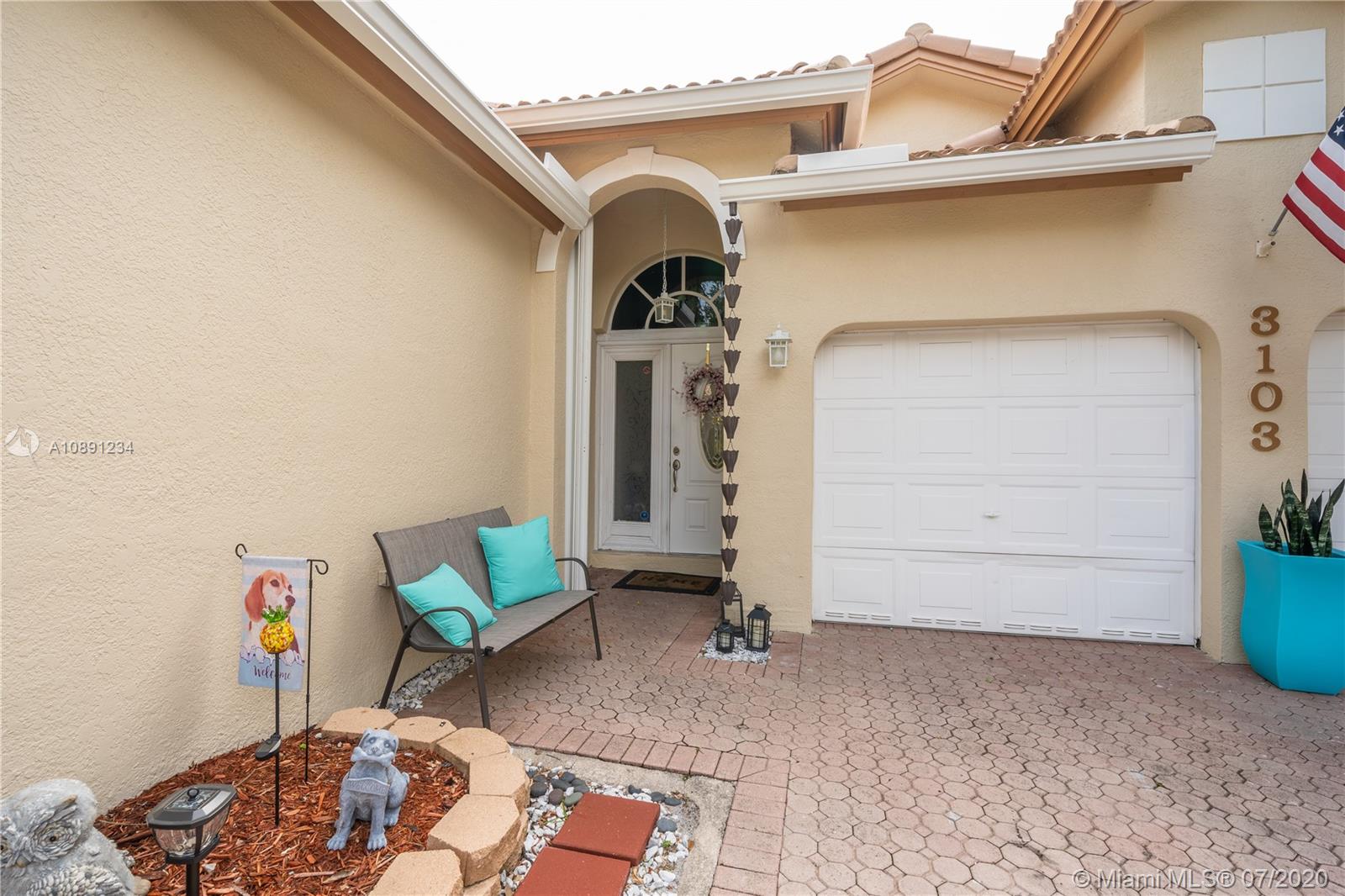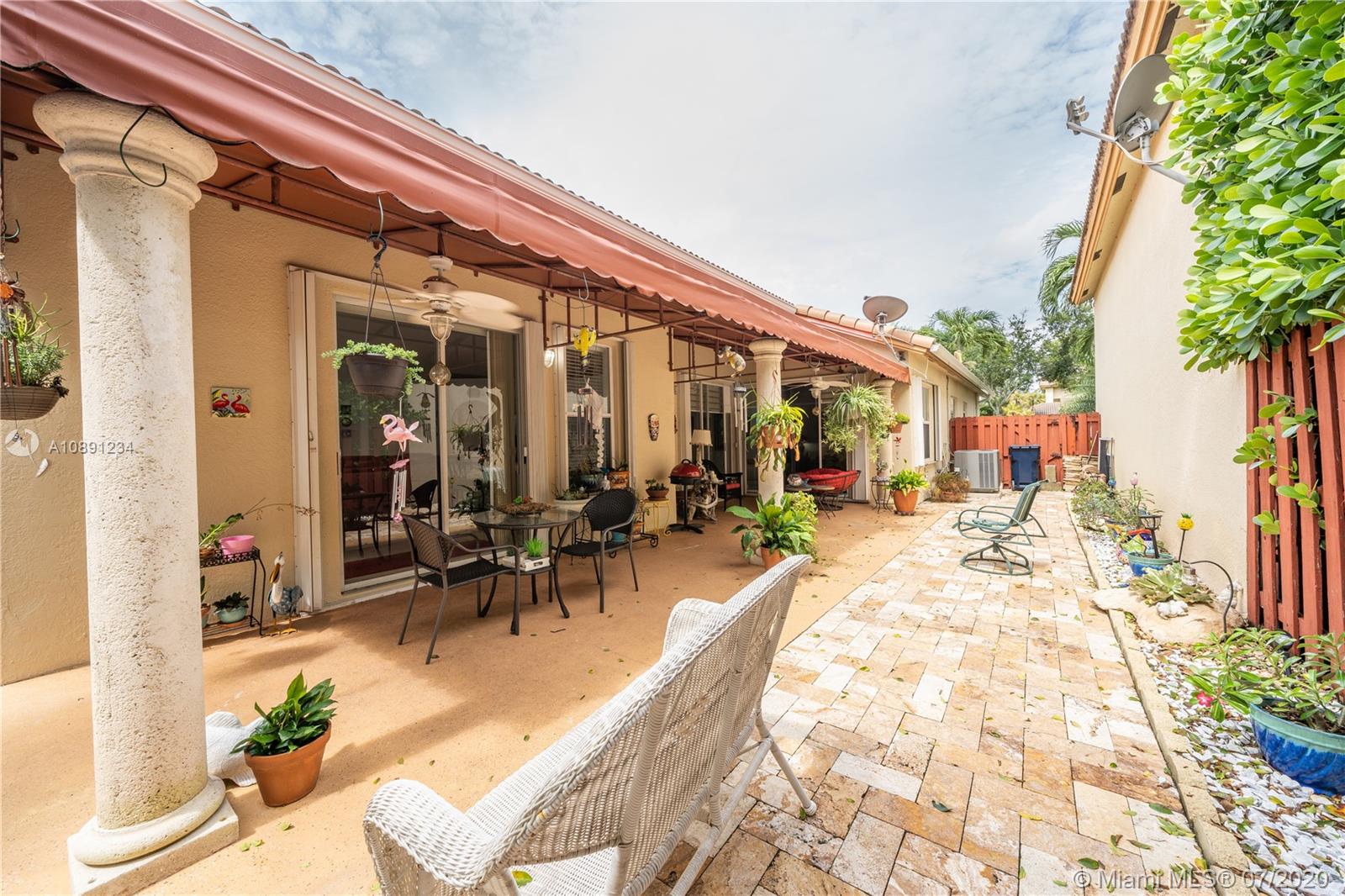 One Story Single Family Home in Costa Verde with Double Garage, this home offers open space kitchen and family area with granite counter tops, and stainless steel appliances, formal dinning room and separate living room area with beautiful porcelain floors , lots of windows and natural light with Vaulted ceiling 3 bedrooms with 2 full baths Spacious lot 5,100 Sqft. Enjoy your Patio with awning and concrete and bricks floors , all new fence . Costa verde is a family oriented neighborhood with 24 hrs guard entrance, and community pool and kids playground . Brand new roof 6/25/2020, full accordion shutters in all windows, Generator Guardian Quiet power system, New water heater