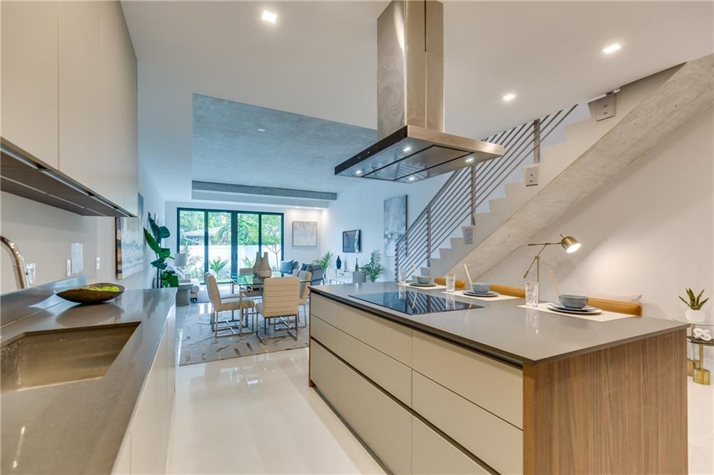 Two Large Master Suites and spacious living areas complement this newly constructed warm modern townhome. Enjoy an open floorplan with twelve-foot high polished concrete ceilings, 48 x 24 Porcelain flooring, solid wood doors, recessed lighting, Italian custom-built kitchen by Italkraft, cooking island, quartz countertops, and high-end stainless-steel appliances. Plenty of light provided by nine-foot custom impact windows and skylights. Each master bathroom has a large rainfall shower and luxurious vanities. Enjoy large private master balconies and a backyard with space for an outdoor kitchen or superb botanical garden. Moments away from shops on Las Olas, parks and downtown offices and entertainment. No HOA fees.
