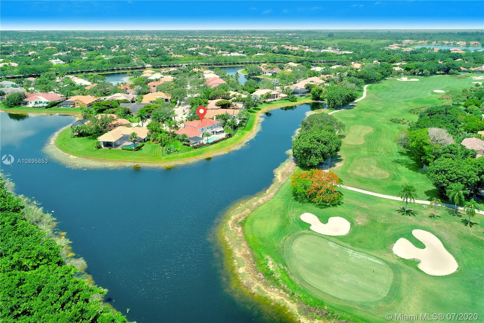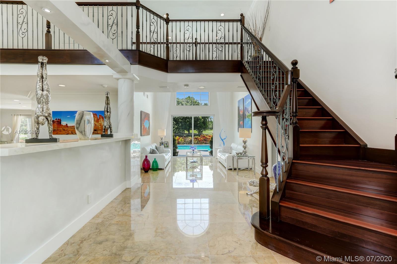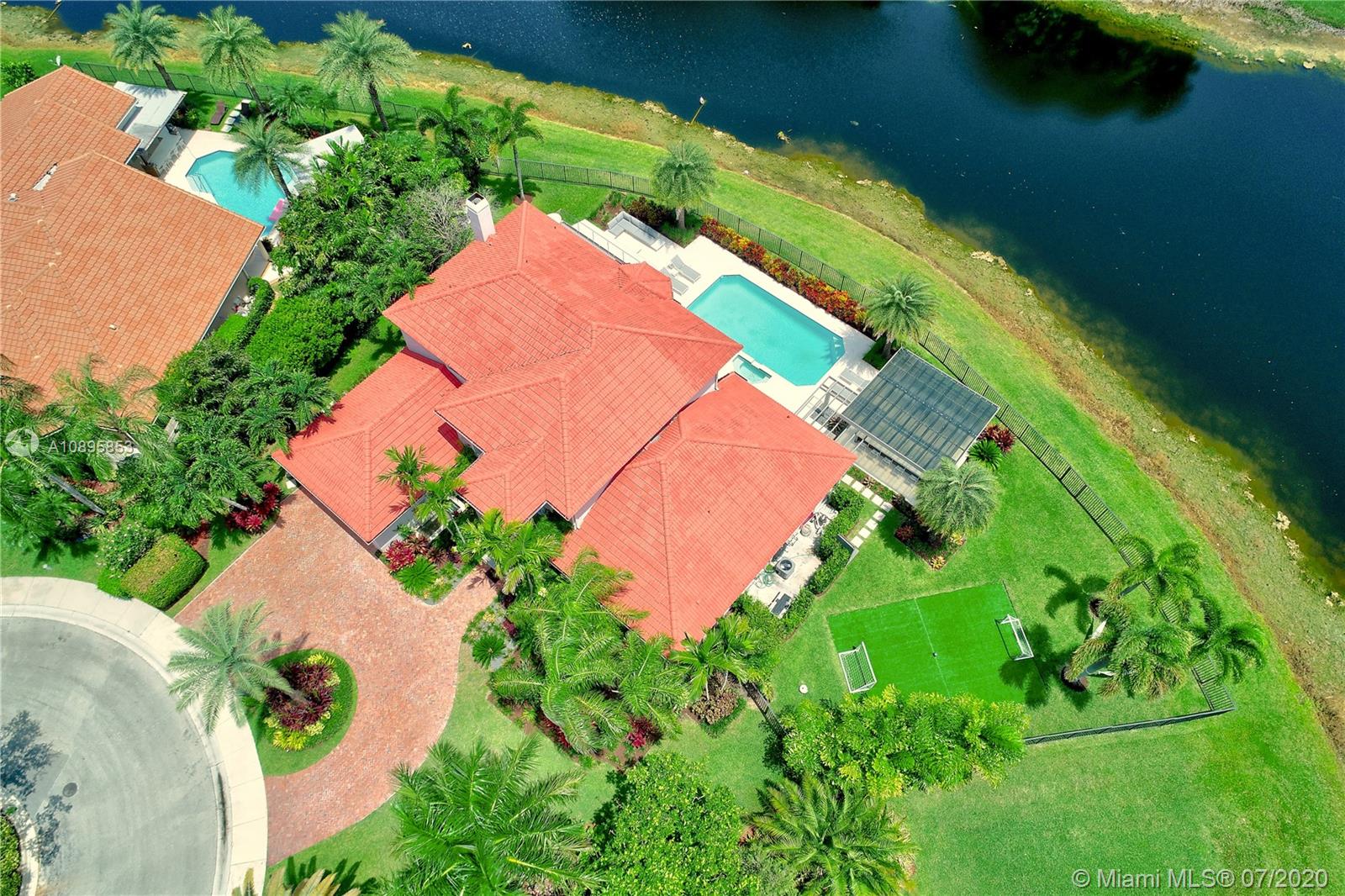 Very beautiful & functional home on extraordinary, magnificent & oversized (20191 sq ft) point water & golf lot w/ long & expansive views of lake & 14th hole. This lovingly maintained home sits elegantly at end of a cul de sac with circular paver driveway. 5 bedrooms/ den/office or 6 bedrooms/office, intelligent toilets, Master upstairs w/ office. This house is perfect for a growing family with separate spaces, large bedrms & great yard w/ privacy. Brand new kitchen and bathrooms!! Call listing agent.