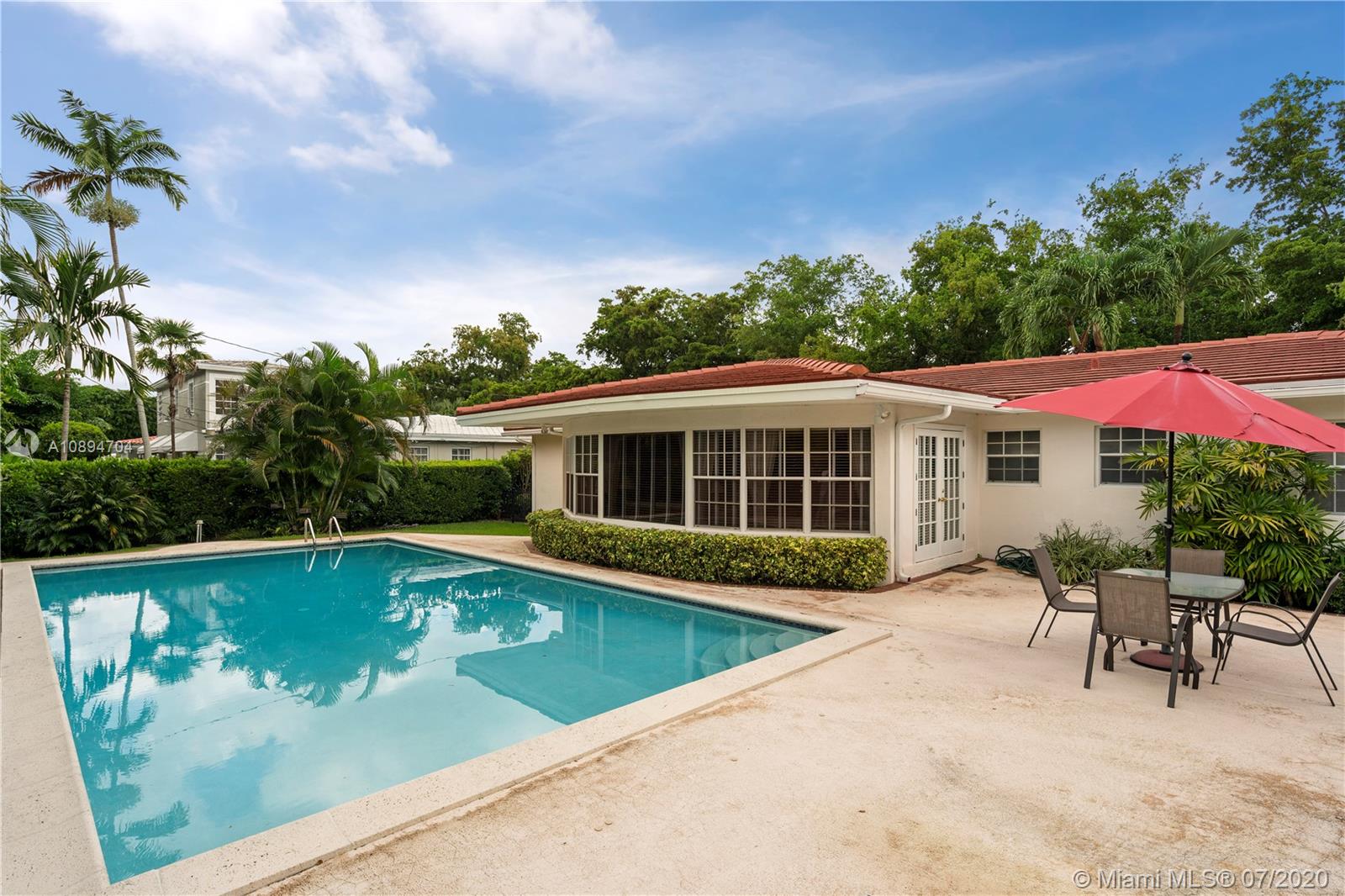 Mid century charmer (Riviera Section) centrally located home on a corner 12,350 sq ft lot, located on a tree lined street across from the University of Miami intersecting with San Amaro Drive. Bright and airy home featuring living and florida room in an inviting open space with separate dining room. Travertine floors throughout. Living area has a beautiful ceiling molding detail, florida room has an expanse of windows overlooking inviting pool and all the greenery. 4 yr old roof and a new air conditioning and has updated bathrooms and kitchen. A large back yard with great potential for growth. Nice landscaping frame the large pool ideal for kids and family to enjoy. It is close to South Miami,Sunset, Downtown Coral Gables, Merrick Park, airport and major highways.