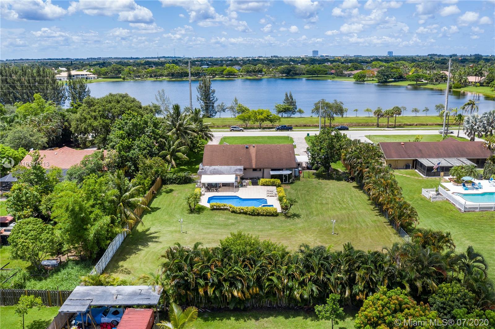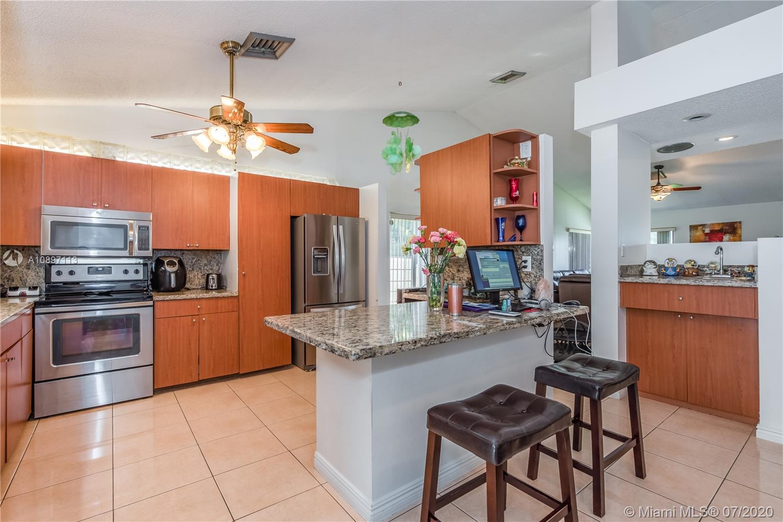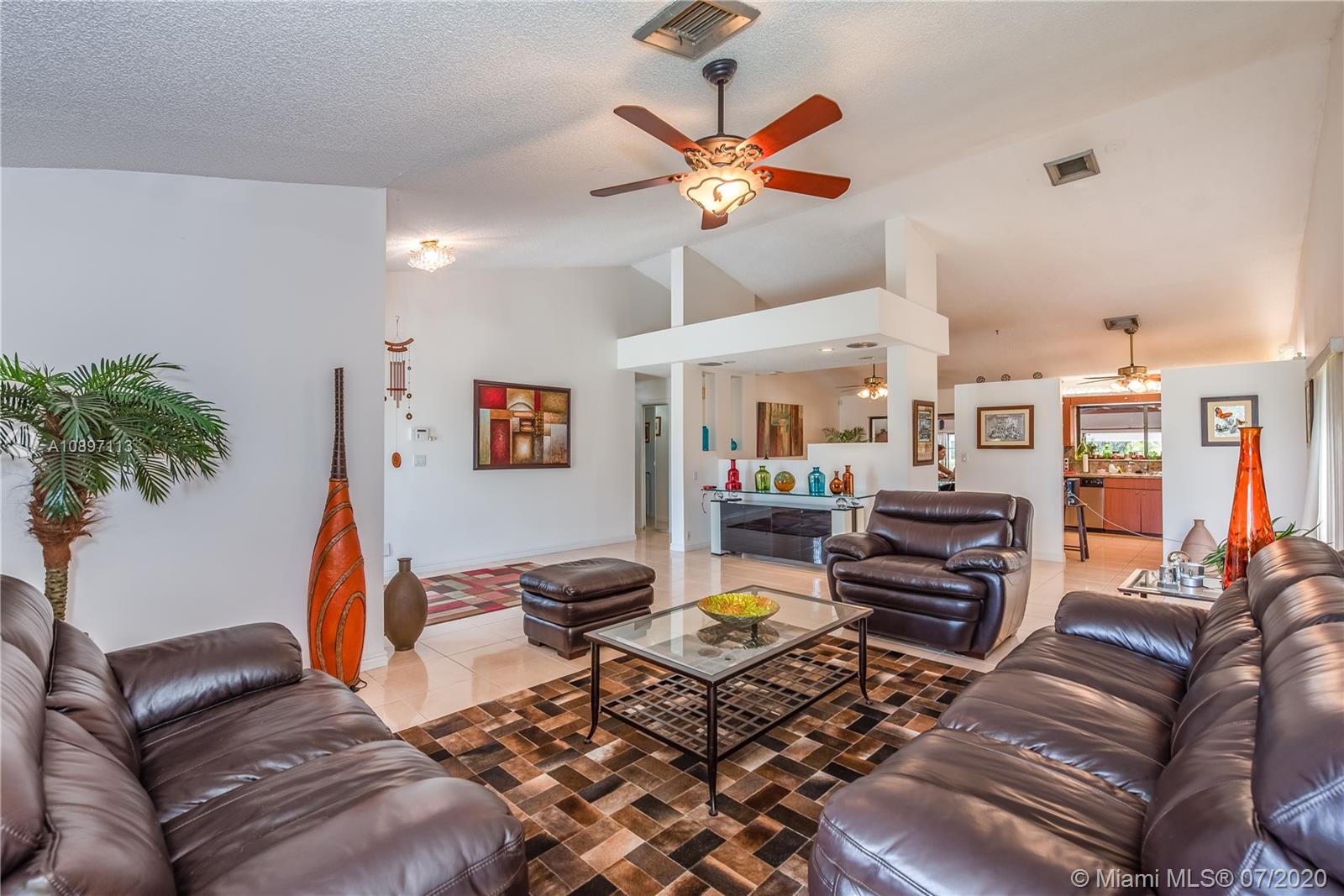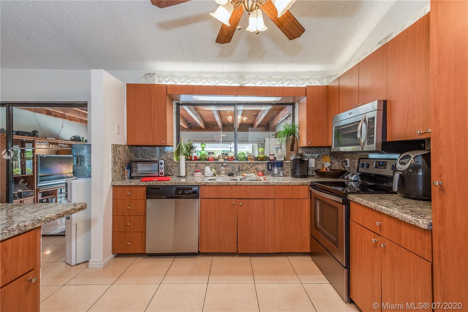 Great house with plenty of land for a homeowner that enjoy outdoor living. Home is sitting on a builder's acre boasting a tranquil pool with lush green everywhere with spacious areas for entertaining. Open and bright living and dining area with high ceilings. 3bed/2bath + an additional room from converted garage. Ceramic tile throughout living areas. New stainless steel appliances and granite kitchen counters tops. New A/C. Large circular drive way with plenty of room for lots of cars. Deep well. New pool pump. Hurricane shutters. Extra insulation. Prime Davie location. No HOA. A rated schools. Just need your personal touch to be an amazing place to call home!!!
