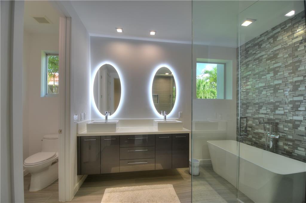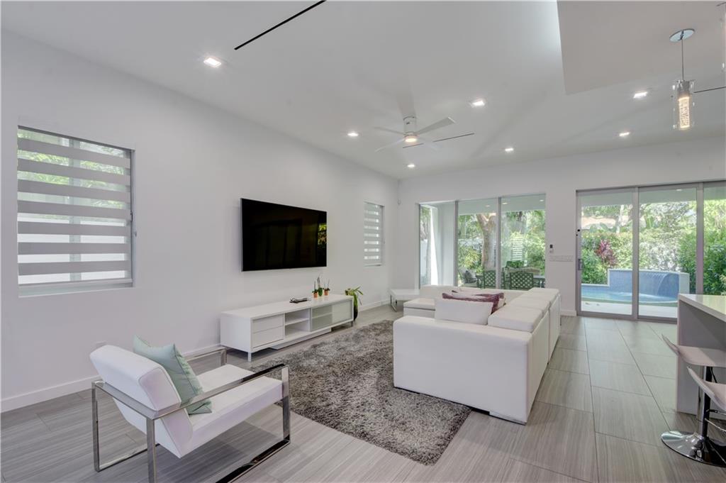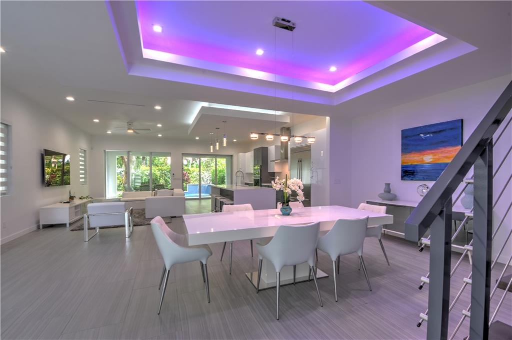 Stunning, modern Smart Home with impeccable finishes! All bedrooms are en-suite w/walk in closets & 2 have private balconies. Lg landing at the top of the stairs - perfect for an office or sitting area. Features include: custom blinds, impact windows, porcelain & wood flooring, 2 a/c units with linear diffusers, solid core doors, contemporary floating staircase, 2 car garage, built in bar area and Lutron LED lighting. The kitchen features quartz counter tops, custom quality cabinets, Jenn-Air appl & a cooking island w/counter seating. Enjoy the outdoors w/ a large covered patio, private splash pool w/waterfall & lush landscaping. Great location w/expansive views of Holiday Park, close to shopping, restaurants, beach & the airport. An amazing home to call your own!