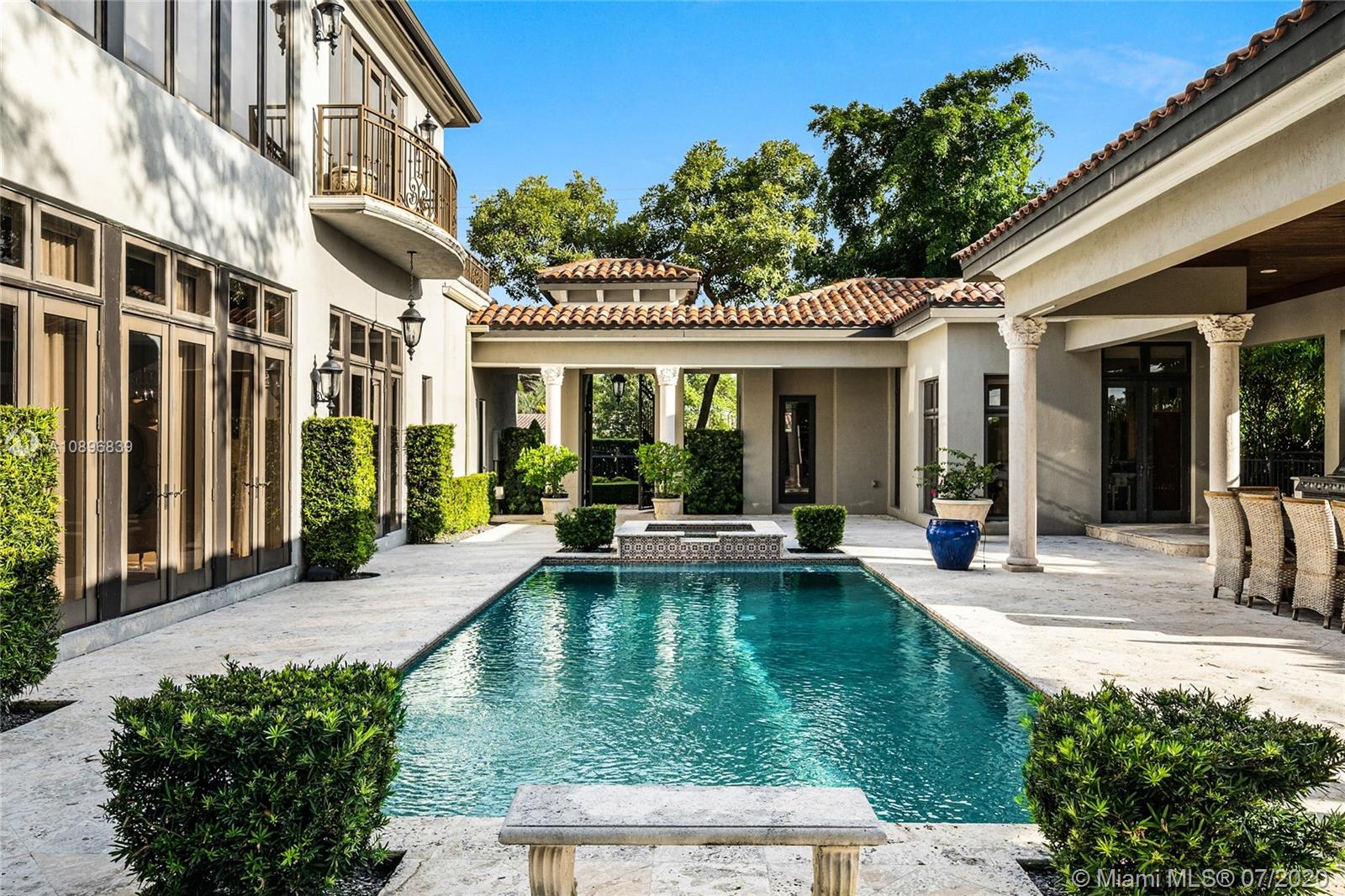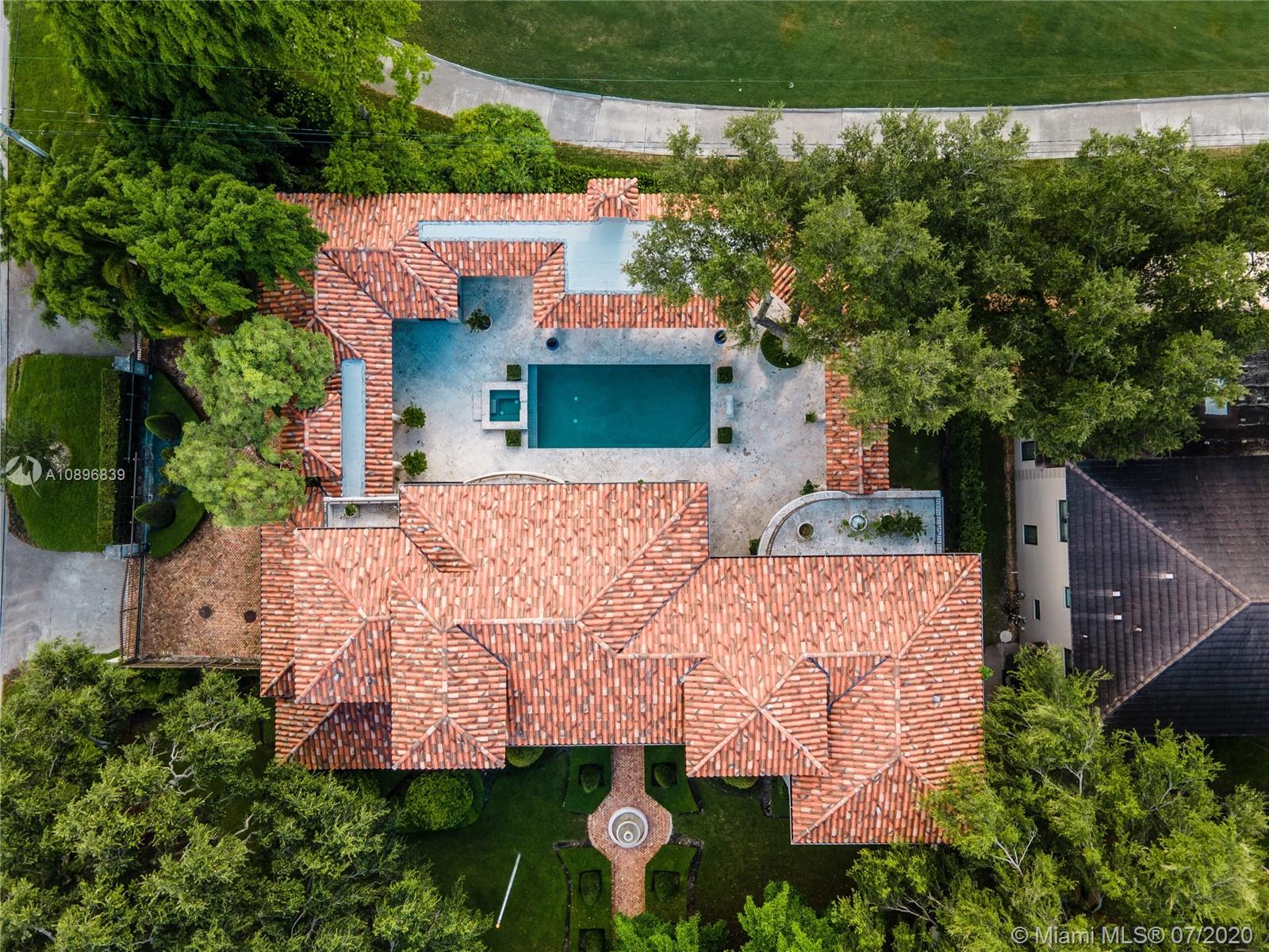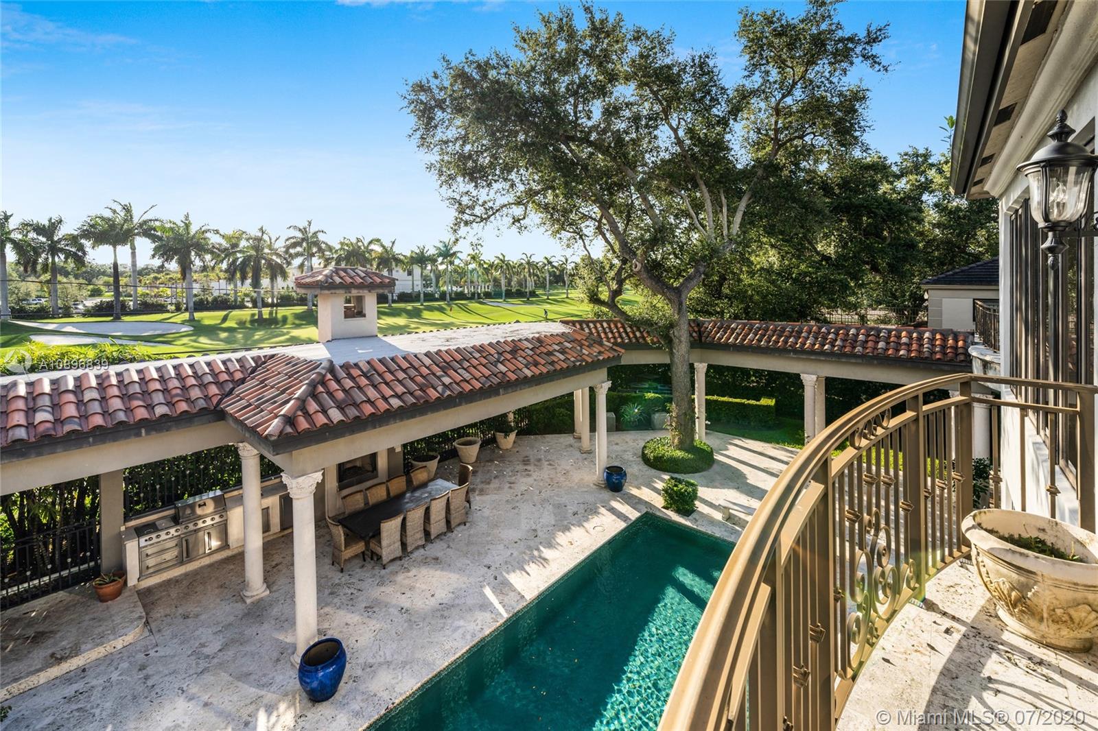 Built in 2008 and designed by Architect Thomas Benedict, this charming Estate Home is located in the heart of the Gables set directly in front of the 5th hole of the Riviera Golf Course. With more than 5,800SF of living space this home has 6 bedrooms, 6.5 bathrooms, formal dining with adjacent wine cellar, fireplace, elevator, eat-in gourmet kitchen with family room, high ceilings, upstairs sitting area, surround sound system and more. Enjoy a private outdoor oasis with a covered patio surrounding the heated pool and spa, Summer kitchen with outdoor fireplace and a separate 1 bedroom, 1 bathroom pool house all overlooking the Riviera Golf Course.