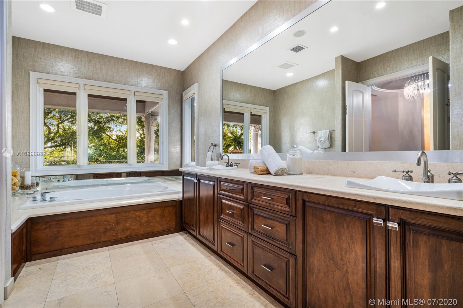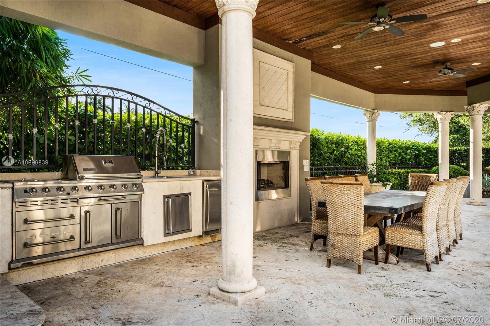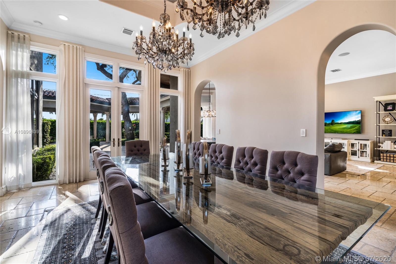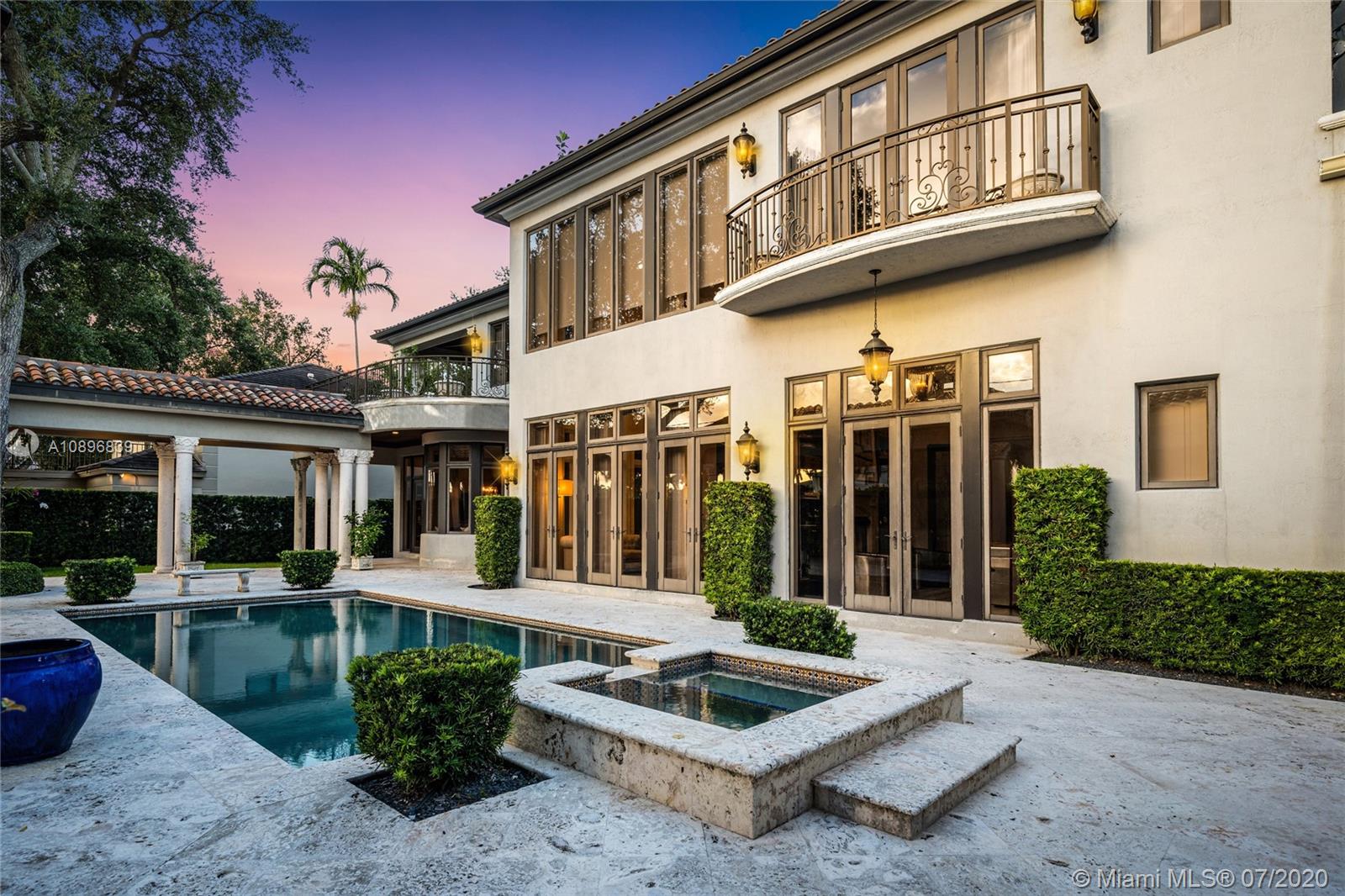Built in 2008 and designed by Architect Thomas Benedict, this charming Estate Home is located in the heart of the Gables set directly in front of the 5th hole of the Riviera Golf Course. With more than 5,800SF of living space this home has 6 bedrooms, 6.5 bathrooms, formal dining with adjacent wine cellar, fireplace, elevator, eat-in gourmet kitchen with family room, high ceilings, upstairs sitting area, surround sound system and more. Enjoy a private outdoor oasis with a covered patio surrounding the heated pool and spa, Summer kitchen with outdoor fireplace and a separate 1 bedroom, 1 bathroom pool house all overlooking the Riviera Golf Course.