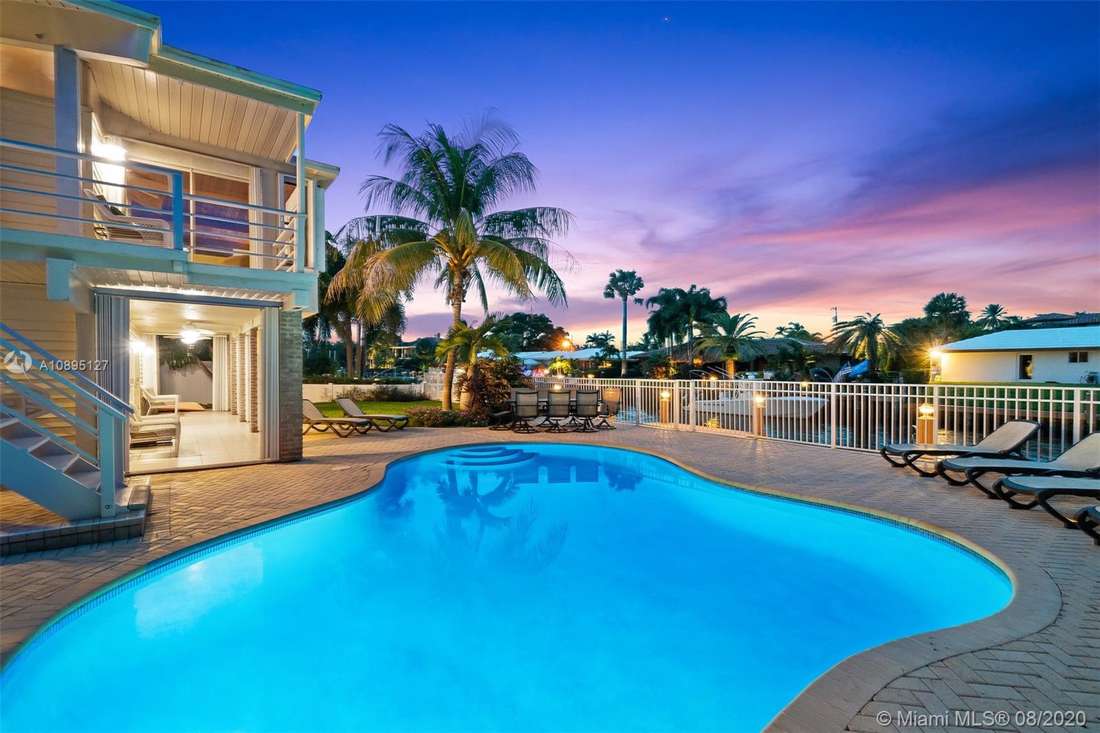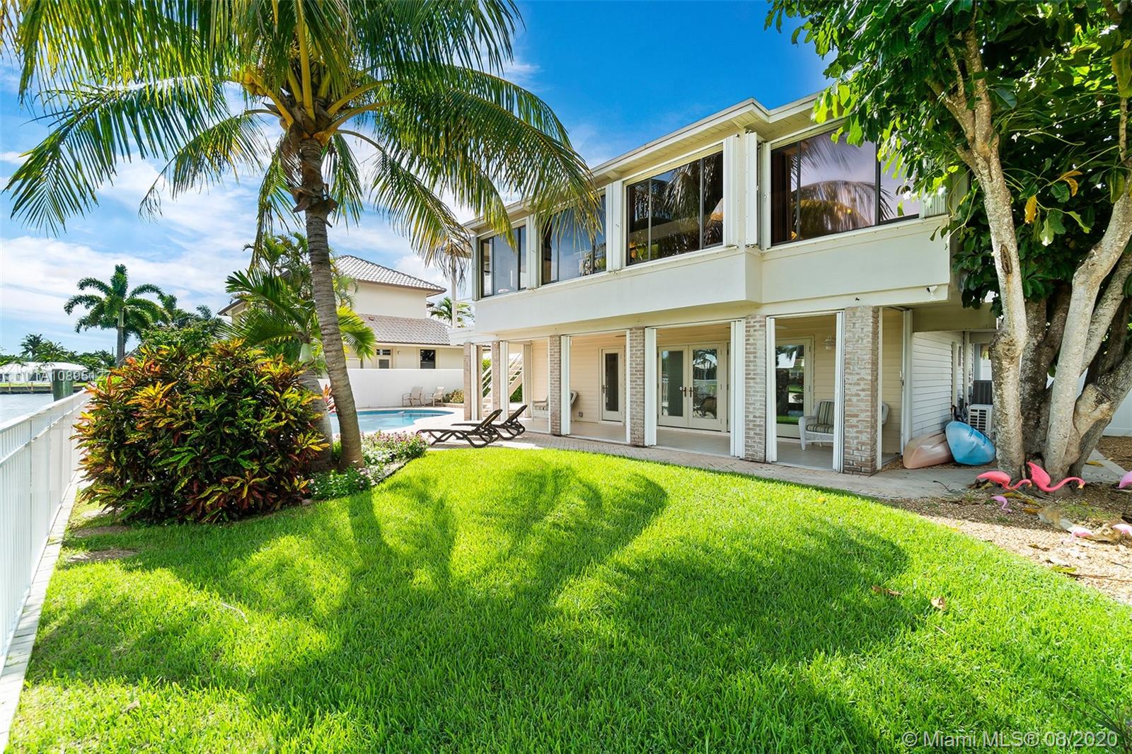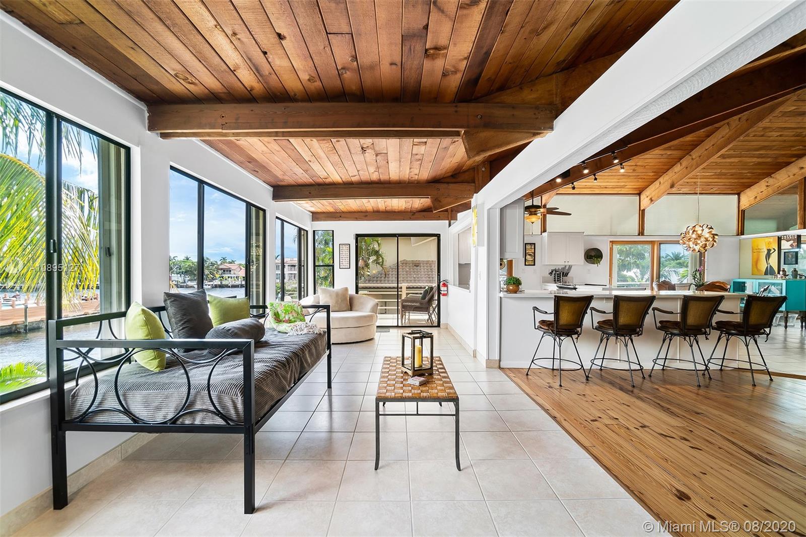 Crowned ‘Casa Seabatical’ and boasting 80 ft of prized water frontage with ocean access, this exquisite oasis delivers an exceptional South Florida lifestyle. Spanning two gracious levels with a versatile 4BD/3BTH layout, the Key West style home is idyllically situated on a quiet cul-de-sac 90 ft from the tranquil Intracoastal and minutes from Hillsboro Inlet with no fixed bridges. The perfect vacation home, primary residence, or income property, this supremely serene refuge spares no details and showcases dramatic 15 ft. open beam ceilings, sumptuous hardwood floors, a saltwater pool, manicured gardens, tasteful finishes/furnishings, a bonus room, and countless upgrades including a newly renovated kitchen and reimagined baths, NEW roof scheduled for September and more.