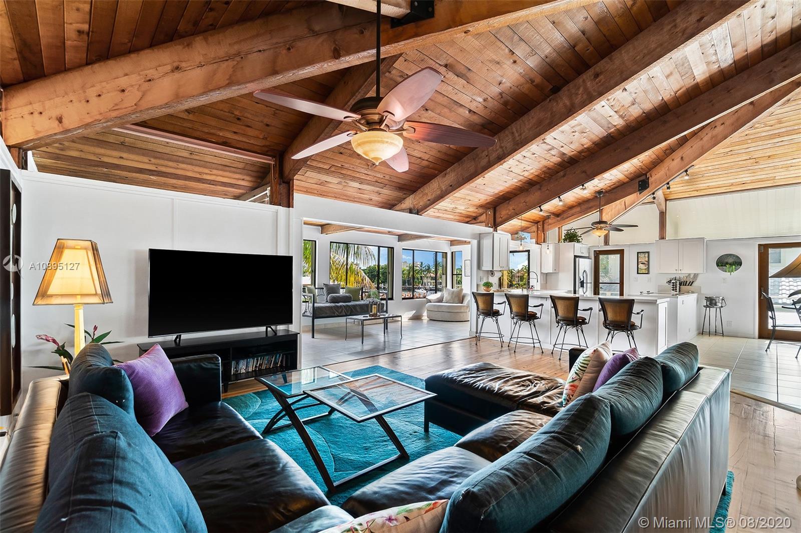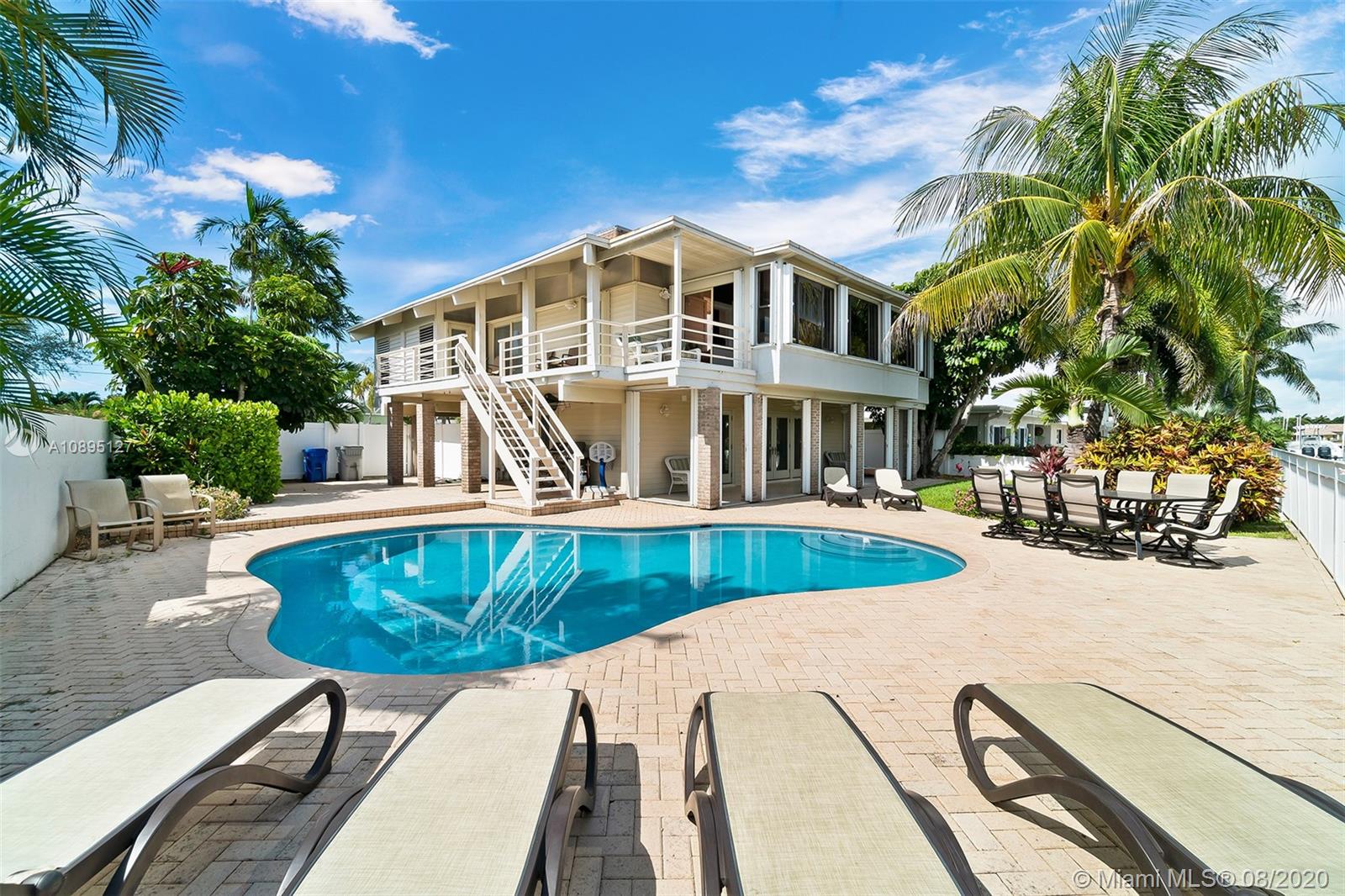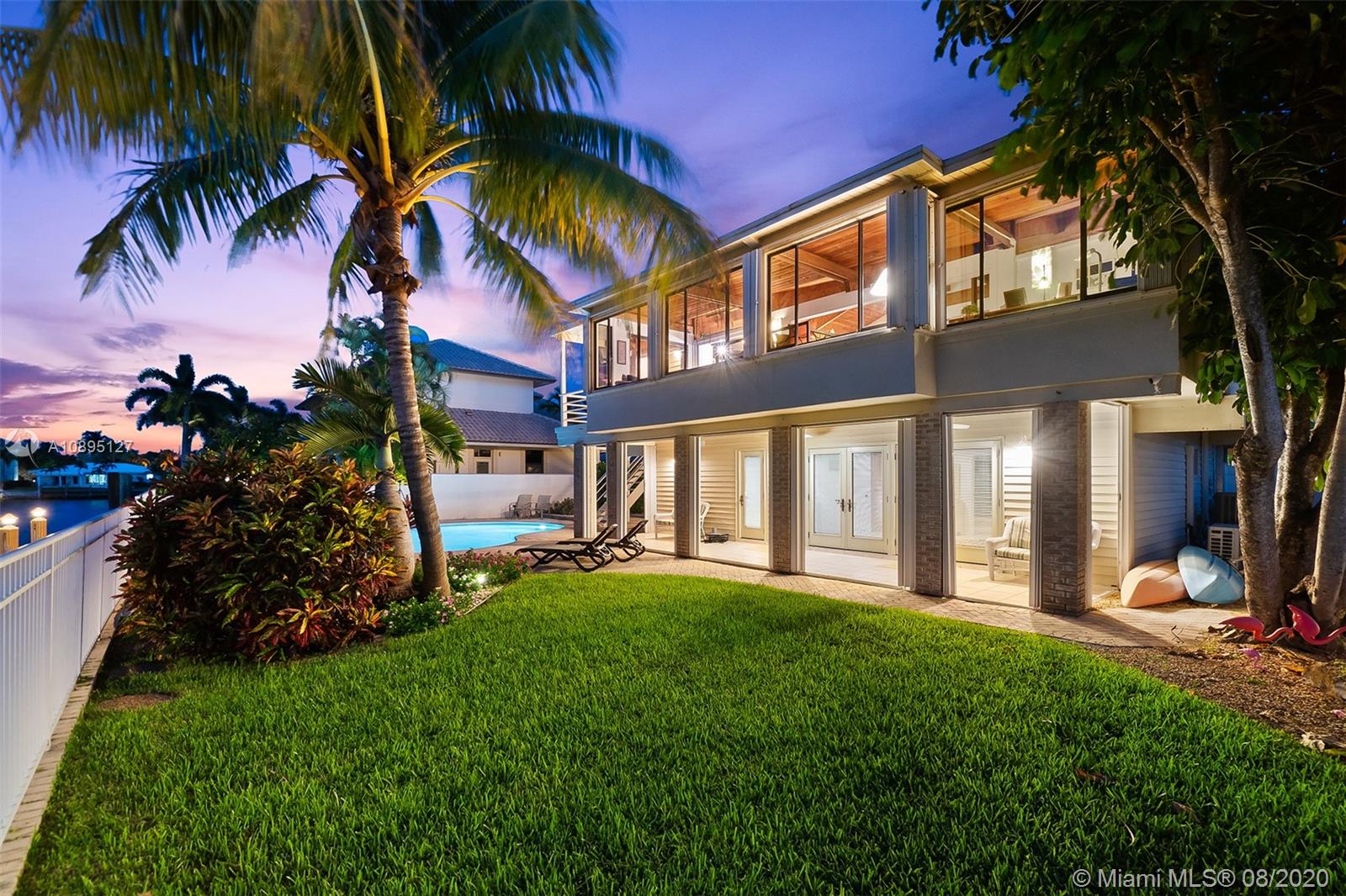 Crowned ‘Casa Seabatical’ and boasting 80 ft of prized water frontage with ocean access, this exquisite oasis delivers an exceptional South Florida lifestyle. Spanning two gracious levels with a versatile 4BD/3BTH layout, the Key West style home is idyllically situated on a quiet cul-de-sac 90 ft from the tranquil Intracoastal and minutes from Hillsboro Inlet with no fixed bridges. The perfect vacation home, primary residence, or income property, this supremely serene refuge spares no details and showcases dramatic 15 ft. open beam ceilings, sumptuous hardwood floors, a saltwater pool, manicured gardens, tasteful finishes/furnishings, a bonus room, and countless upgrades including a newly renovated kitchen and reimagined baths, NEW roof scheduled for September and more.