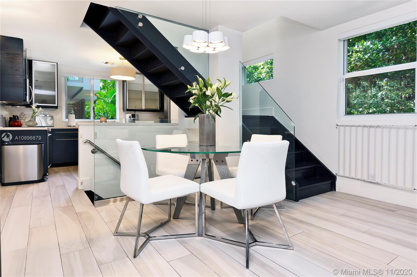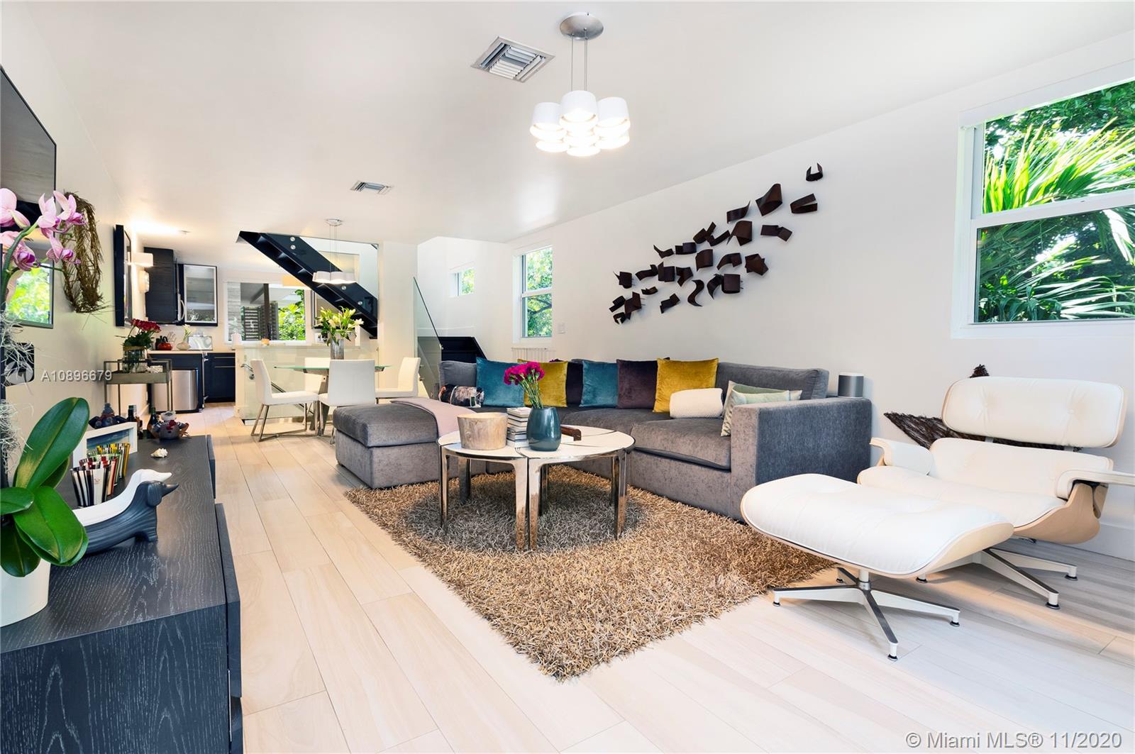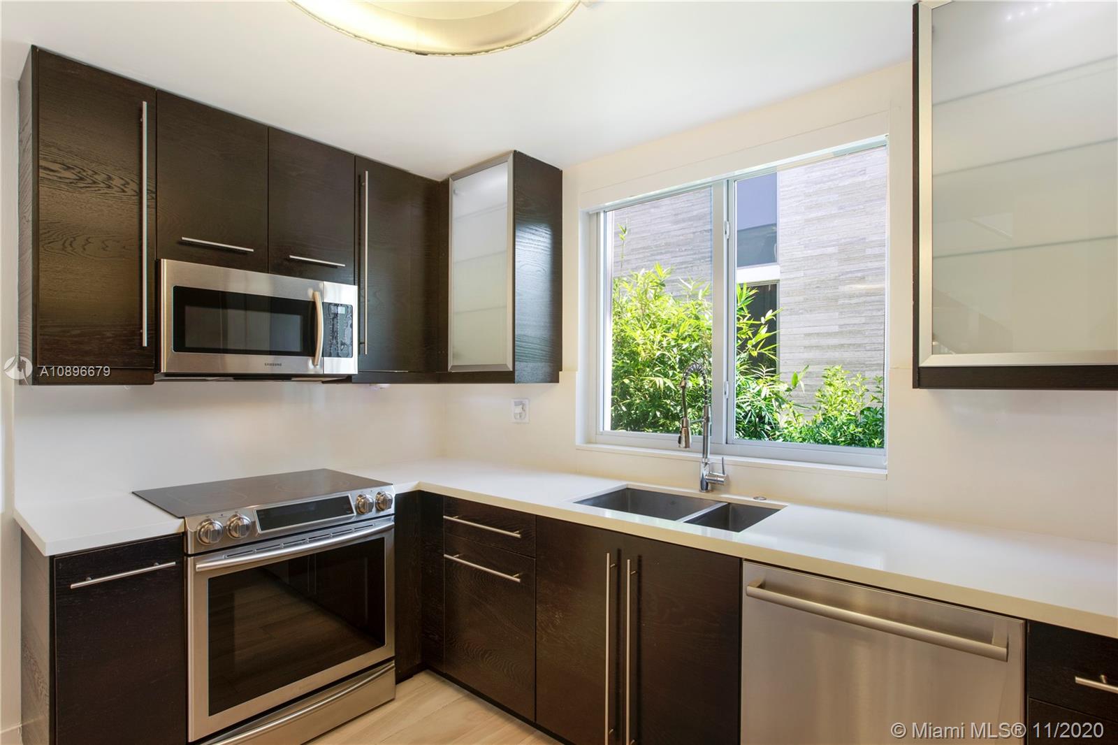 The perfect balance of a private home with ease of condo living! Welcome home to a private 3-story ultra-modern corner townhouse in the heart of South of Fifth. Highly desirable & rare end-unit in gated boutique community on tree-lined Meridian Ave. Fully renovated with taste, this 3 bed, 3 full bath is well laid out & gleaming with natural light from windows on three sides & skylights above. Unit features impact windows, updated Kitchen, baths (with an impressive master bath), custom closets, dual window treatments, smart thermostat + More. Charming rear patio with large side garden unique to this unit. Private ground level garage with extra storage loft + 2nd parking space in front. Great association with low fees, new roof + paid assessments. Steps from the beach & world-class dining.