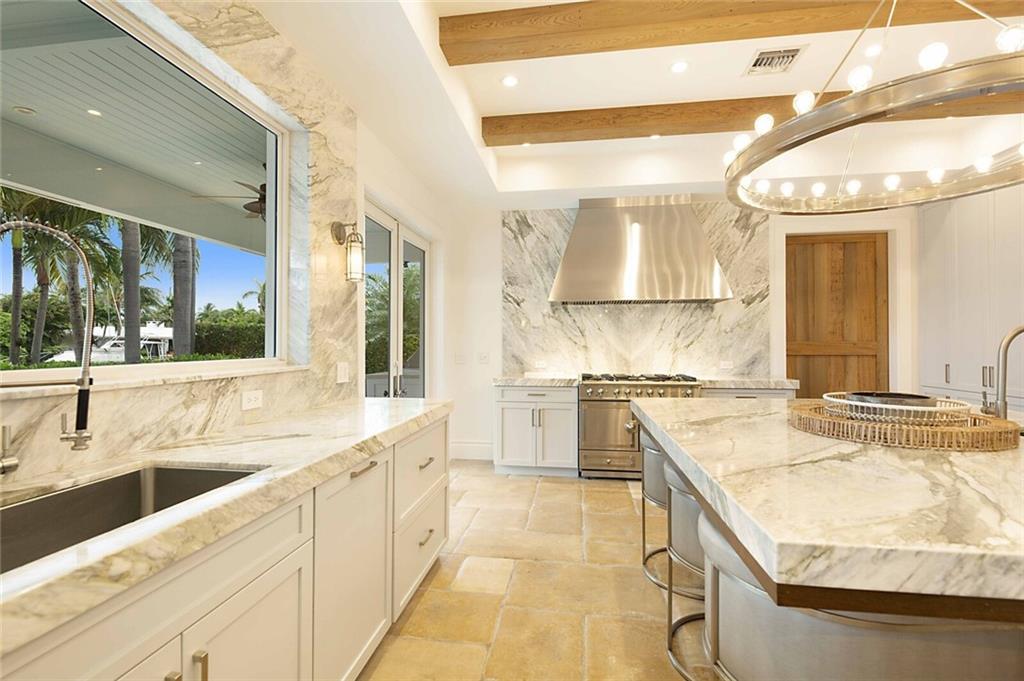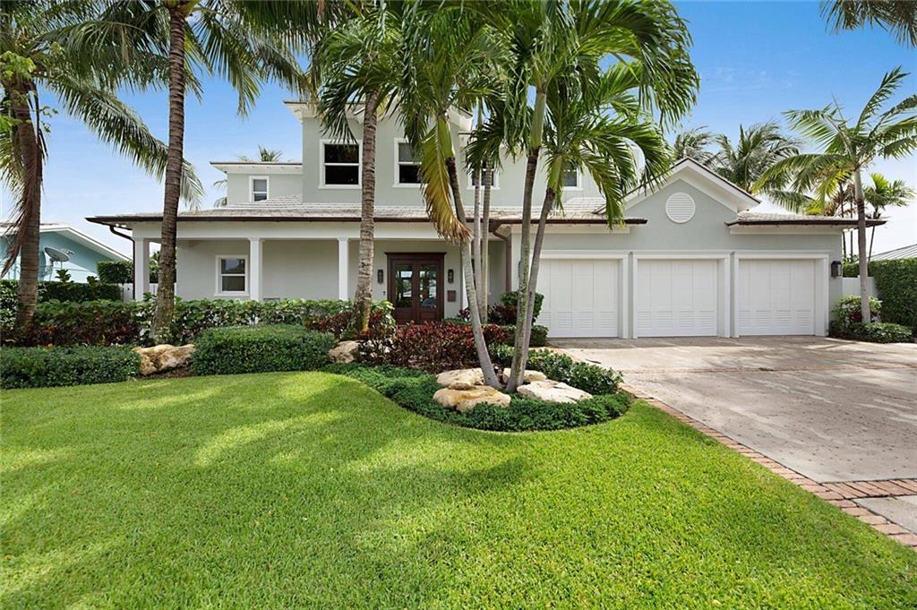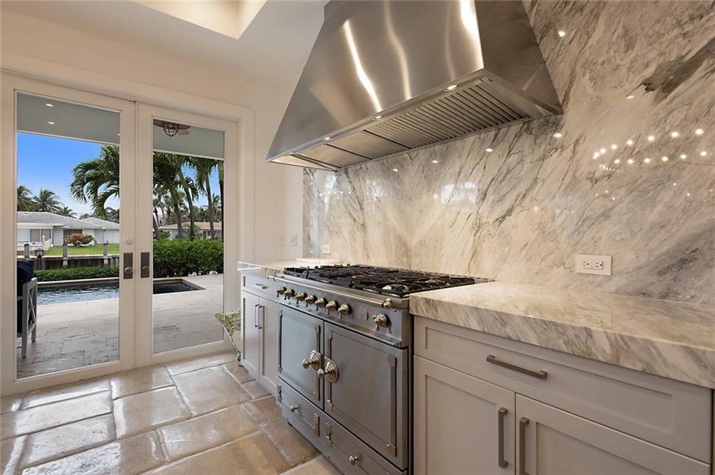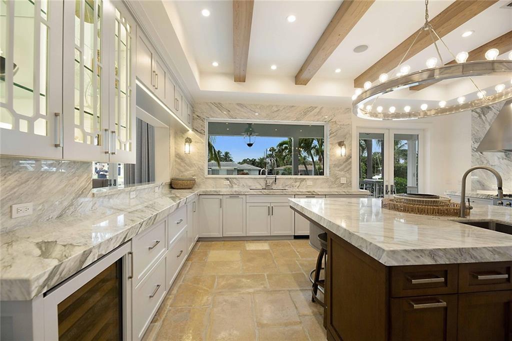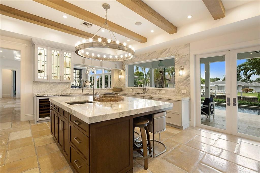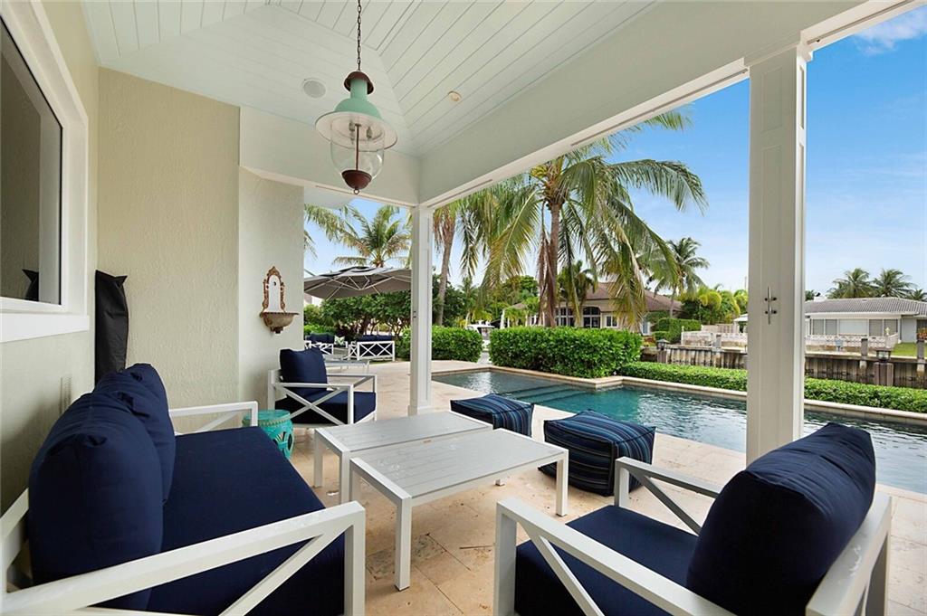 This home is the perfect meld of tasteful contemporary and rustic charm,her dream home ! Everything from the copper gutters and the la Cornue oven to the steam shower and Lutron system is top of the line and fits seamlessly into this impeccably designed home. Nothing was overlooked from a design standpoint; incredible finishes. The great room has a built-in entertainment center, tongue and groove cypress ceilings and a wall of French doors overlooking the outdoor entertaining space. Out back you will find a covered Lania, outdoor kitchen, sitting area w/ gas fire pit, and expansive pool w/ raised shelf for relaxing. The seawall cap is raised, dock and seawall redone, situated on 100' of deep water w/ no fixed bridges, only 5 mins to the Hillsboro Inlet; his dream home too!