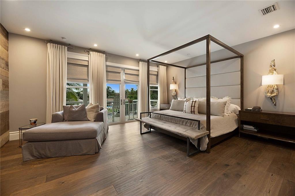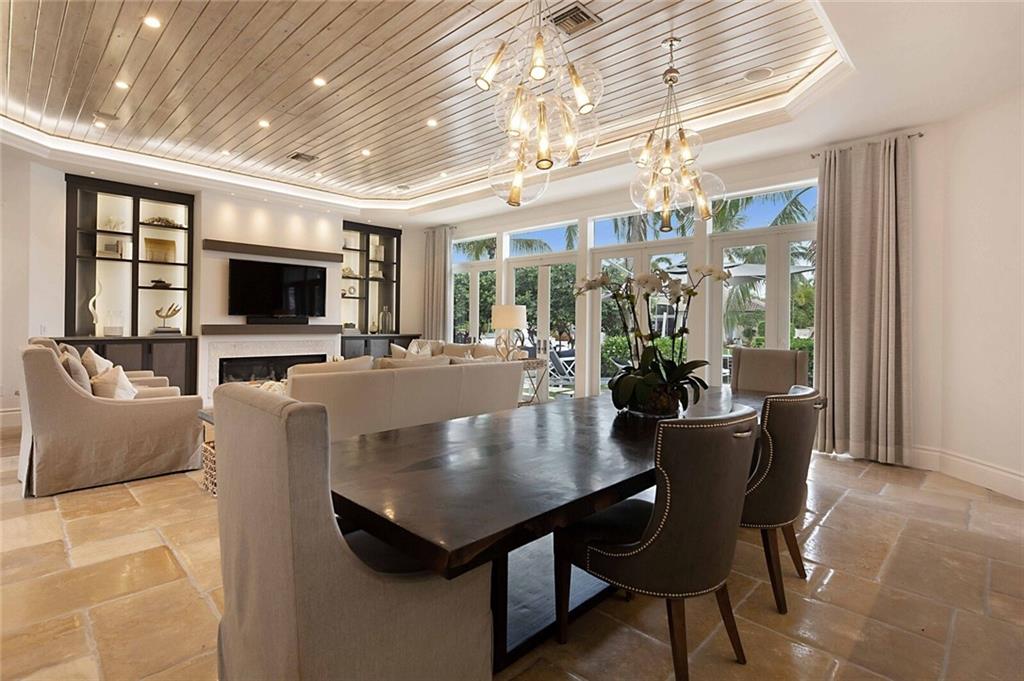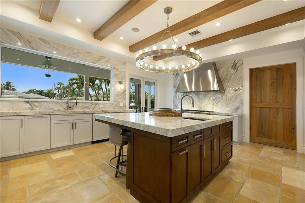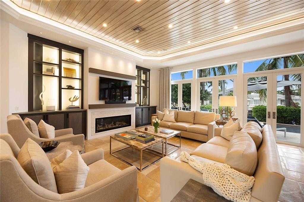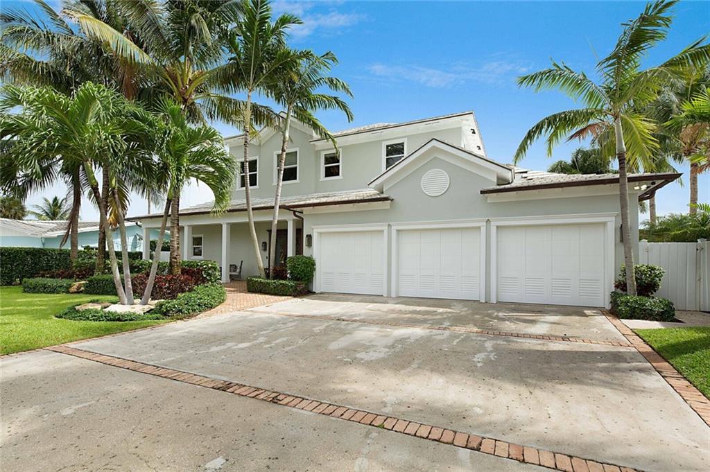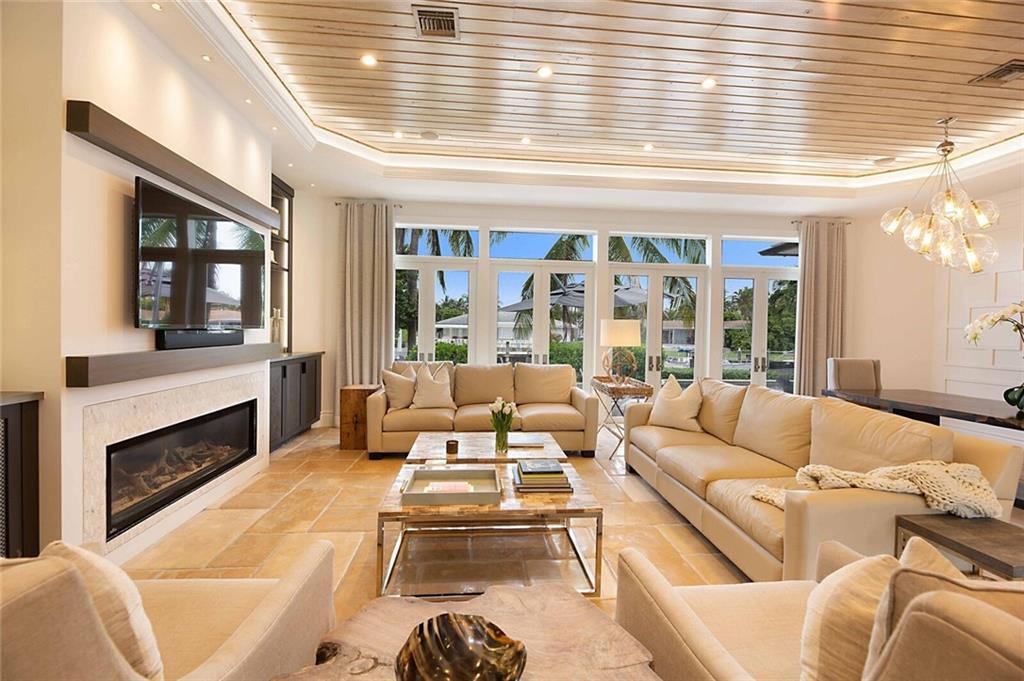 This home is the perfect meld of tasteful contemporary and rustic charm,her dream home ! Everything from the copper gutters and the la Cornue oven to the steam shower and Lutron system is top of the line and fits seamlessly into this impeccably designed home. Nothing was overlooked from a design standpoint; incredible finishes. The great room has a built-in entertainment center, tongue and groove cypress ceilings and a wall of French doors overlooking the outdoor entertaining space. Out back you will find a covered Lania, outdoor kitchen, sitting area w/ gas fire pit, and expansive pool w/ raised shelf for relaxing. The seawall cap is raised, dock and seawall redone, situated on 100' of deep water w/ no fixed bridges, only 5 mins to the Hillsboro Inlet; his dream home too!