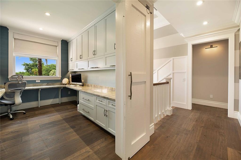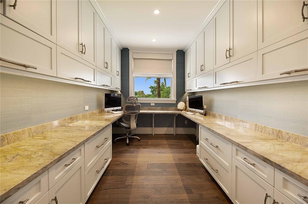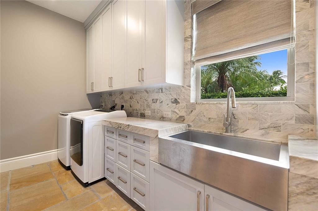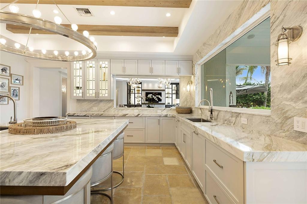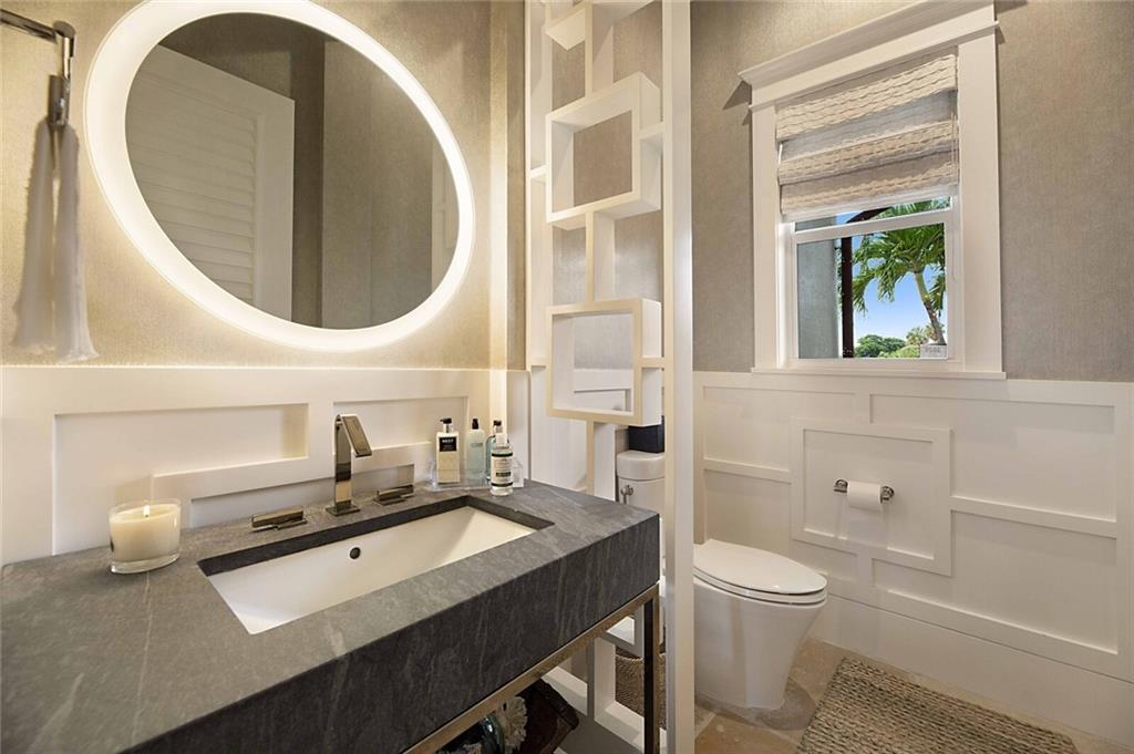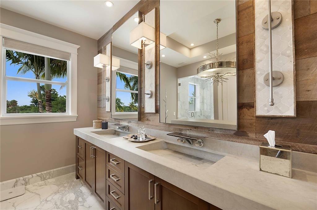 This home is the perfect meld of tasteful contemporary and rustic charm,her dream home ! Everything from the copper gutters and the la Cornue oven to the steam shower and Lutron system is top of the line and fits seamlessly into this impeccably designed home. Nothing was overlooked from a design standpoint; incredible finishes. The great room has a built-in entertainment center, tongue and groove cypress ceilings and a wall of French doors overlooking the outdoor entertaining space. Out back you will find a covered Lania, outdoor kitchen, sitting area w/ gas fire pit, and expansive pool w/ raised shelf for relaxing. The seawall cap is raised, dock and seawall redone, situated on 100' of deep water w/ no fixed bridges, only 5 mins to the Hillsboro Inlet; his dream home too!